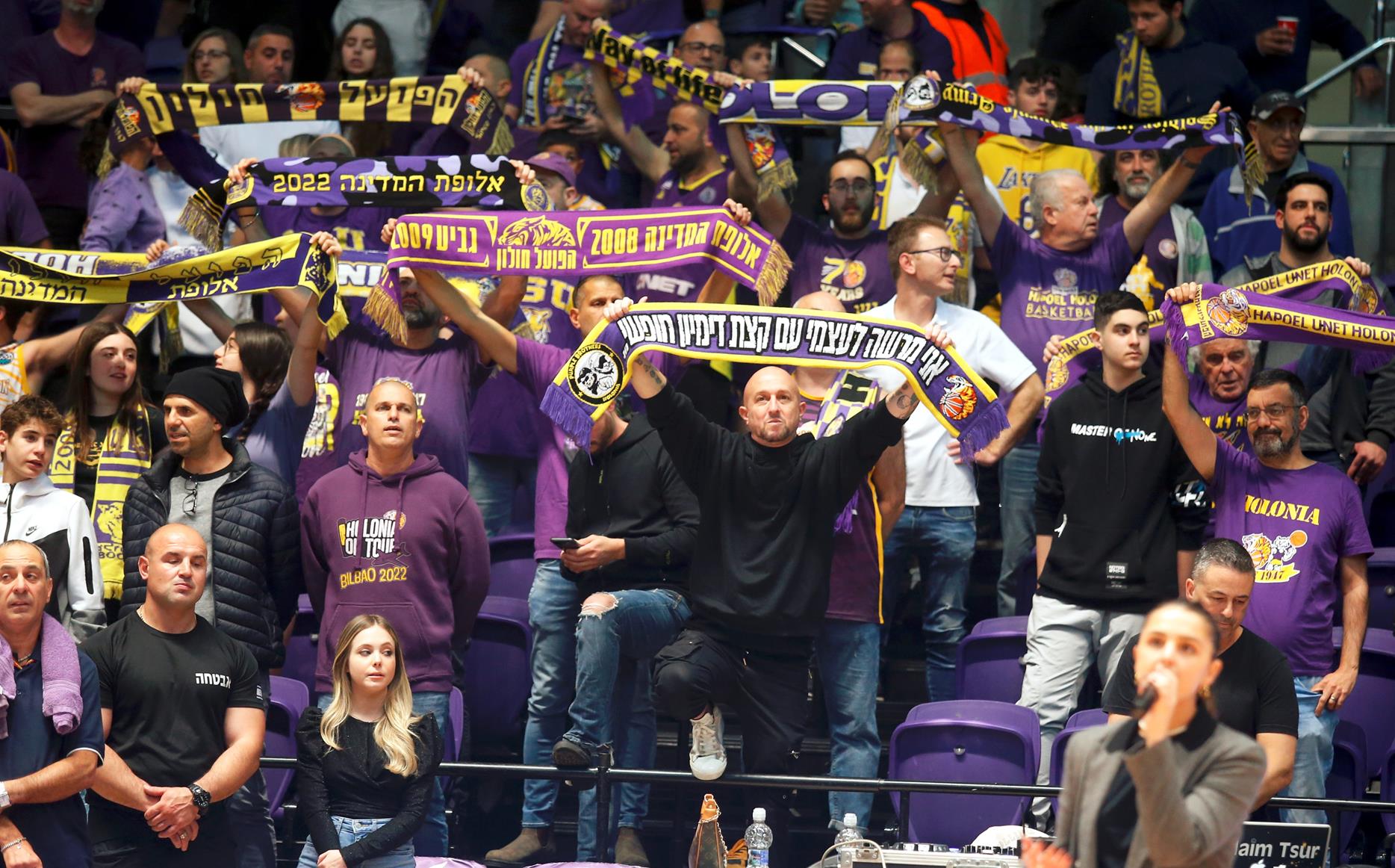סגול-צהוב נגד צהוב-כחול ביציעים (צילומים: אלן שיבר)