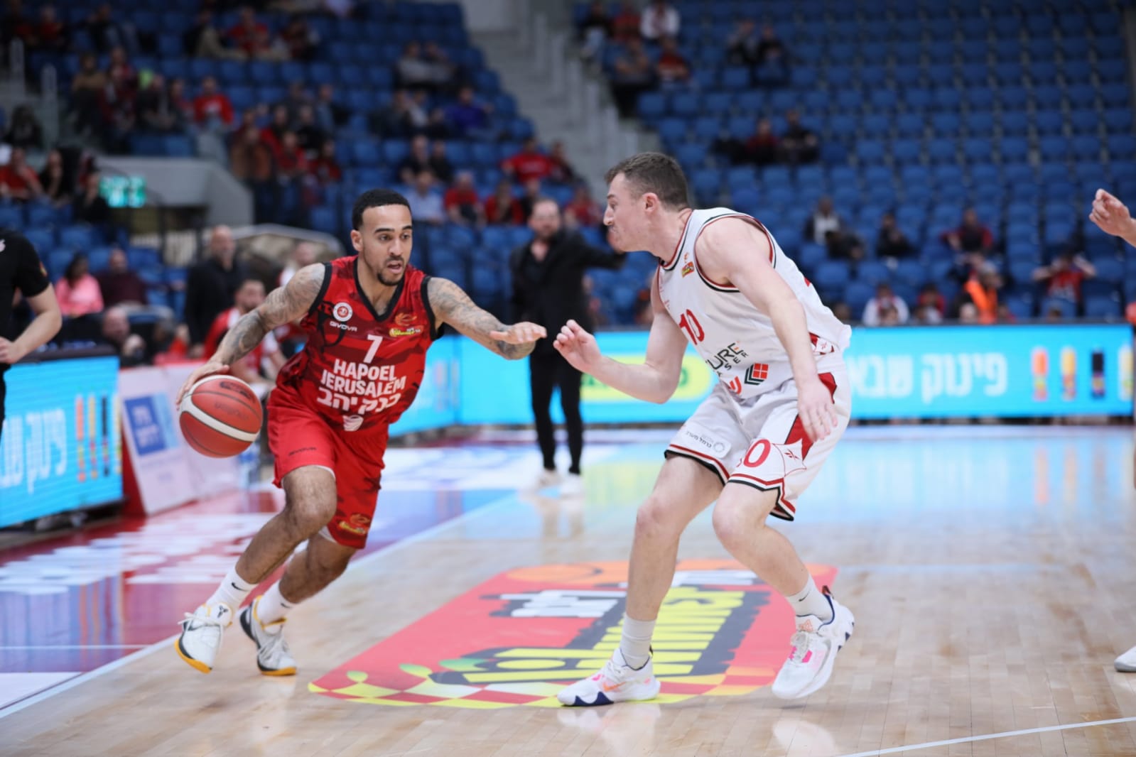 טילמן מול הנקינס, המאצ' אפ המרכזי של המחצית הראשונה (צילום: דוד מיכאלי, הפועל ירושלים)