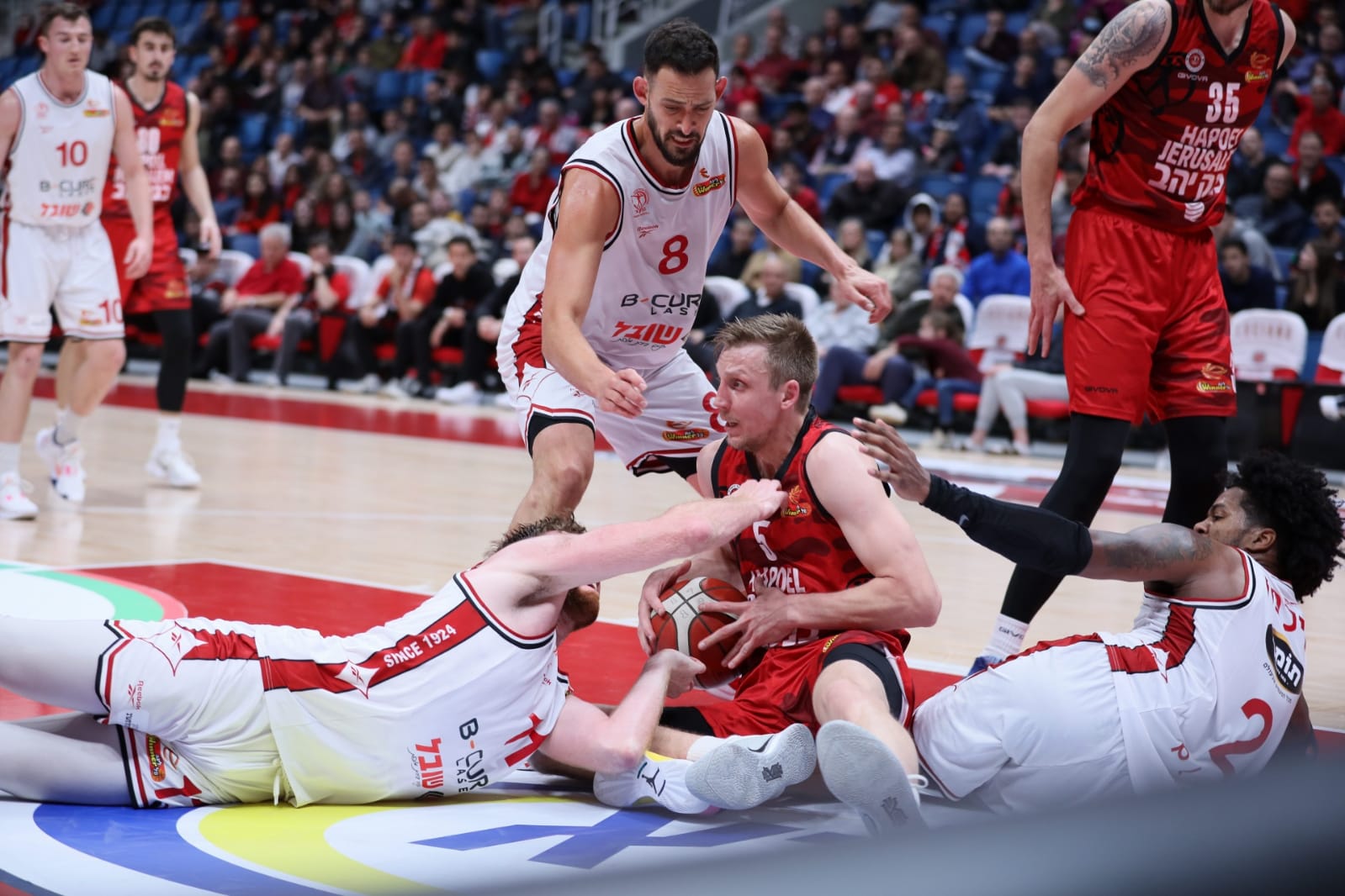 הנקינס מעל טילמן, החבורה מהבירה ביצעה קאמבק ברבע האחרון (צילום: דוד מיכאלי, הפועל ירושלים)