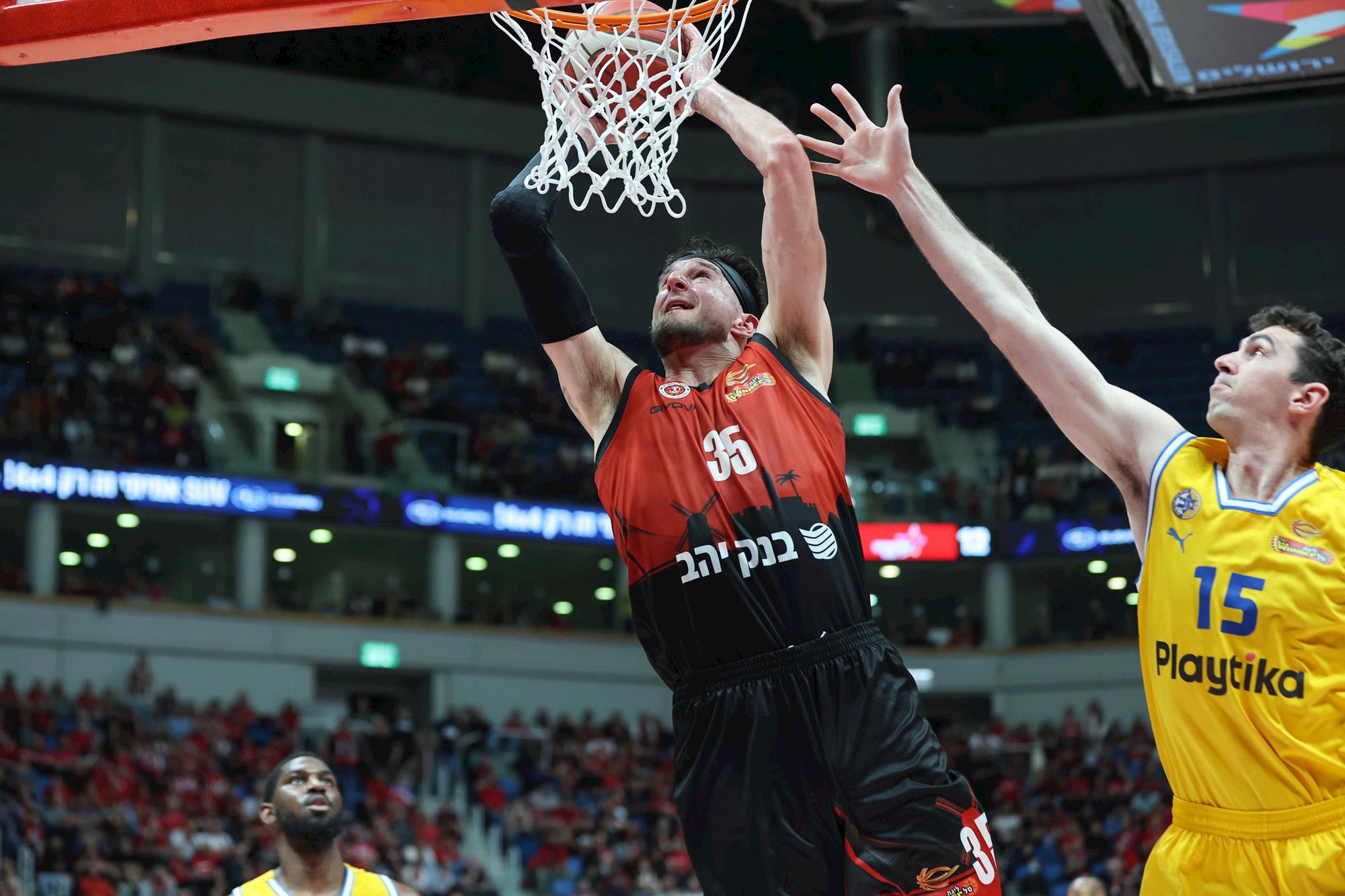 הפועל "בנק יהב" ירושלים סיימה את העונה הרגילה עם 76:83 ביתי חשוב על מכבי "Playtika" ת"א, רגע לפני היציאה לפיינל פור ליגת האלופות (צילום: לירון מולדובן)