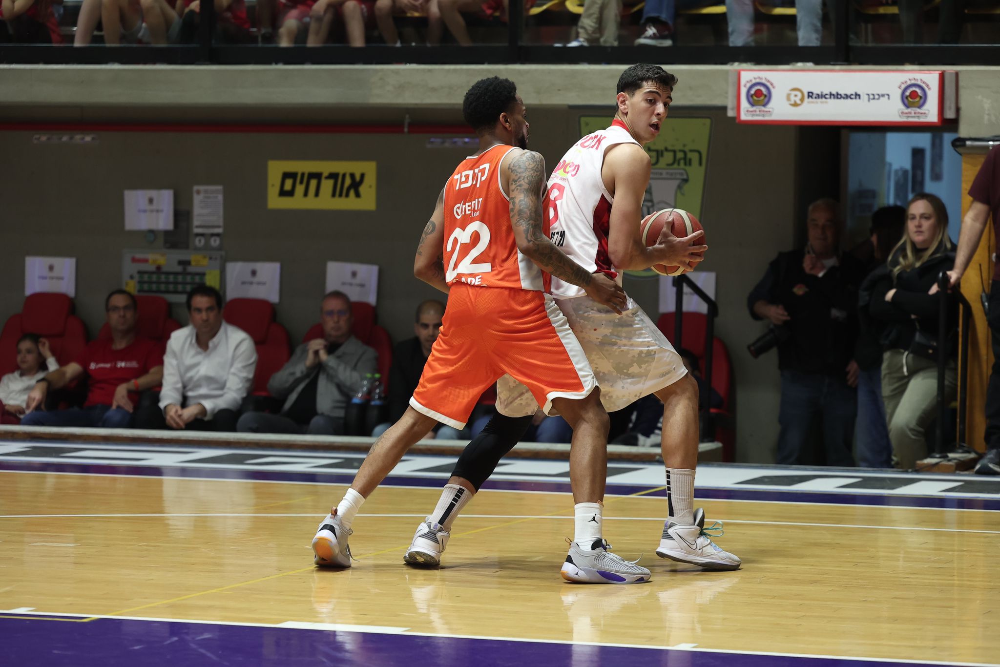 אמסלם עובד באותיות מול קופר (צילום: גיל נוימן, הפועל גליל עליון)