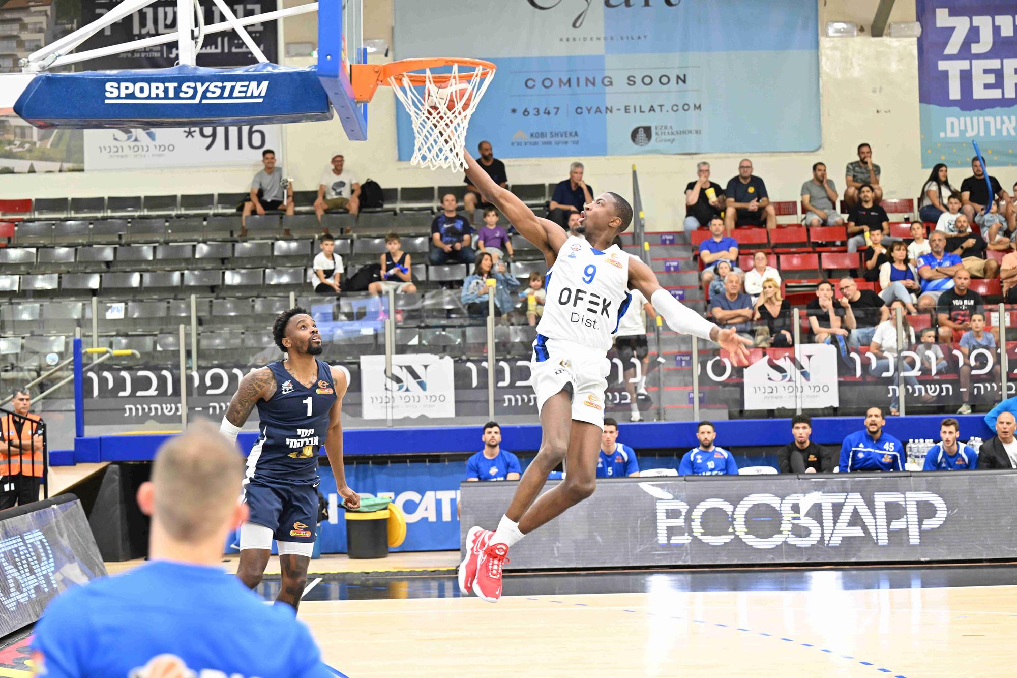 הפועל "יוסי אברהמי" אילת עצרה את הרצף של בני "Ofek Dist" הרצליה עם 86:99 במשחקה האחרון העונה בבגין. קליבלנד, גרשון ומתיאנג הצטיינו (צילום: יוד צילומים)