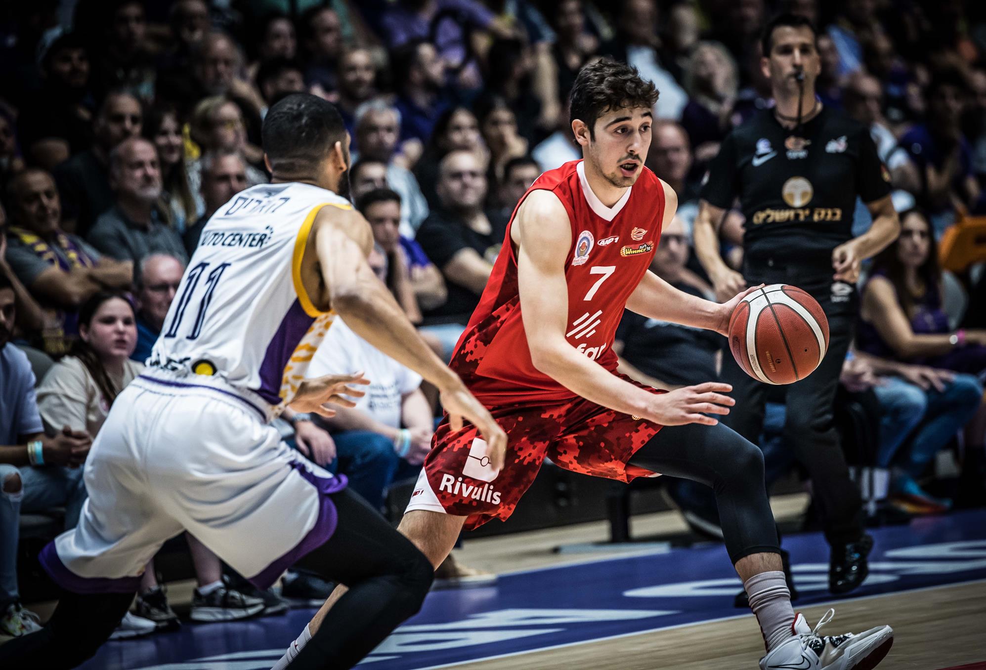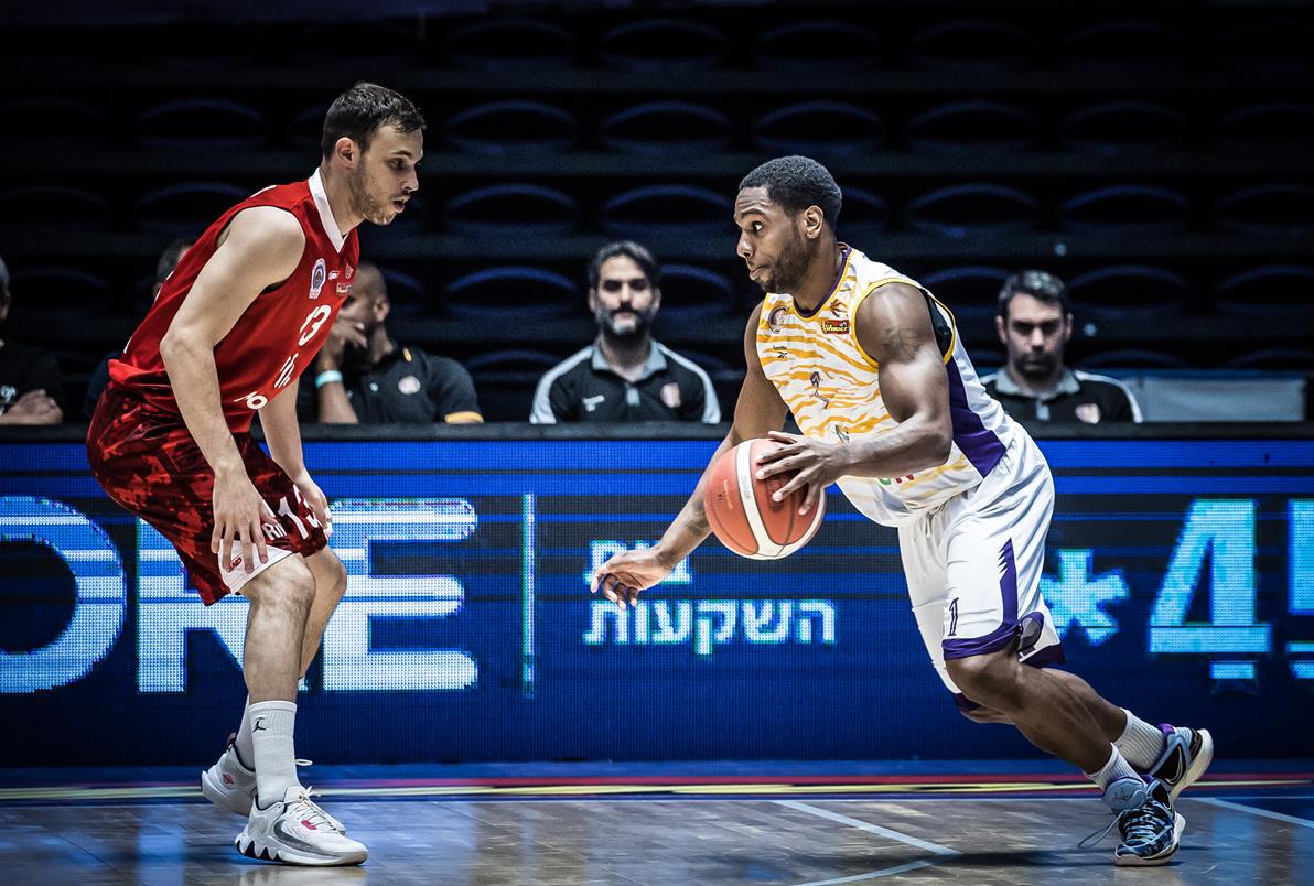 לוי קולע ביד אחת מעל ג'ונס (צילום: עודד קרני)