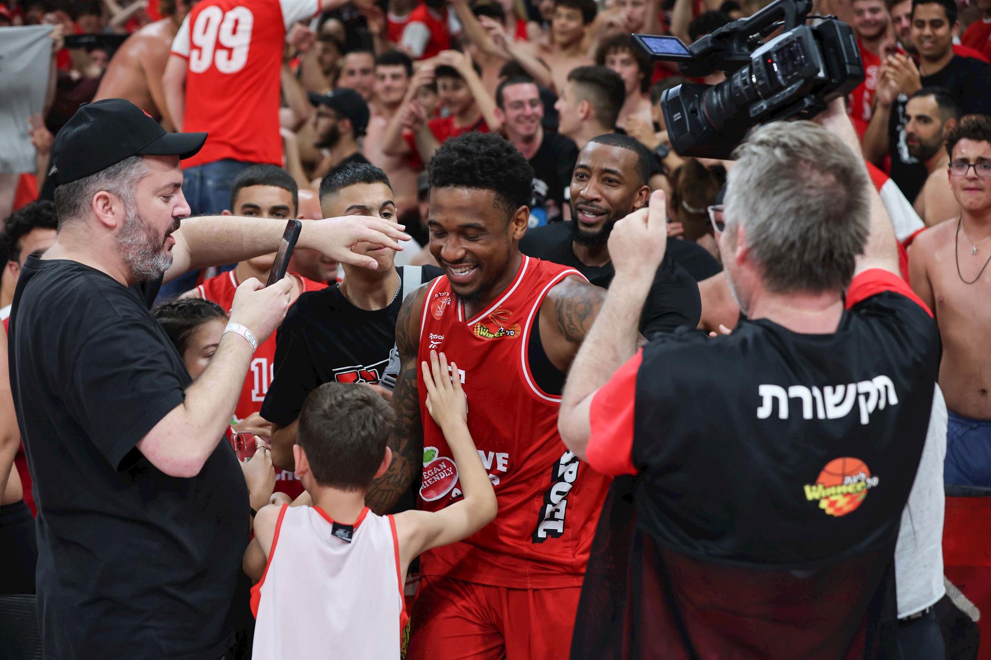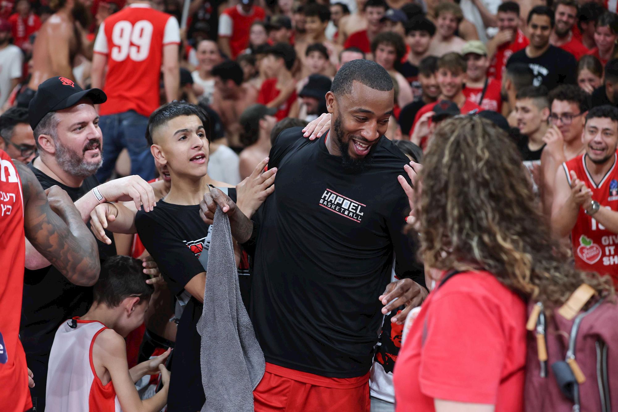מקריי ומנפורד חוגגים עם האוהדים (צילום: לירון מולדובן)