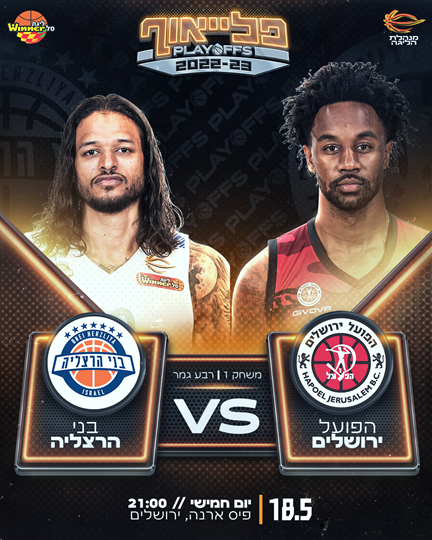 סדרת רבע הגמר האחרונה של פלייאוף 2023 תצא הערב (חמישי) לדרך בפיס ארנה, כאשר הפועל "בנק יהב" ירושלים, ארבעה ימים אחרי ההפסד הכואב בגמר ליגת האלופות לטלקום בון, תארח את בני "Ofek Dist" הרצליה, שחולמת על ריצה נוספת כמו בפלייאוף אשתקד (21:00, שידור ישיר בערוץ SPORT5, שופטים: ספי שמש, ניר מאירסון, הראל קדרון, לחצו כאן להגעה בתחבורה ציבורית). אצל המארחת לא נרשמו ברנדון בראון וסים-סנדר ונה, אצל האורחת סי.ג'יי אלבי ואנדי ואן וליט. בנוסף, היא תחסר את סנדי כהן, שעבר ניתוח בחזה ולא ישוב לשחק העונה.