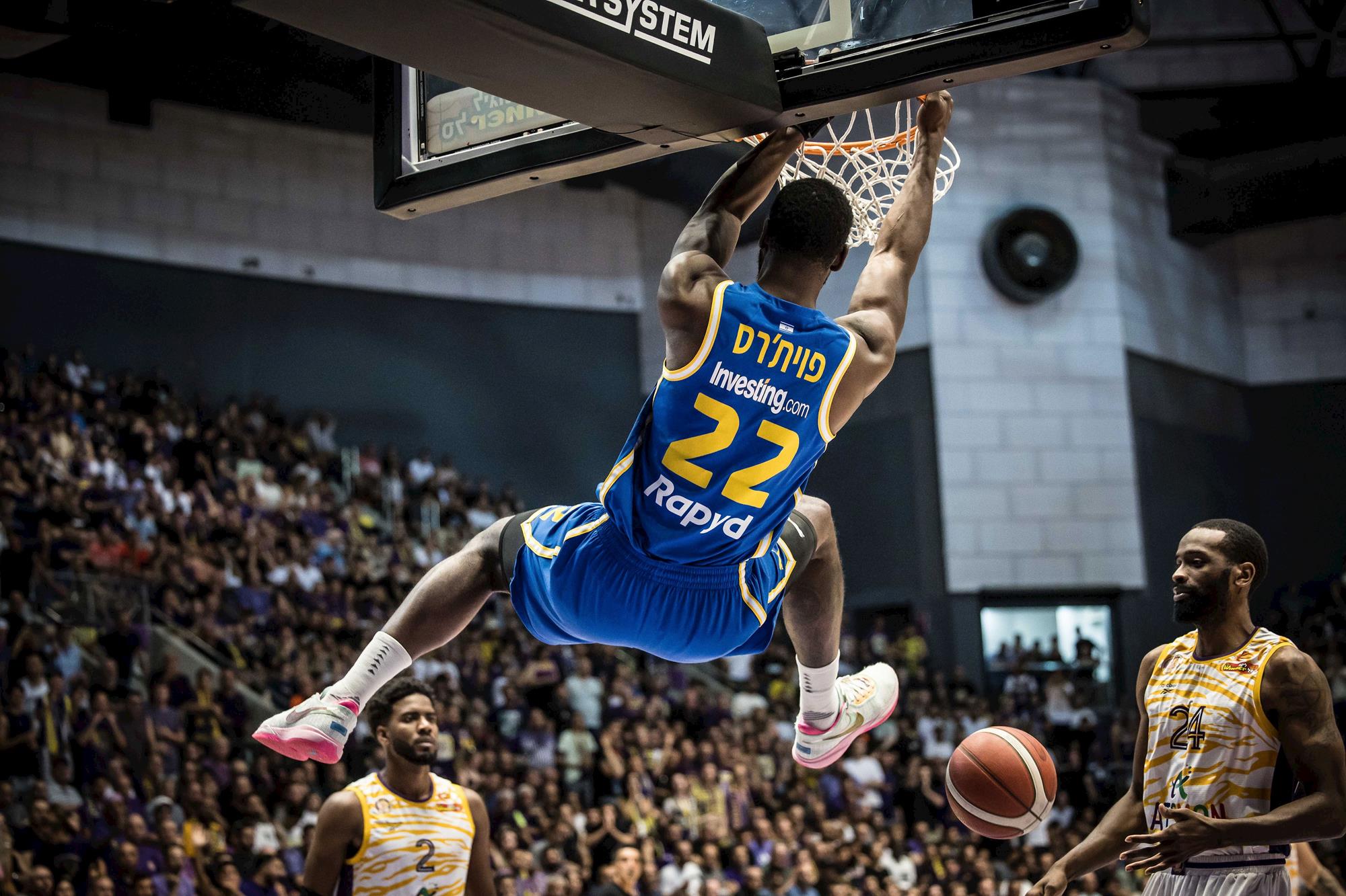 פוית'רס מטביע במהלך הראשון של המשחק (צילום: עודד קרני)