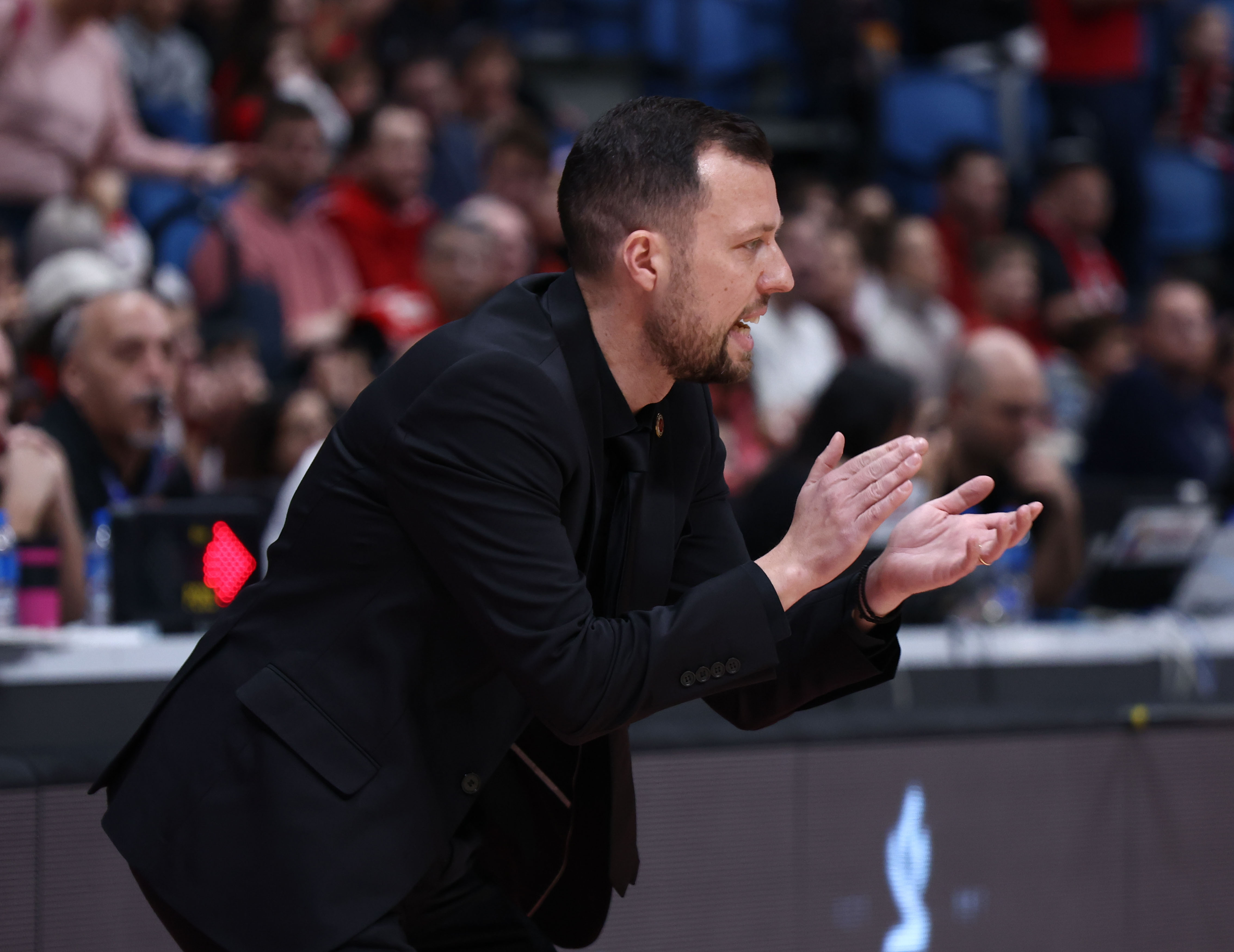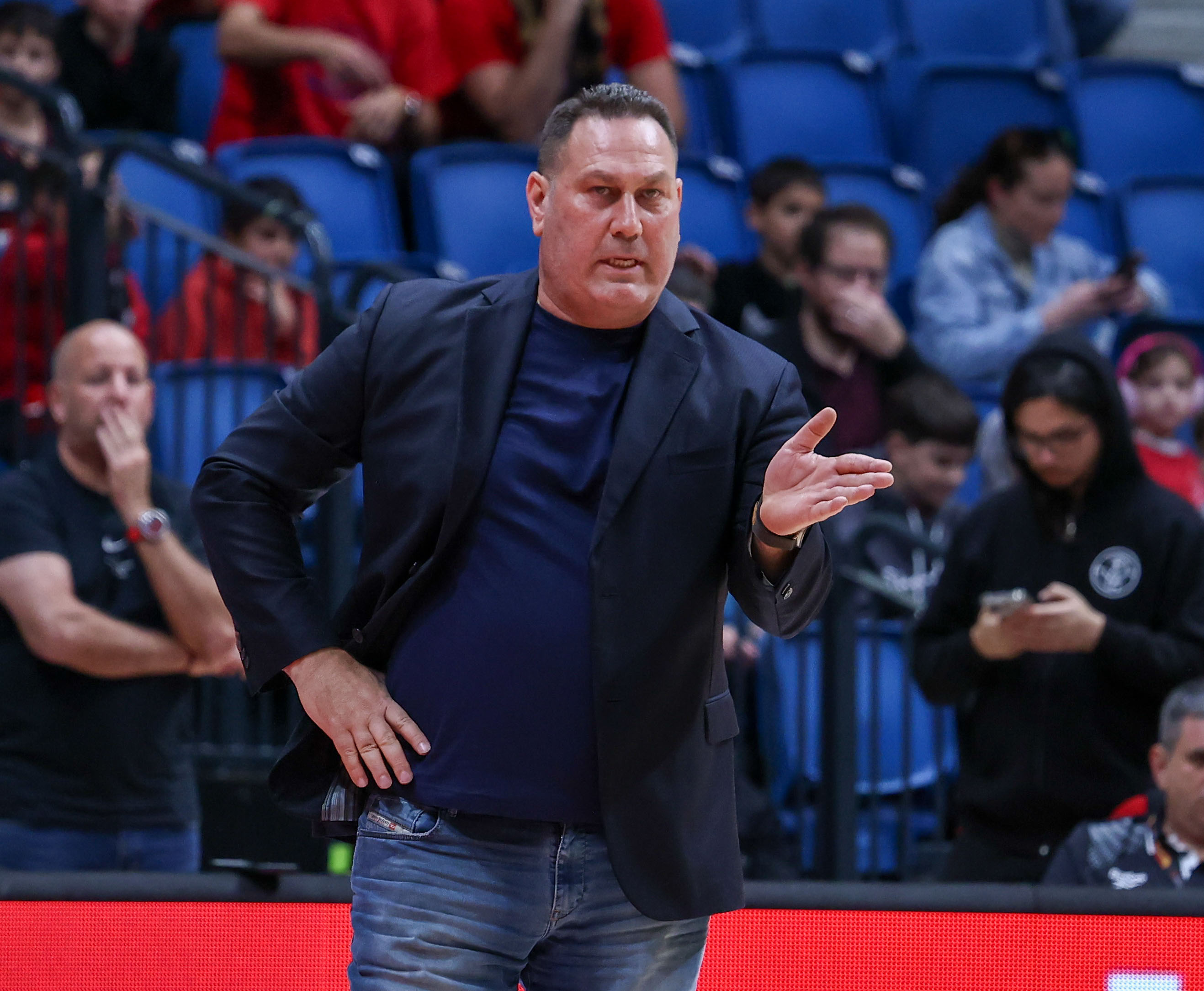 אולארצ'יק מעודד את חניכיו מהקווים (צילום: דני מרון)