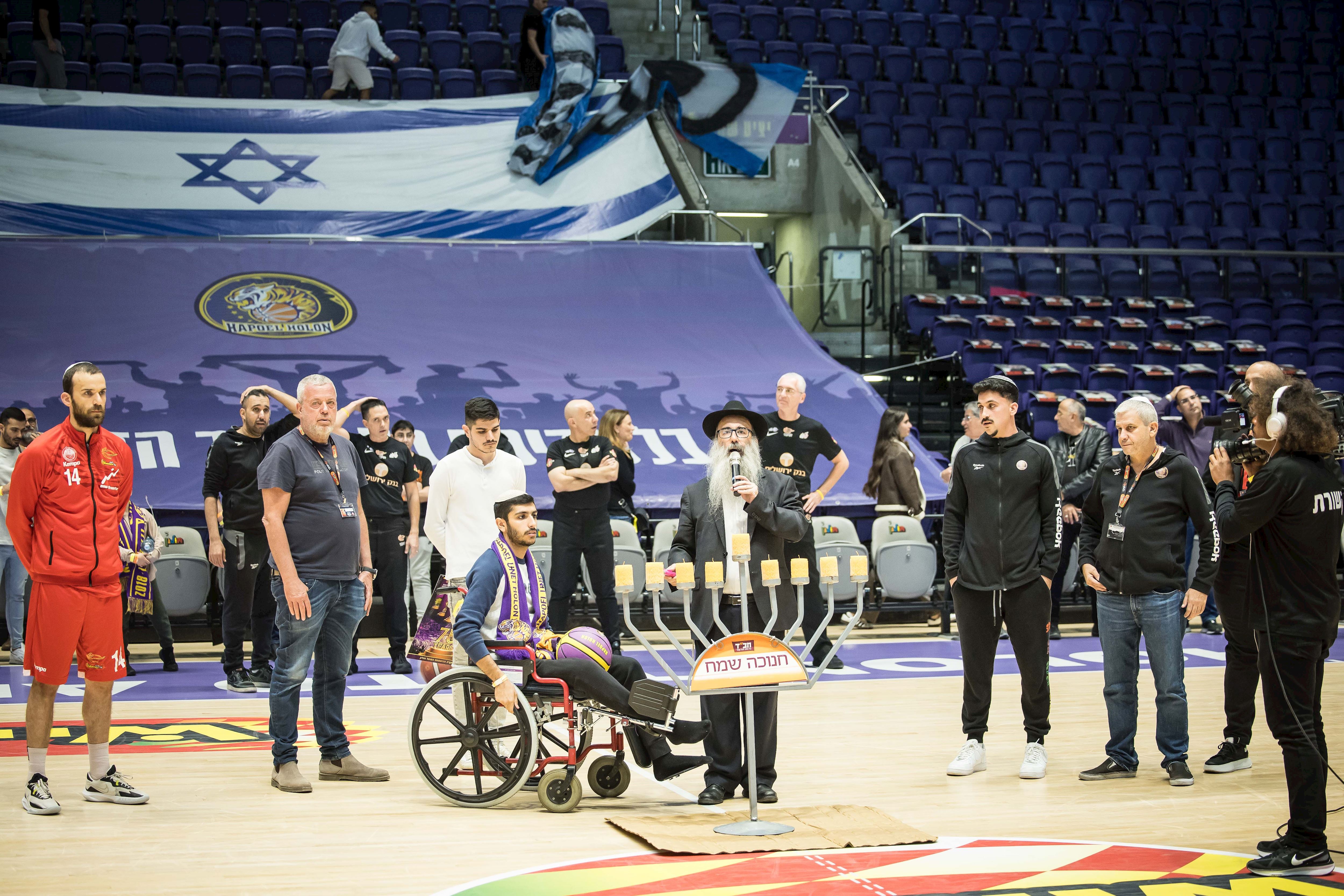 אלון שאולי ריגש את היכל טוטו בטקס לפני המשחק (צילומים: עודד קרני)