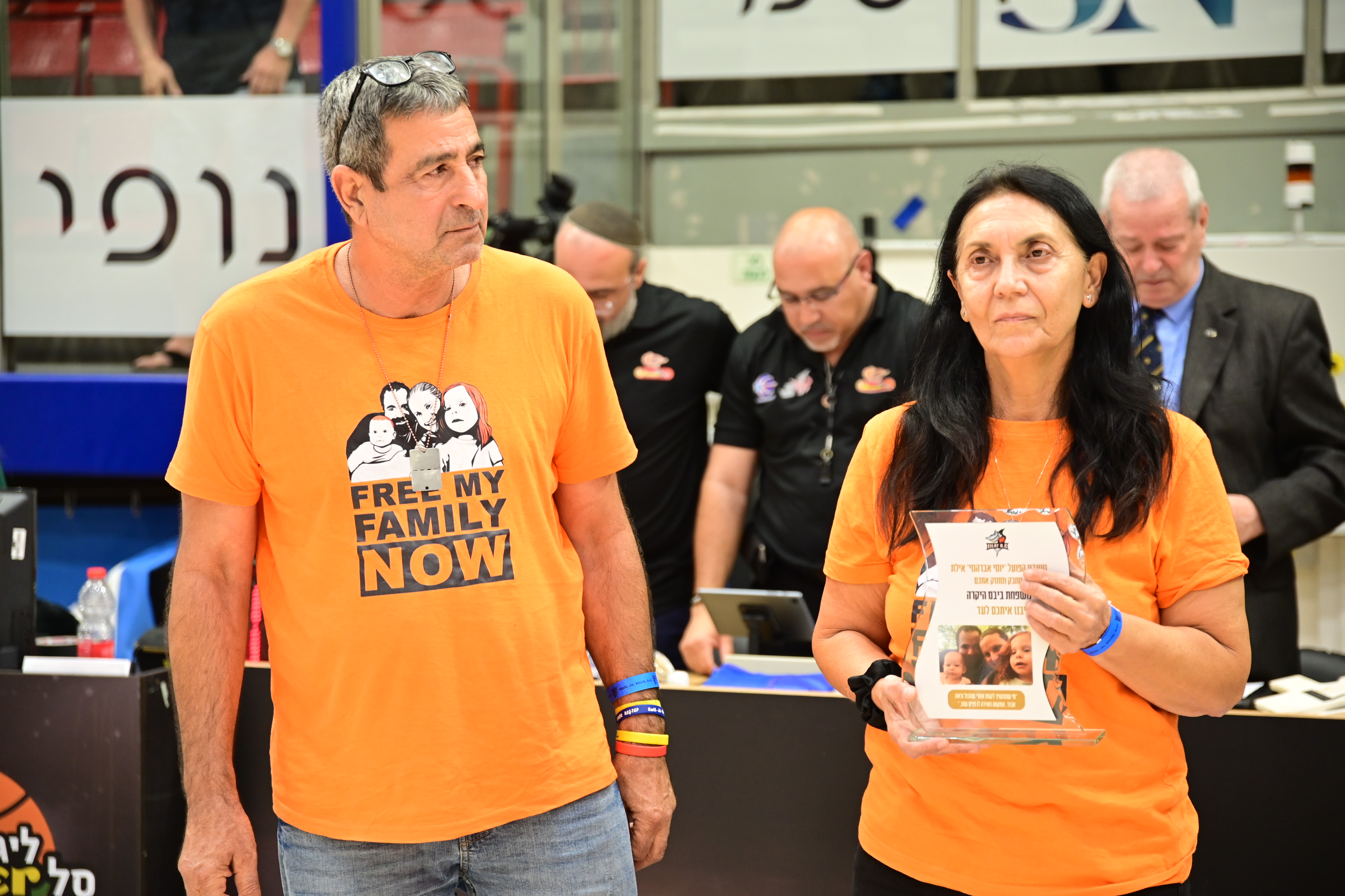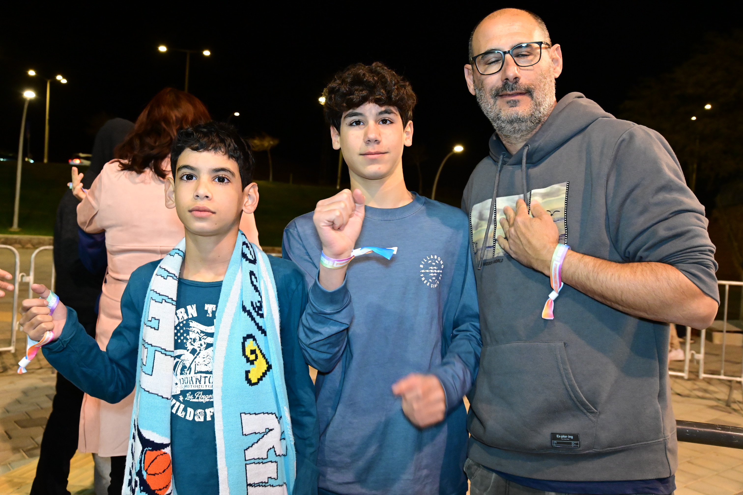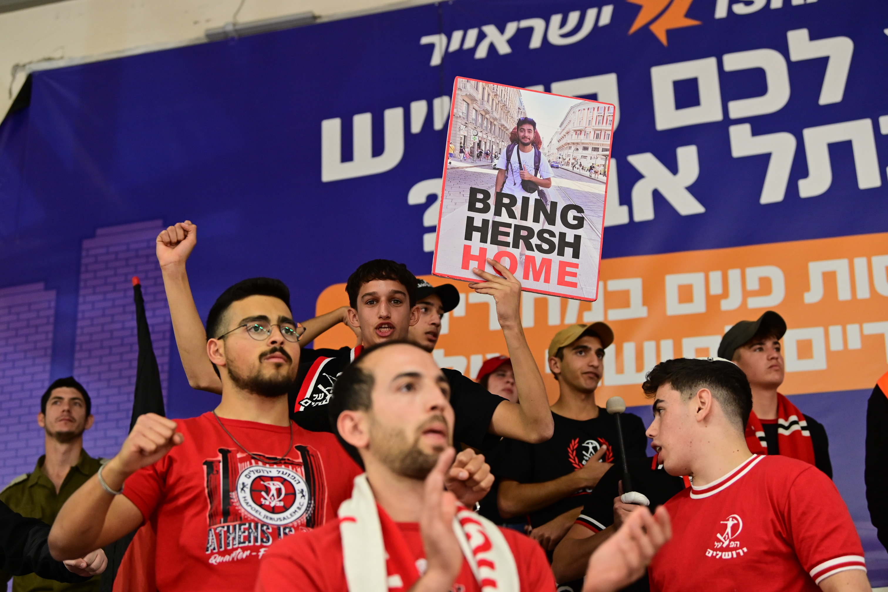 לפני המשחק: חלוקת צמידים וקריאה להחזרת החטופים הביתה (צילומים: לאו קיפר)