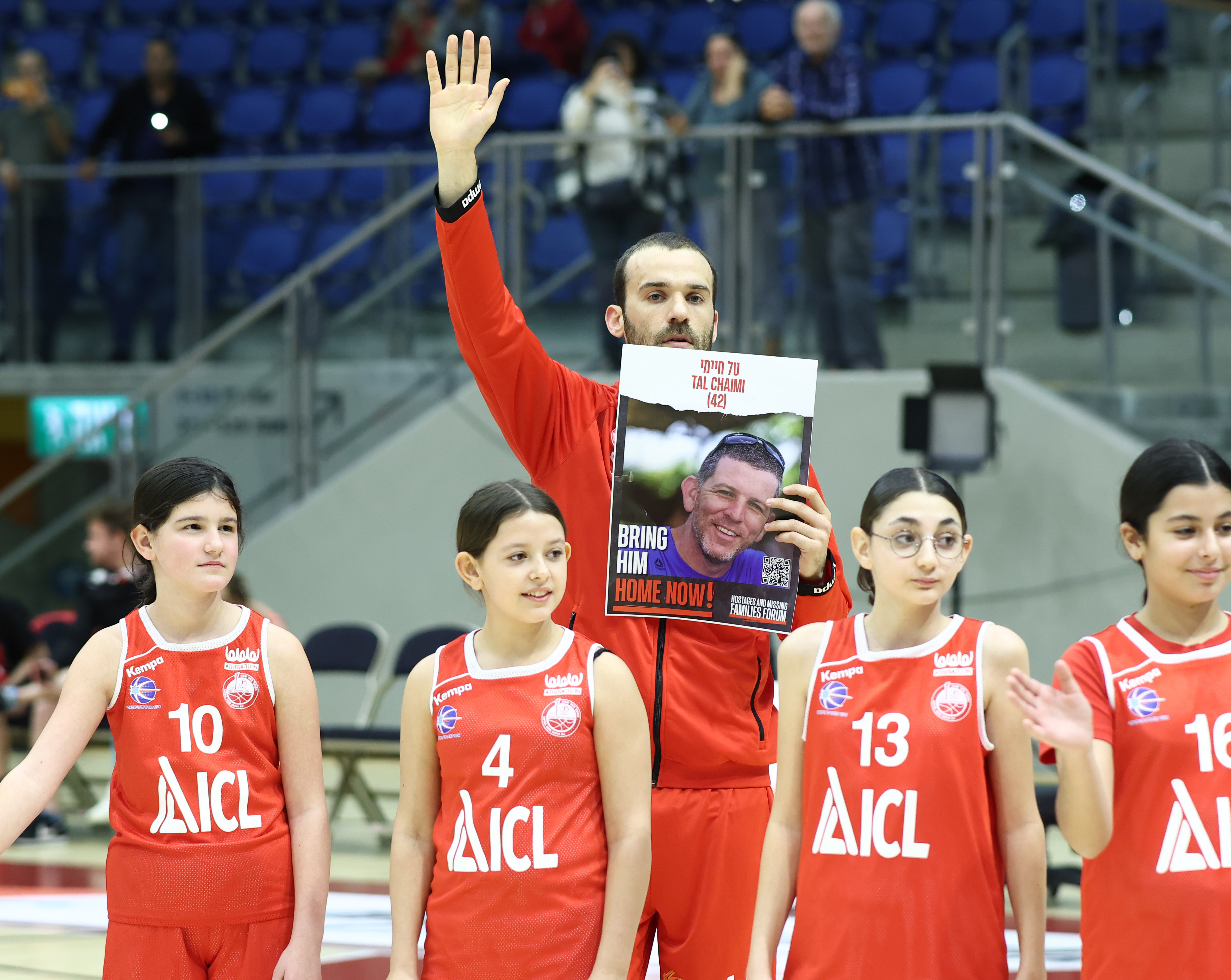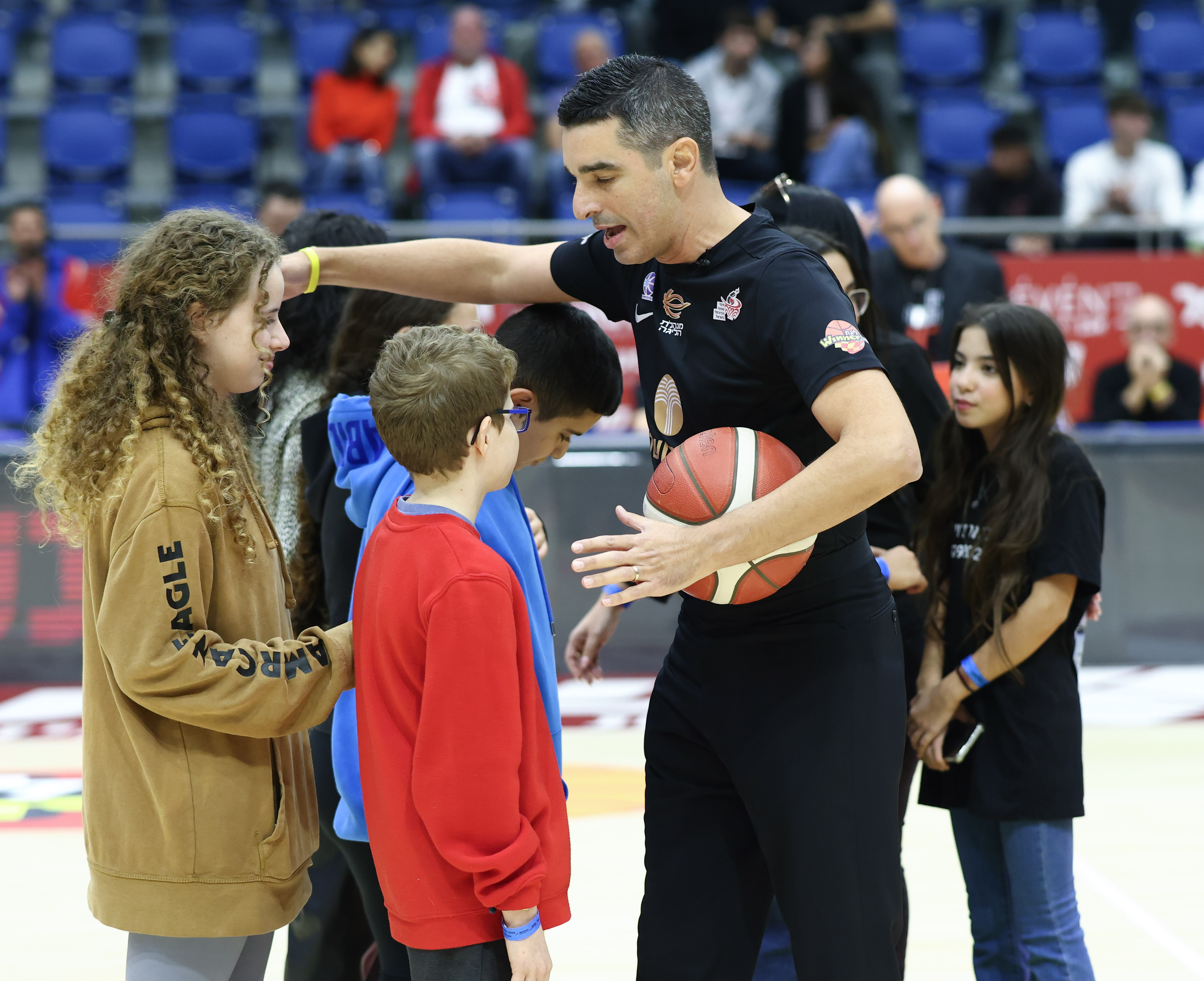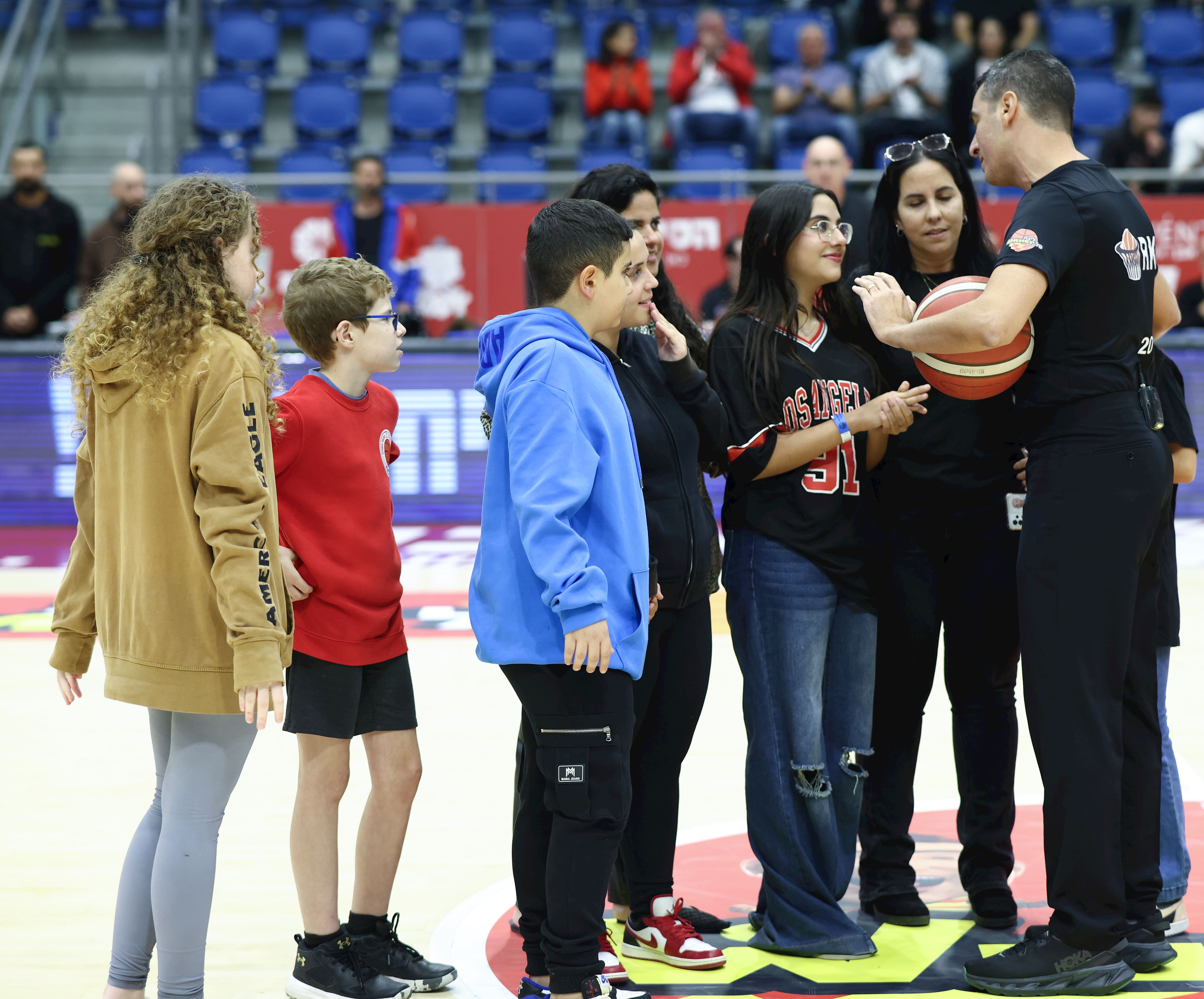 משפחות דוידוב, צידון ובוזוקשווילי הגישו את כדור המשחק לשופטים (צילומים: דני מרון)