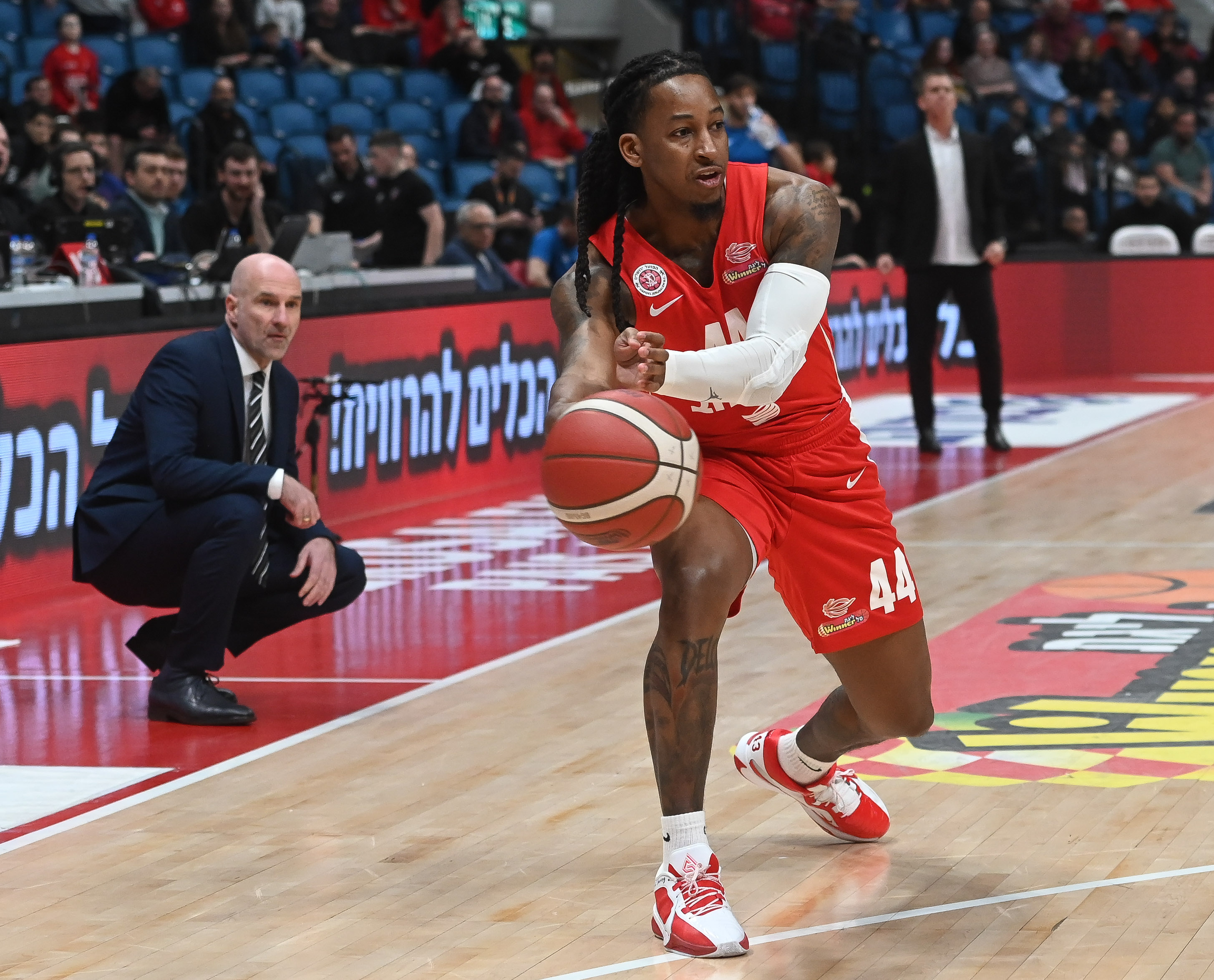 פרואיט עם הכדור. סייע לקבוצתו לצמק מעט את הפער ברבע השני (צילום: ברני ארדוב)