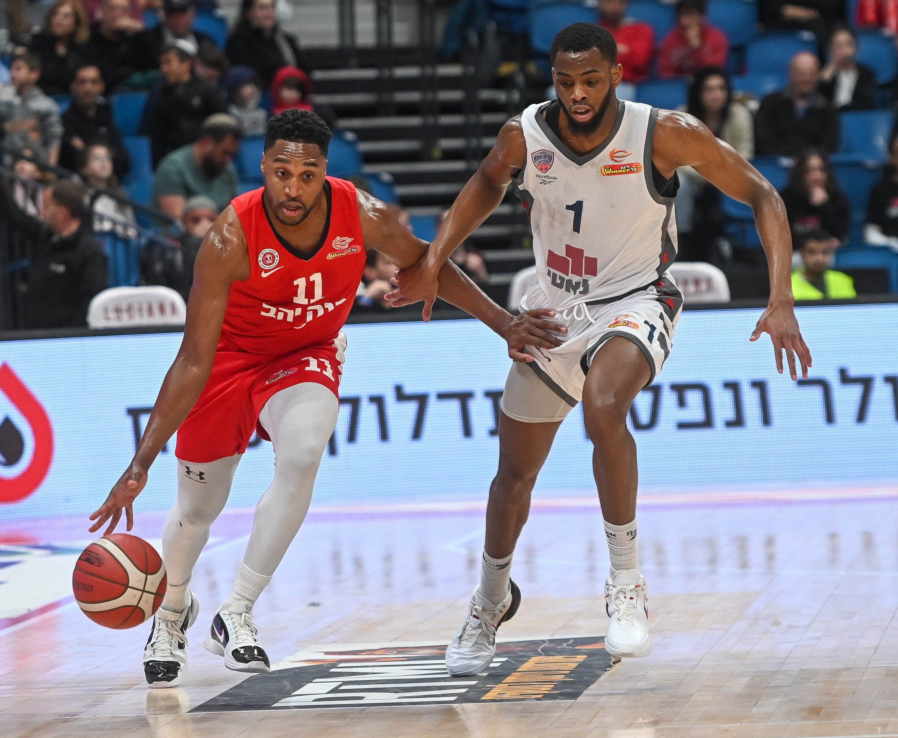 בייטמון מול קורנליוס. שני הקלעים הבולטים ברבע הראשון (צילום: ברני ארדוב)