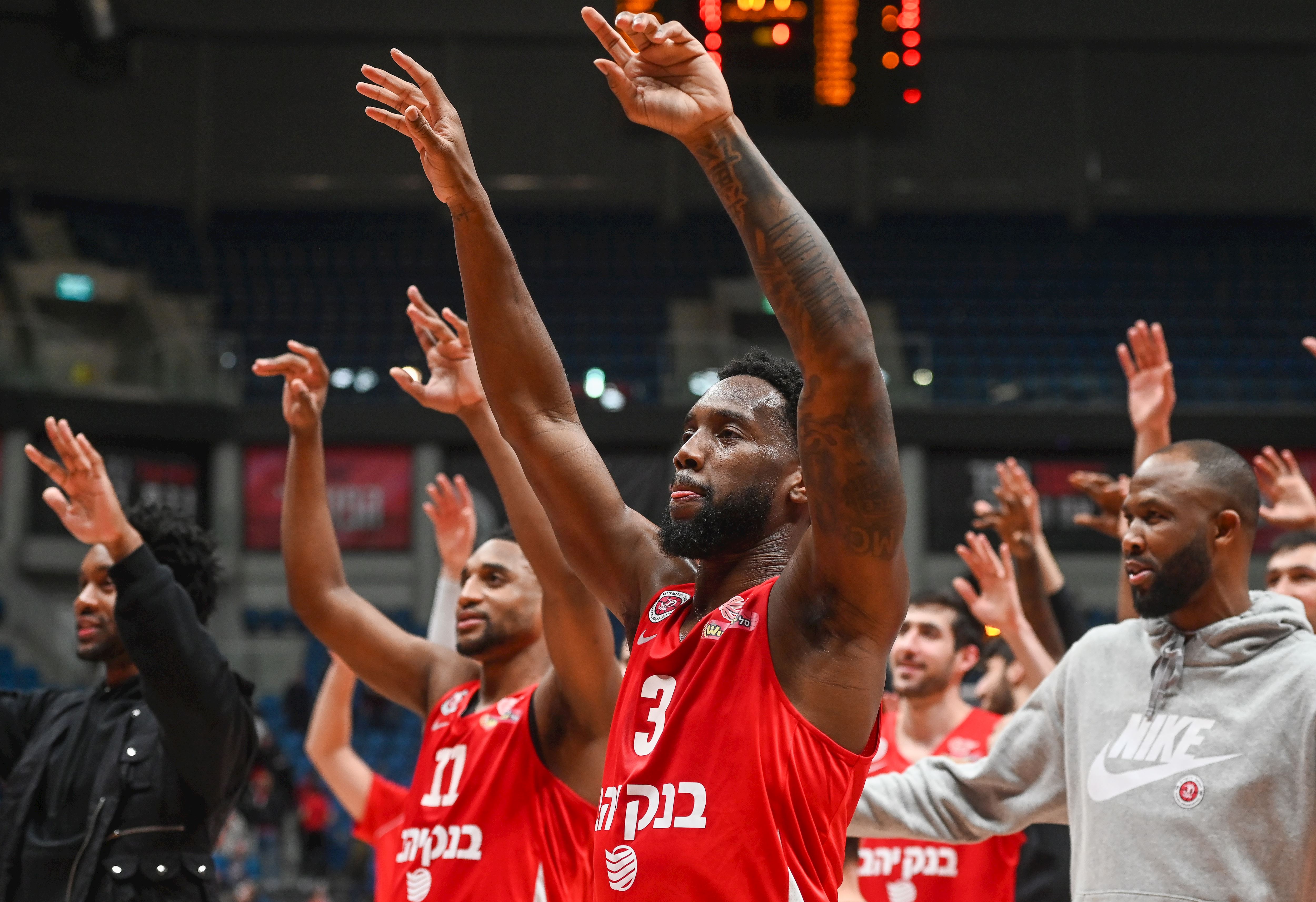 הנקינס חוגג את הניצחון של ירושלים. סיים עם 11 נקודות (צילום: ברני ארדוב)