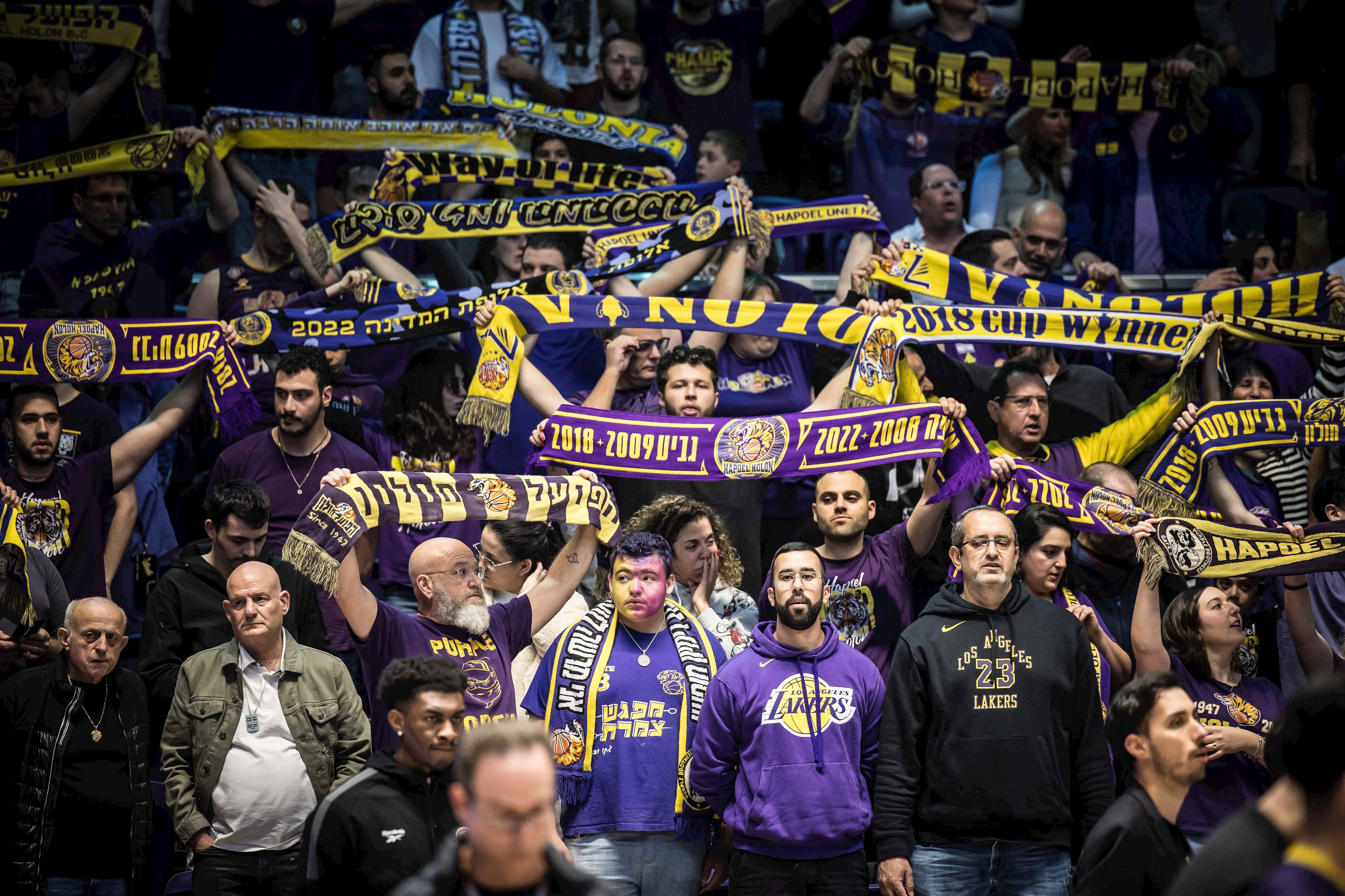 סגול-צהוב נגד צהוב-כחול ביציעים (צילומים: עודד קרני)