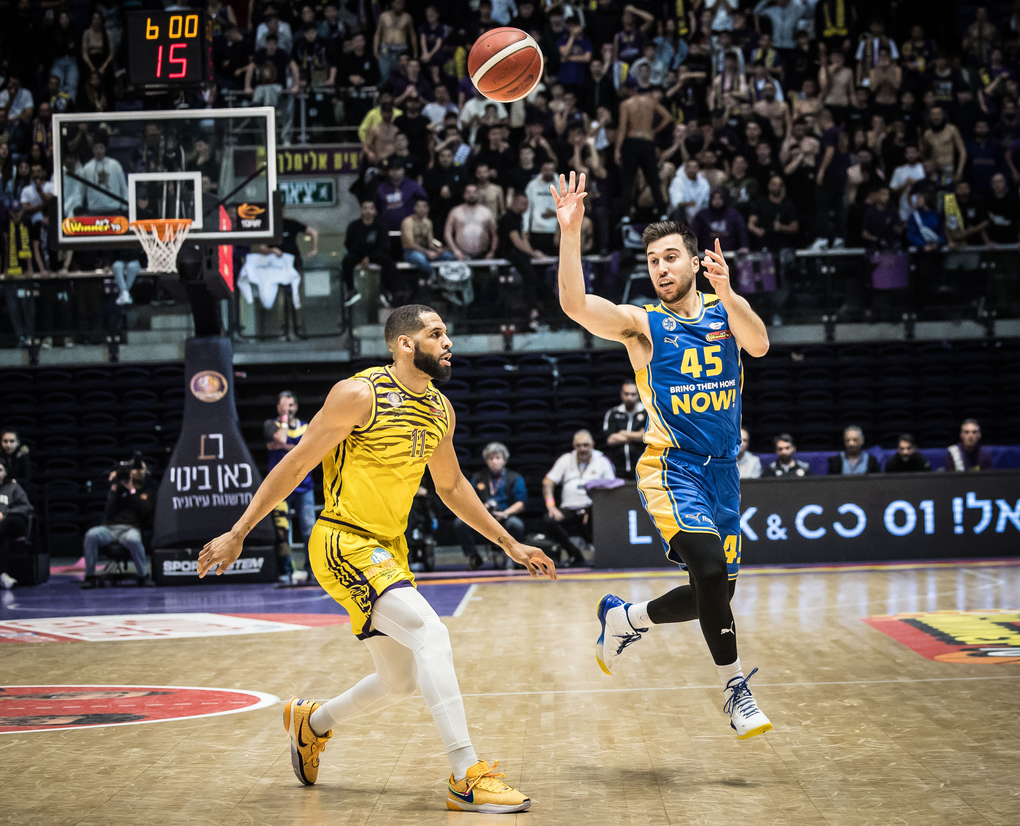 קרופורד מחפש מסירה מול בראון (צילום: עודד קרני)