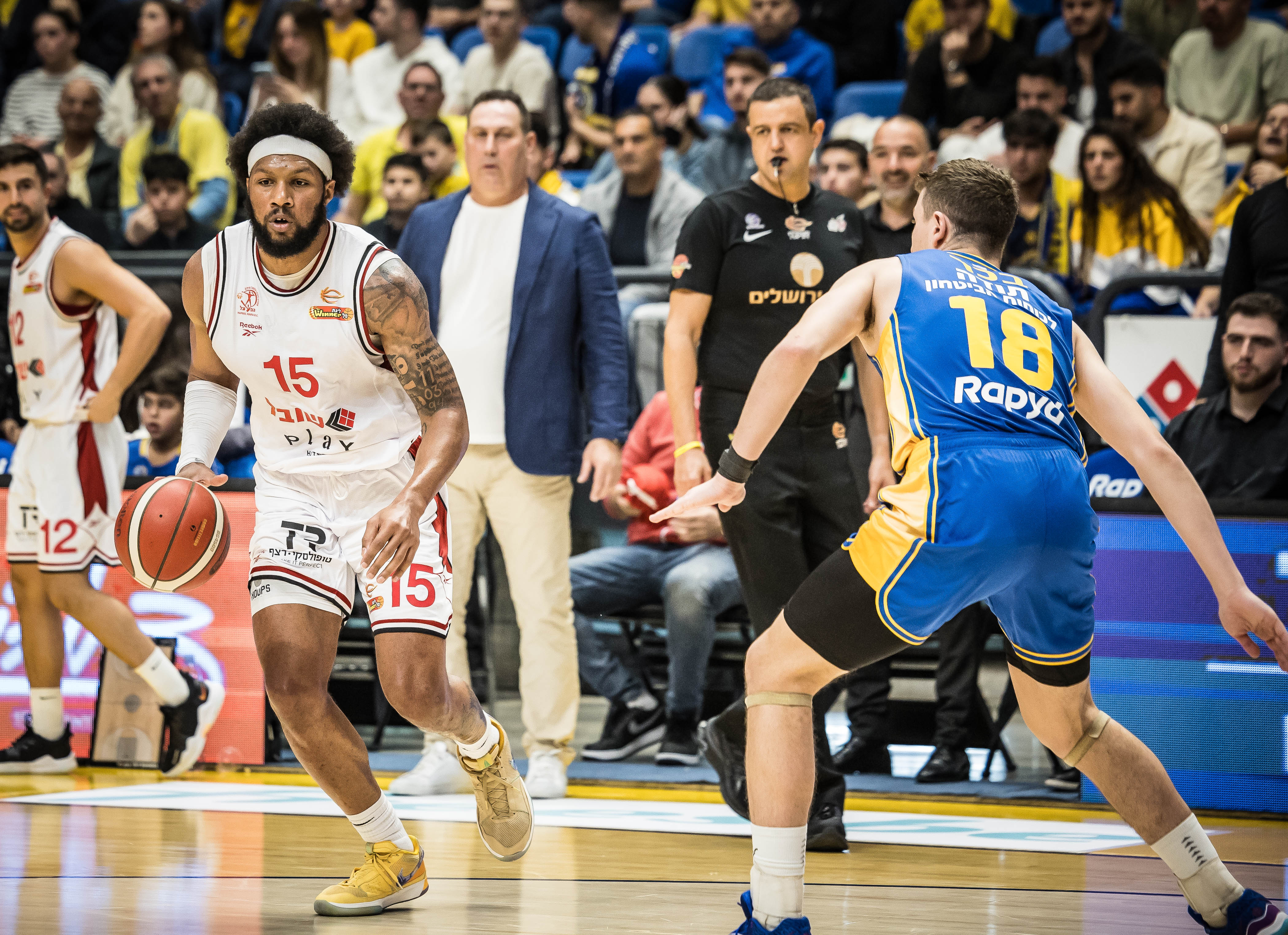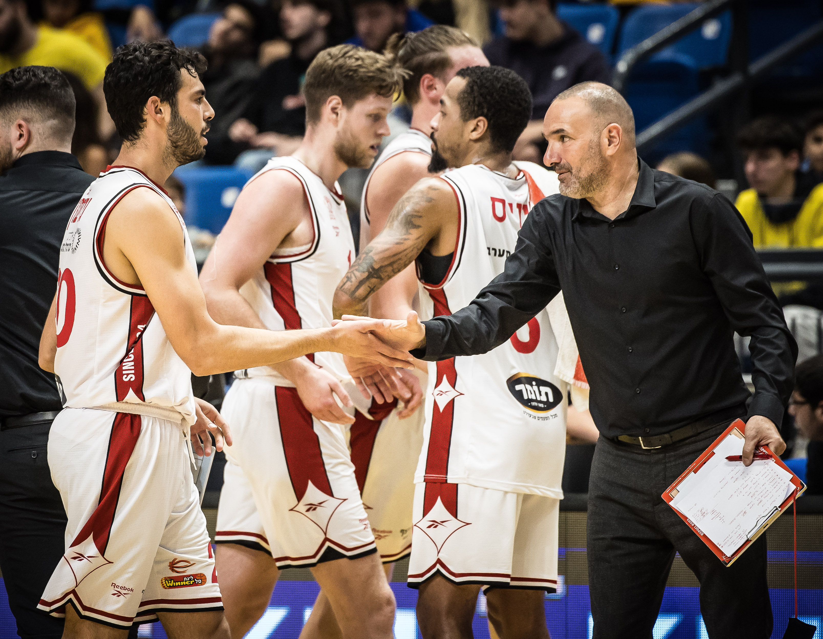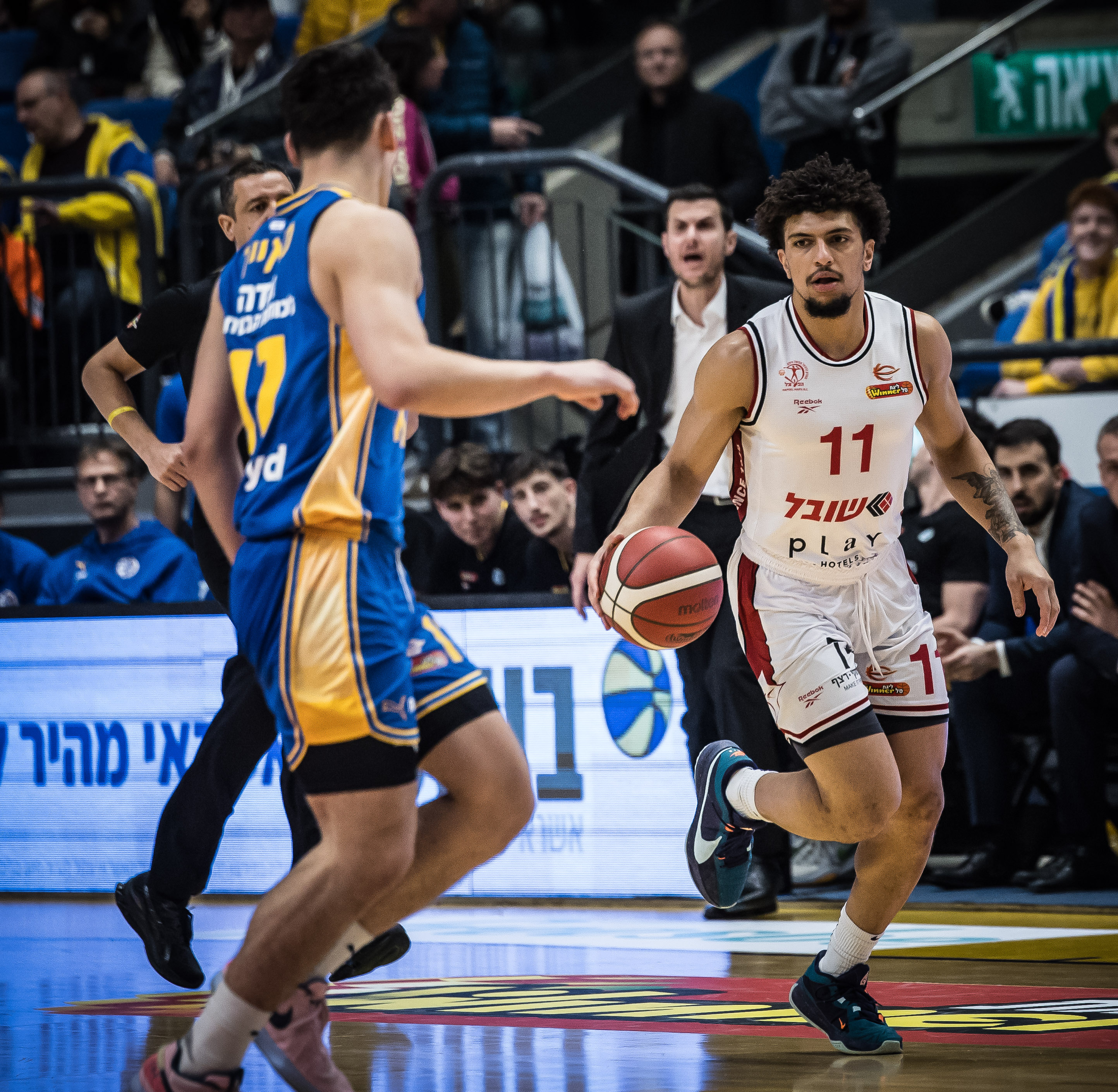 Playtika" ת"א. האדומים מהכרמל קלעו מצוין מעבר לקשת, נהנו מהופעה פנטסטית של כל שלישיית הקו האחורי שלהם וניצלו עד תום את הסגל החסר של האלופה, בדרך לניצחונם השני העונה והראשון תחת הדרכתו של גיא גודס, 96:104 בהיכל מנורה מבטחים.