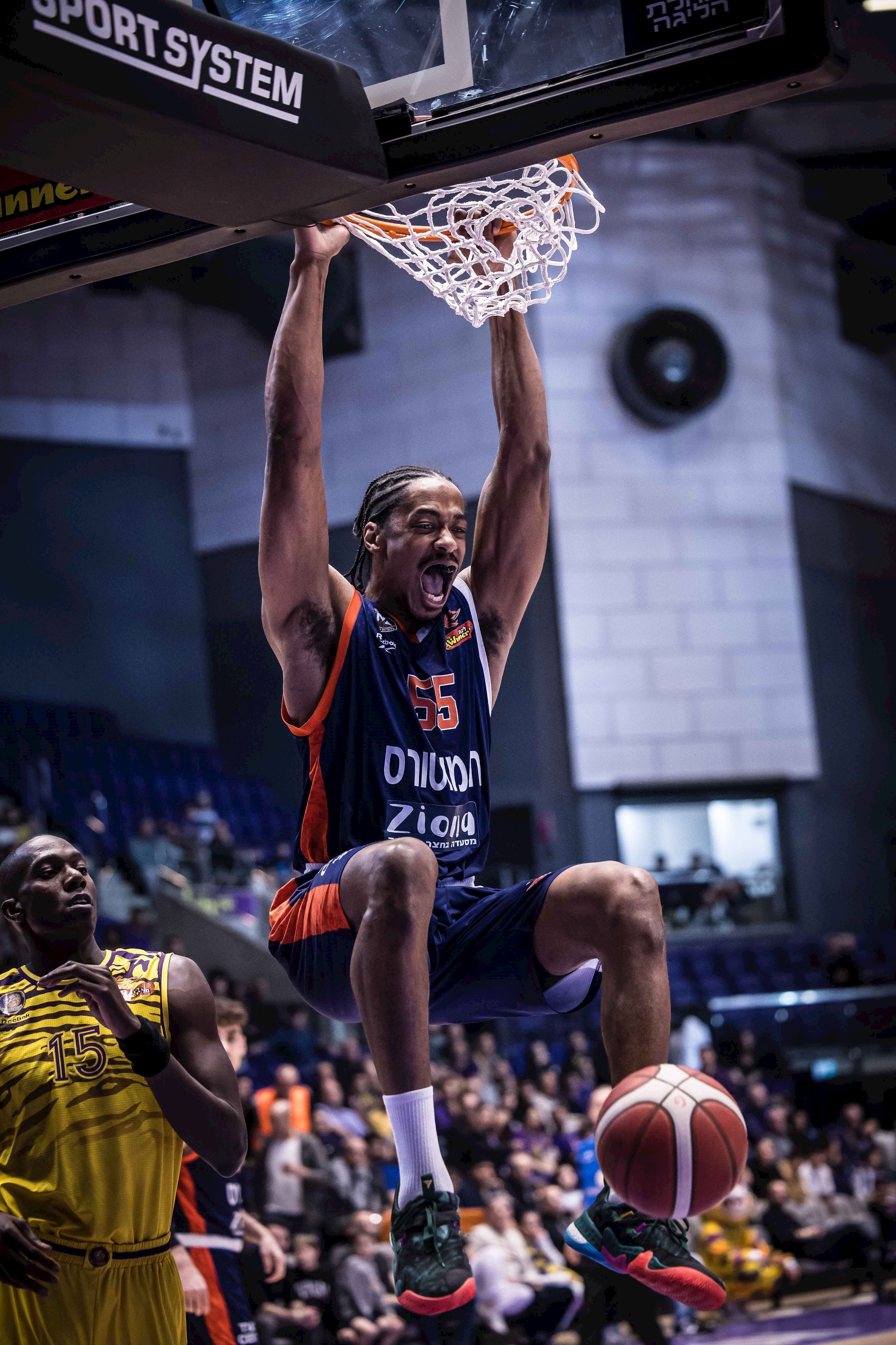 מיינסי מטביע על הרווי. עזר לקבוצתו לרדת להפסקה בפיגור סביר (צילום: עודד קרני)