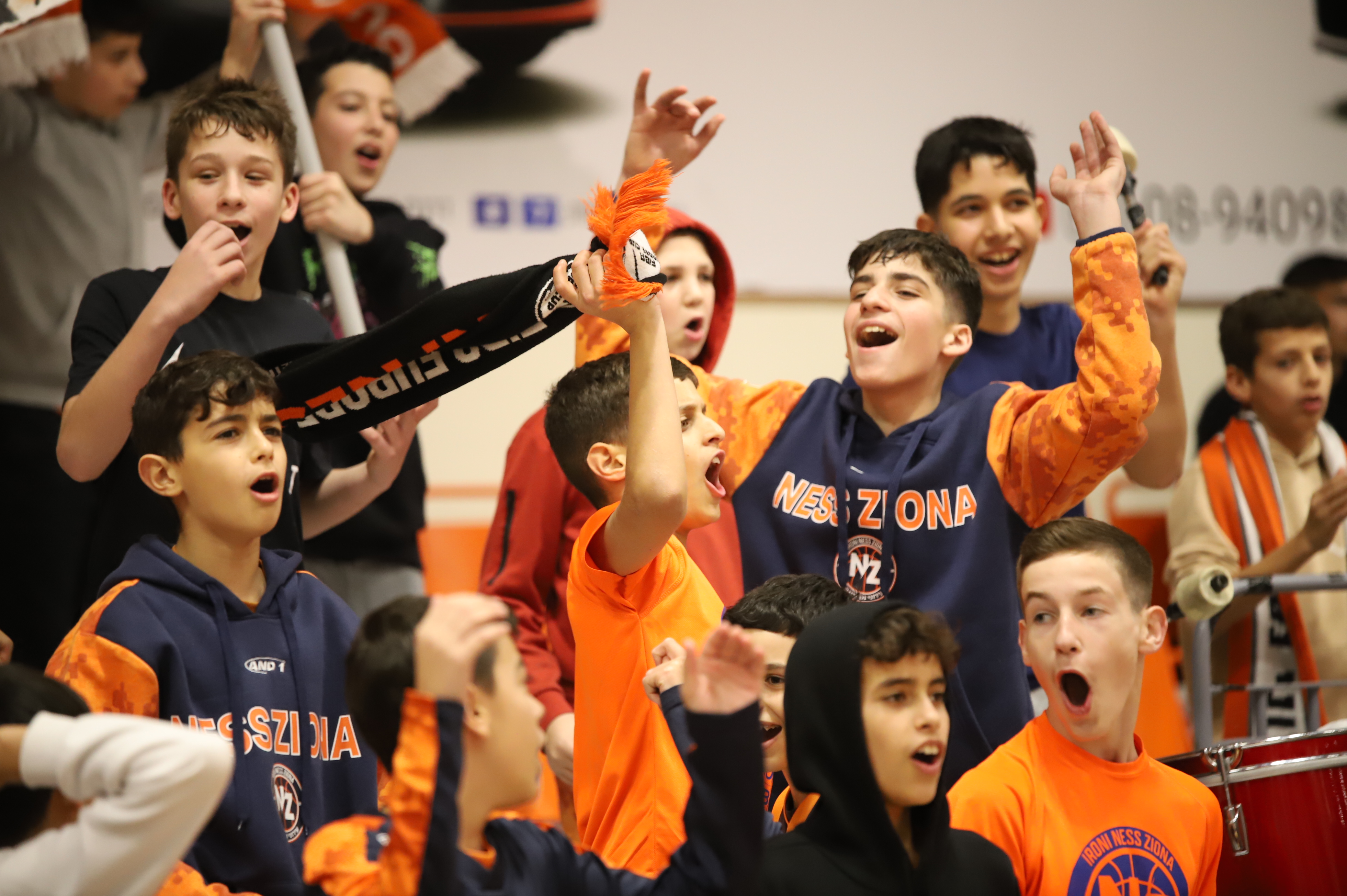 הכתומים הצעירים מעודדים את הקבוצה שלהם (צילום: עמית סמיקט, באדיבות עירוני נס ציונה)