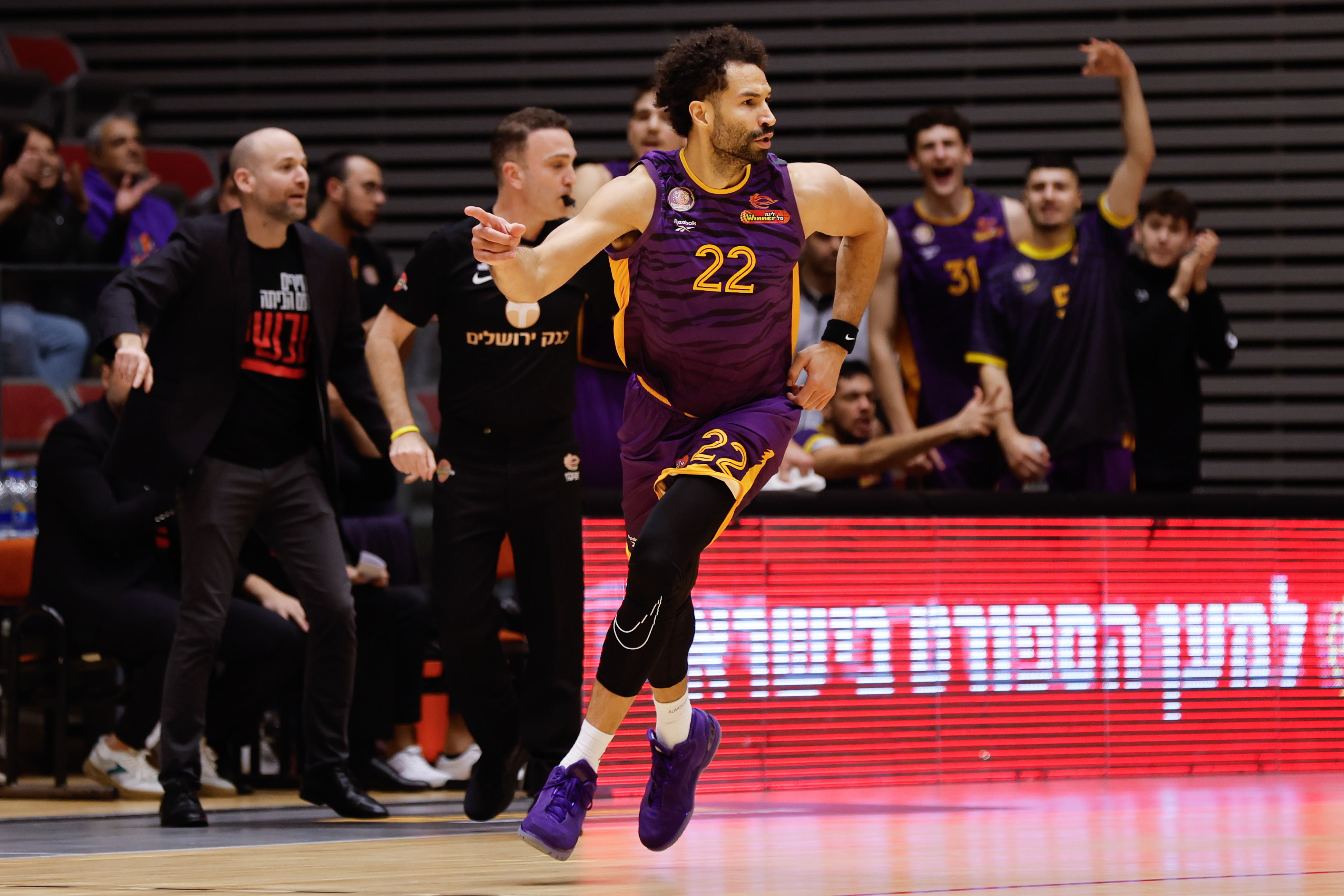 קרופורד חוגג שלשה בדרך להגנה (צילום: מאור אלקסלסי)