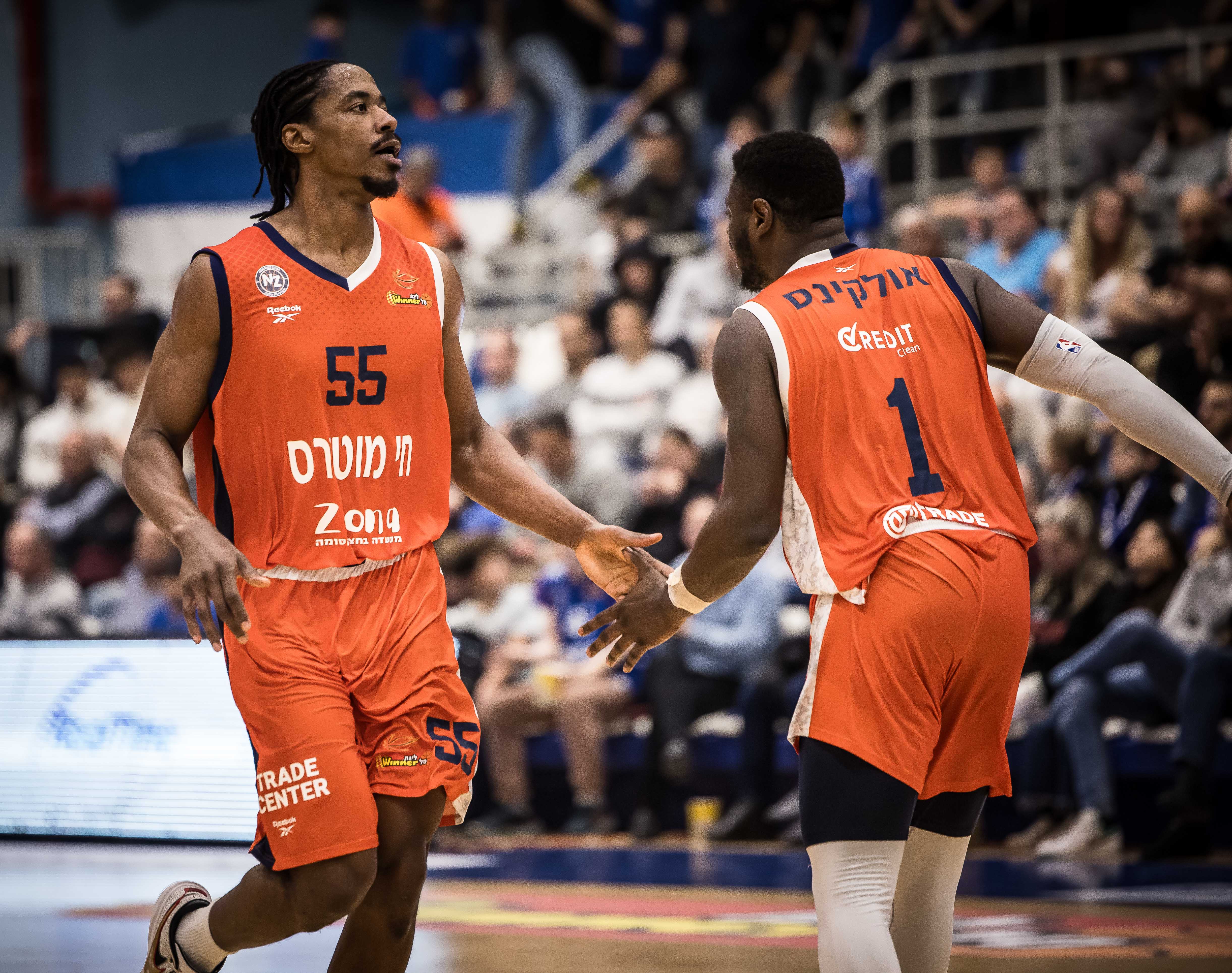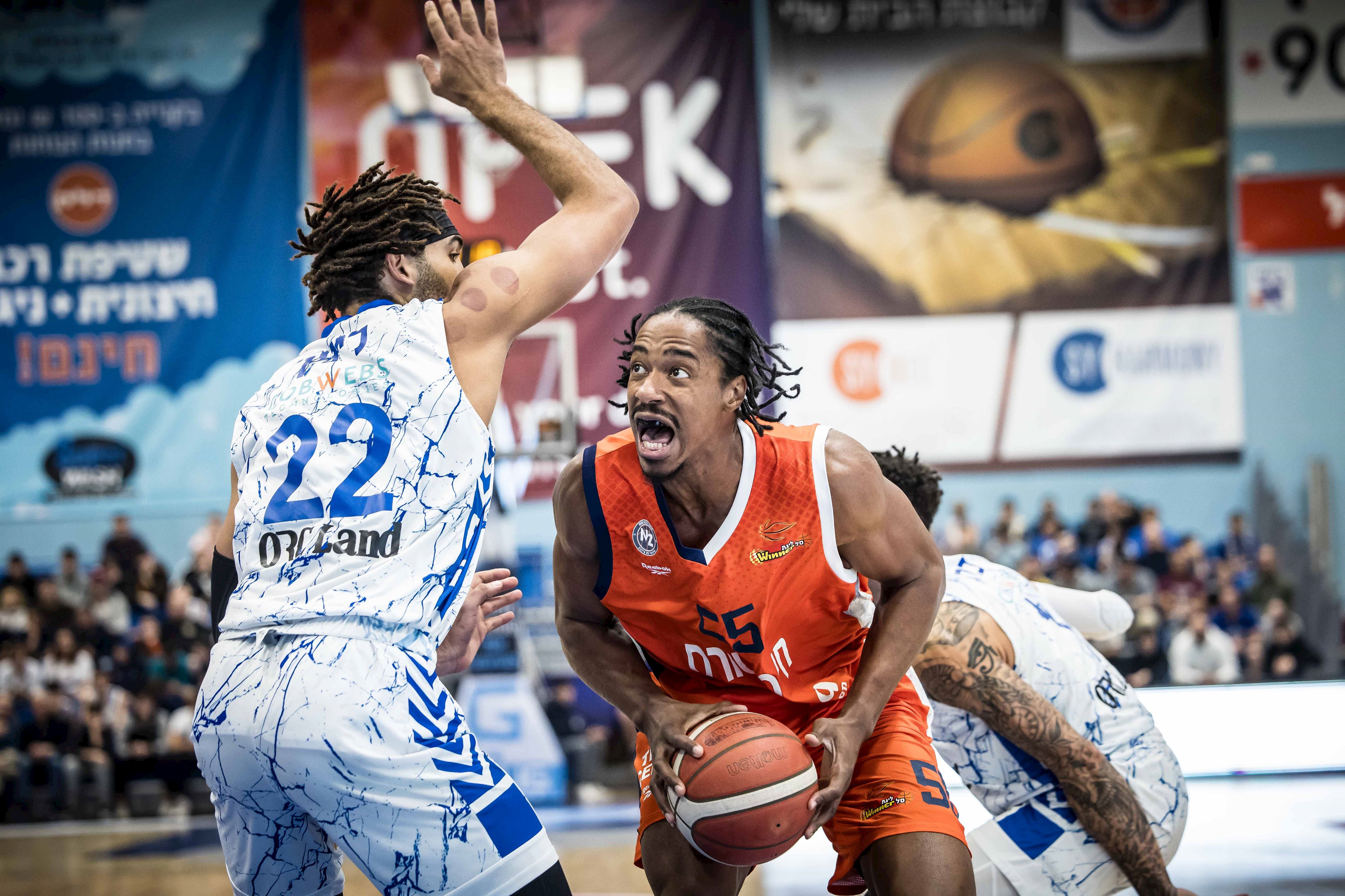 אולקינס ומיינסי. ניצחון חוץ ראשון בהרצליה מזה כמעט חמש שנים (צילום: עודד קרני)