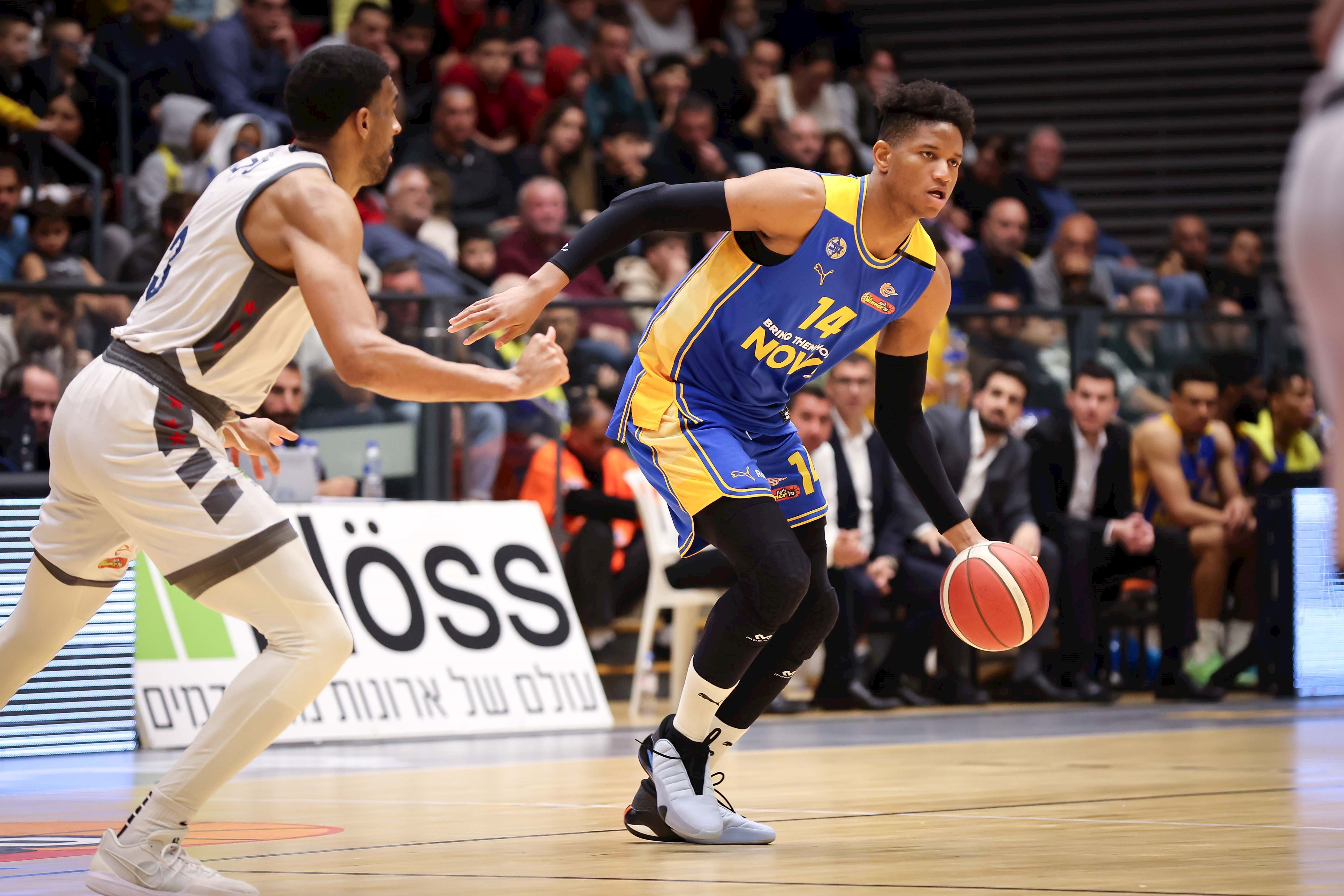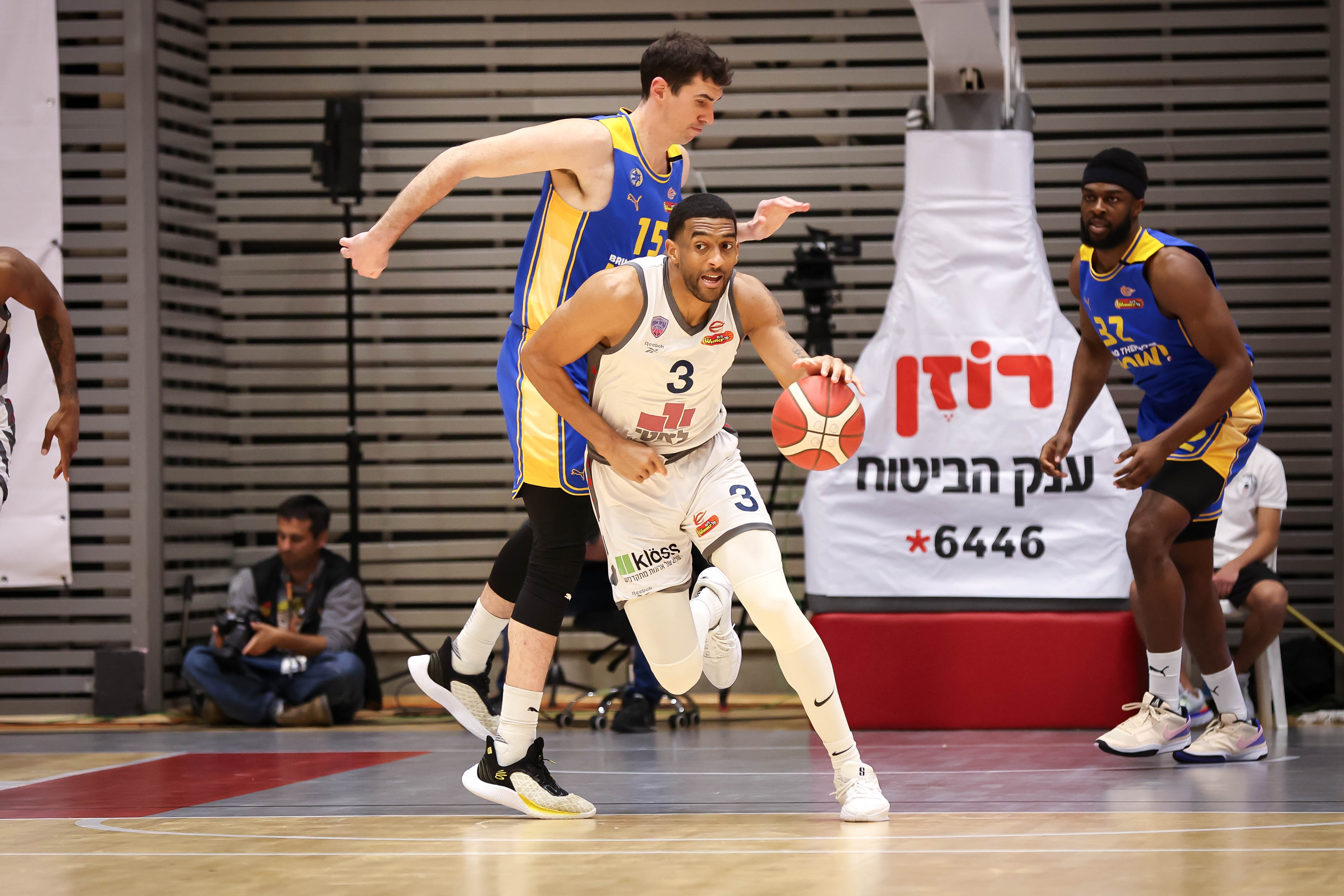 מכבי "Playtika" ת"א התגברה על קאמבק של עירוני "לאטי" קריית אתא, ועם 72:91 בחוץ השיגה את ניצחונה ה־14 ברצף. 16 לריברו, 15 לבלאט (צילום: מאור אלקסלסי)
