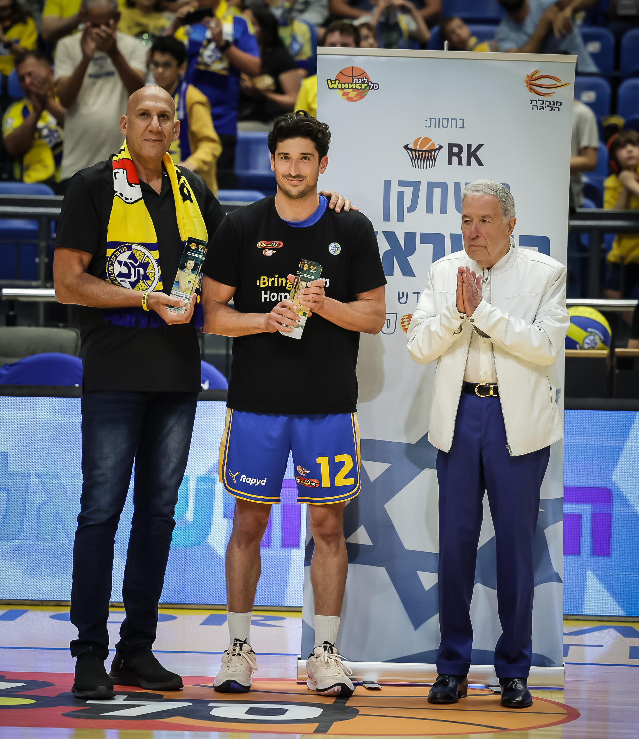 דיברתולומיאו מקבל ממזרחי וג'מצ'י את תואר שחקן החודש הישראלי (צילום: עודד קרני)