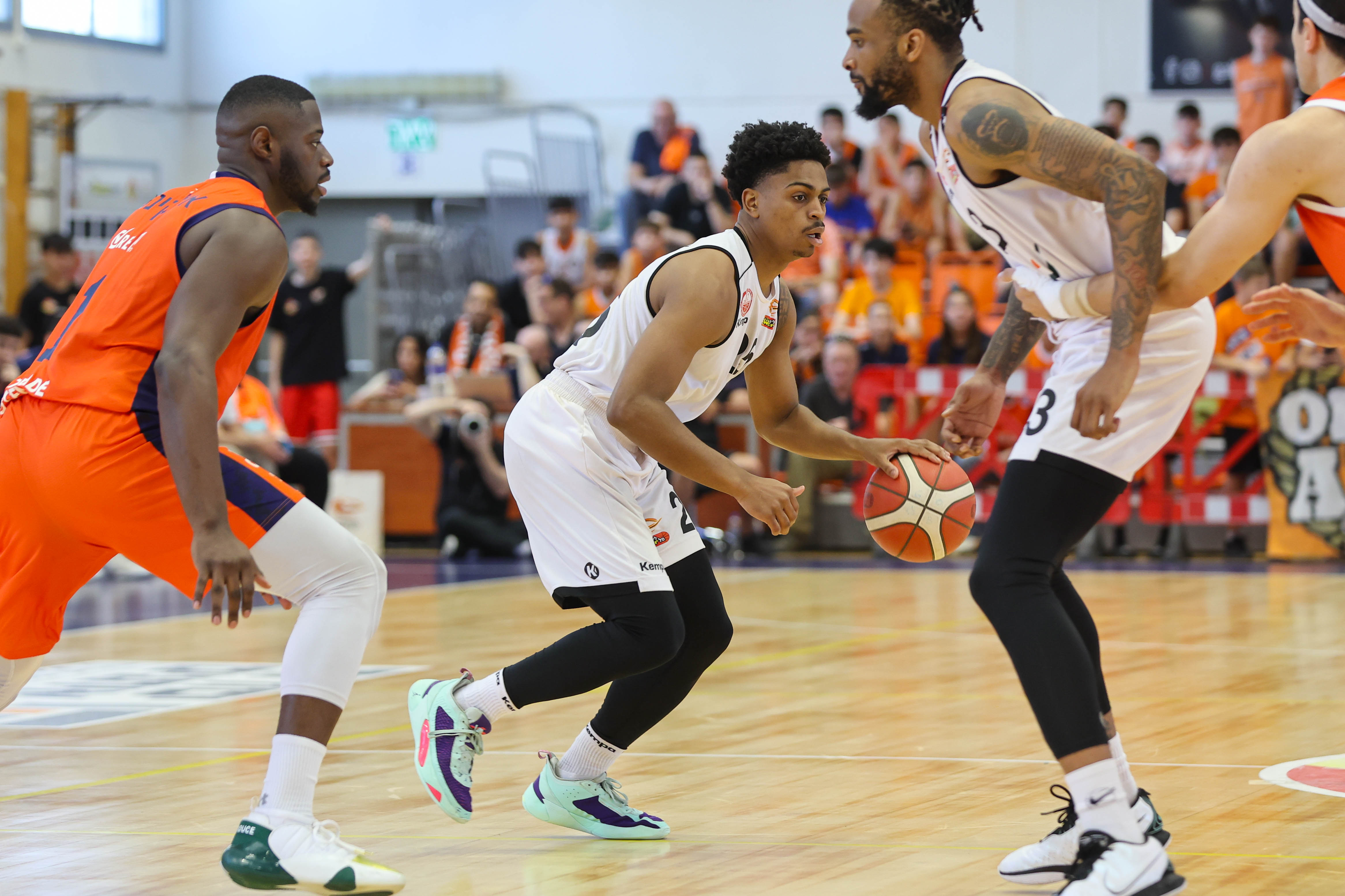 נס ציונה פתחה בחמישייה עם יאיר קרביץ, אייזיה ווייטהד, ראלי אולקינס, ג'רום מיינסי ואיתי שגב, באר שבע עם מייק לואיס, גרנט שרפילד, איגור קולשוב, ג'קינן גאנט וג'ארוויס וויליאמס. גאנט קלע את נקודות הבכורה במשחק מהקו, אבל ההמשך היה של הכתומים – שבהובלת אולקינס וקרביץ ברחו ליתרון דו-ספרתי, 2:12 מדאנק של שגב. וויליאמס ונטע סגל ניסו לעצור את המומנטום, אבל שתי שלשות רצופות של קרביץ קבעו 8:21. חואקין שוכמן הכניס אנרגיות מהספסל, גלעד לוי נכנס לעניינים בסל ועבירה ולואיס הוביל ריצת 0:8 – אבל הכתומים חזרו מפסק זמן עם שלשה של אולקינס וקרביץ פתח פער דו-ספרתי מהקו,