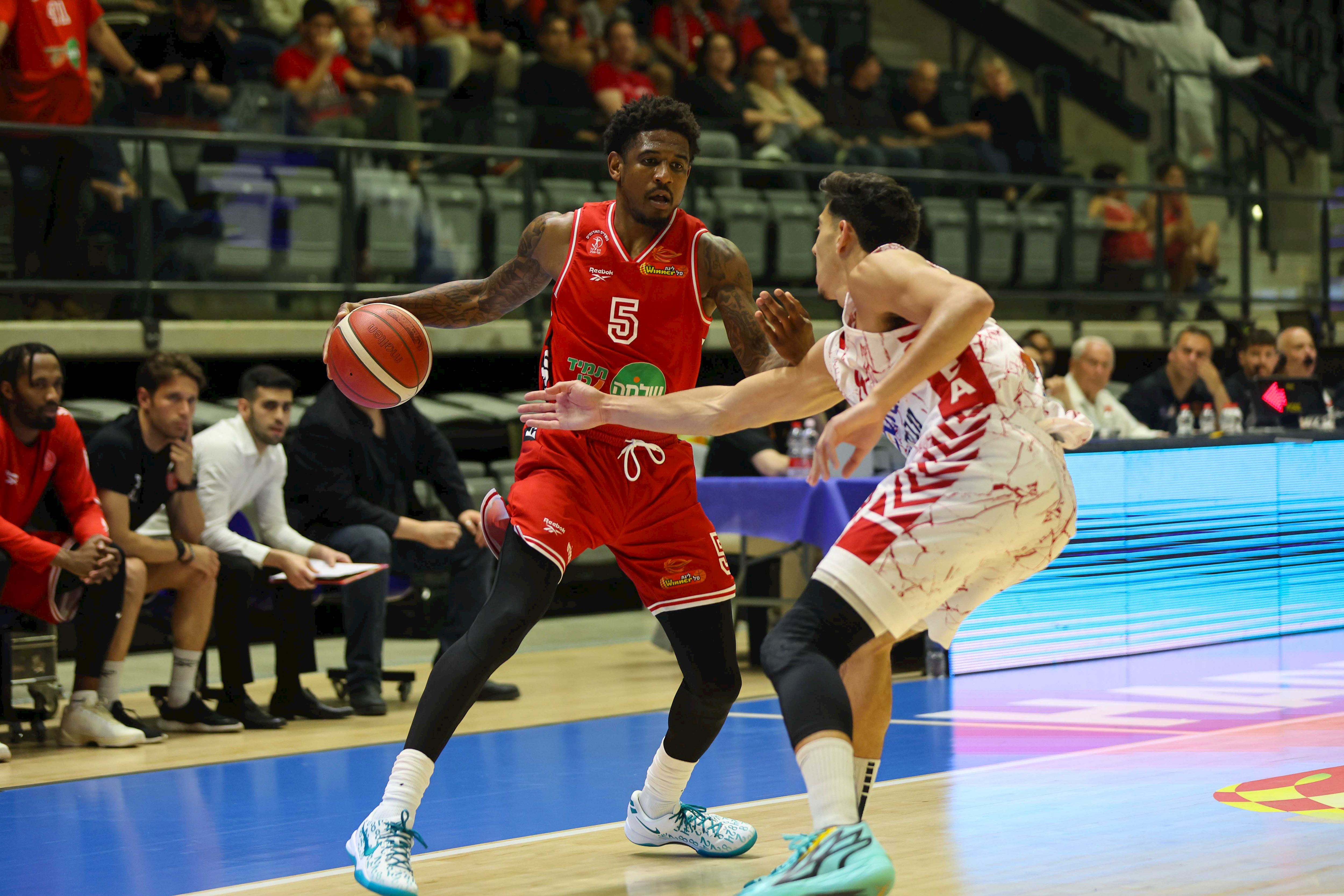 זלמנסון, אנגולה והנאס. ניצחון נוח בחדרה (צילום: לירון מולדובן)