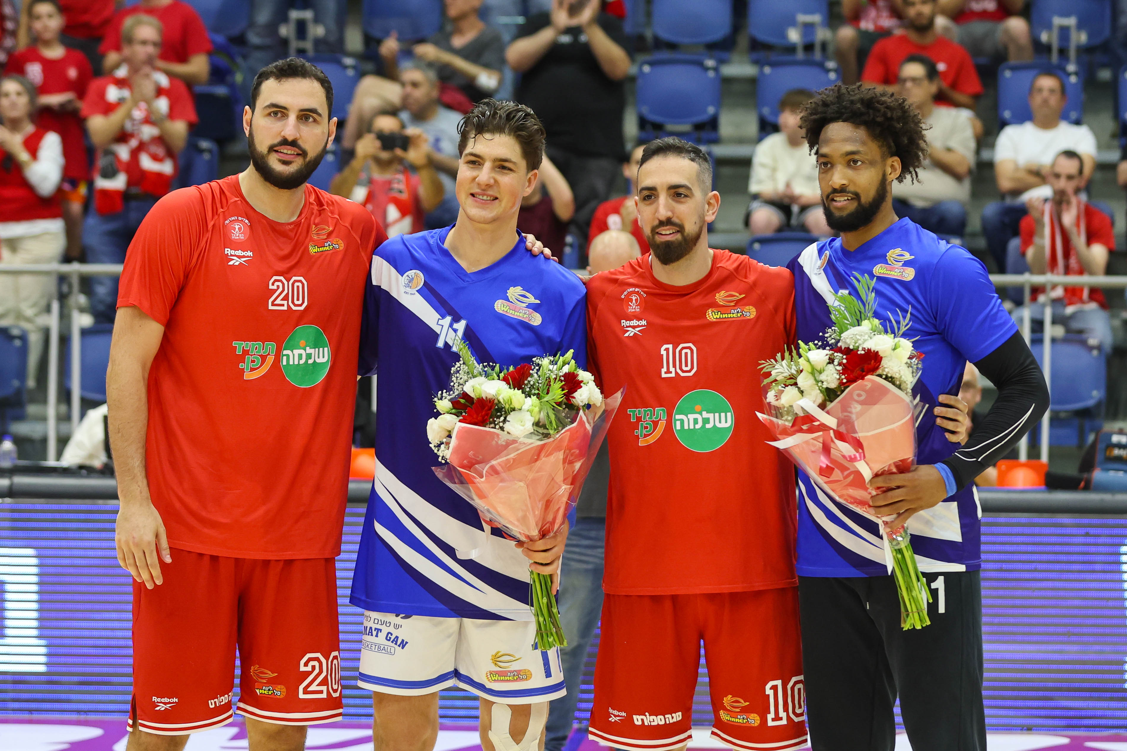 טימור וזלמנסון מעניקים פרחים לטוקוטו ולאריאל על תקופתם באדום (צילום: לירון מולדובן)