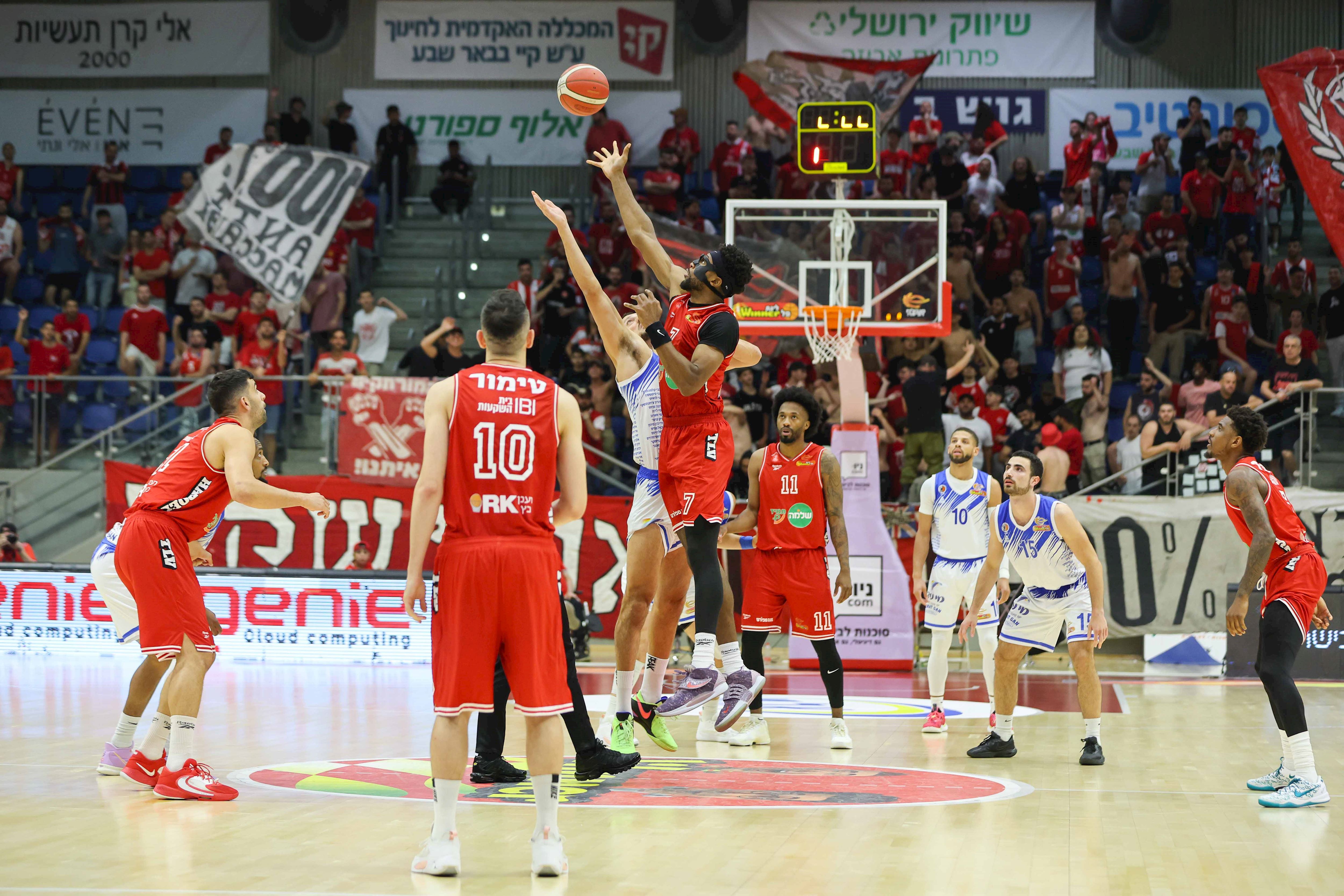 הפועל תל אביב פתחה בחמישייה עם בר טימור, אקסבייר מנפורד, בריאן אנגולה, תומר גינת וקייל אלכסנדר, מכבי רמת גן עם קנדל מקולום, ג'ורדן כהן, אדם אריאל, ג'יי.פי טוקוטו ובניה סרור. האדומים הלכו בפתיחה לאלכסנדר, שעם שני דאנקים מהירים קבע 2:6 ושלח את שמוליק ברנר לפסק זמן אחרי שתי דקות ורבע. טוקוטו הכניס את האורחת לתמונה אבל טימור המשיך להכתיב את הקצב, אלכסנדר ריחף מעל הטבעת, מנפורד סיפק פולו דאנק משלו ואנגולה במהלך מרשים של סל ועבירה הגדיל ל-10:19. שלשות של איתי מושקוביץ ונוני אומאט שינו את המומנטום, ובעזרת מקולום – שהרים את הרמה – צמצמו ל-