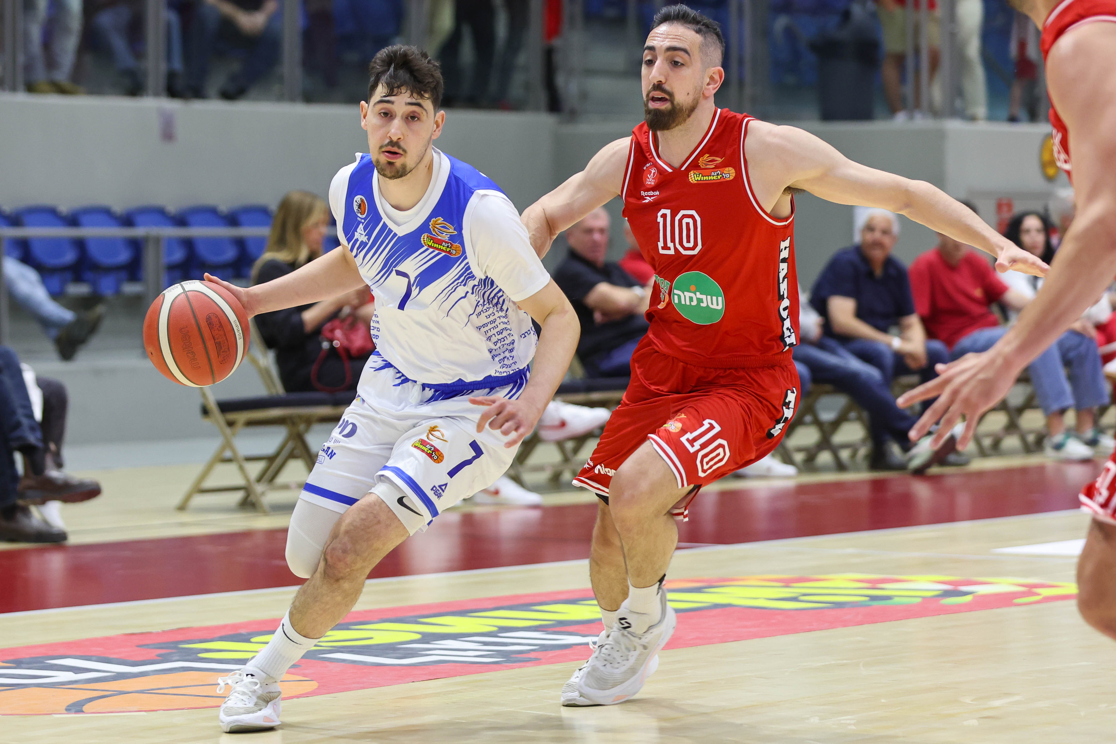 יהל מלמד נתן לאורחים יתרון ראשון בחטיפה וליי־אפ קל, דאסטי הנאס הגיב בקליעה קשה בתנועה אבל אומאט ומלמד בפעולות יפות המשיכו את הריצה ושלחו את ברק לדרר לדבר על זה עם חניכיו בפיגור 31:25. אומאט הגיע ראשון לספרות כפולות כשסגר ריצת 2:16 ברצף קליעות עונשין, מנפורד קטע את הבצורת באסיסט נפלא לדאנק של אלכסנדר ואנגולה עם 3 מ-3 מהקו הוריד ל-36:30. גינת עלה על הלוח בטיפ־אין, מנפורד קלע את השלשה הראשונה של האדומים ועידן זלמנסון השווה אחרי כדרור מפתיע במתפרצת, 37:37. גינת השלים מהפך בפוסט־אפ יפה ועוד פוט־בק, כהן עשה סוף לריצת 2:16 נגדית בליי־אפ יפה במתפרצת – ובירידה להפסקה 39:41 להפועל תל אביב.