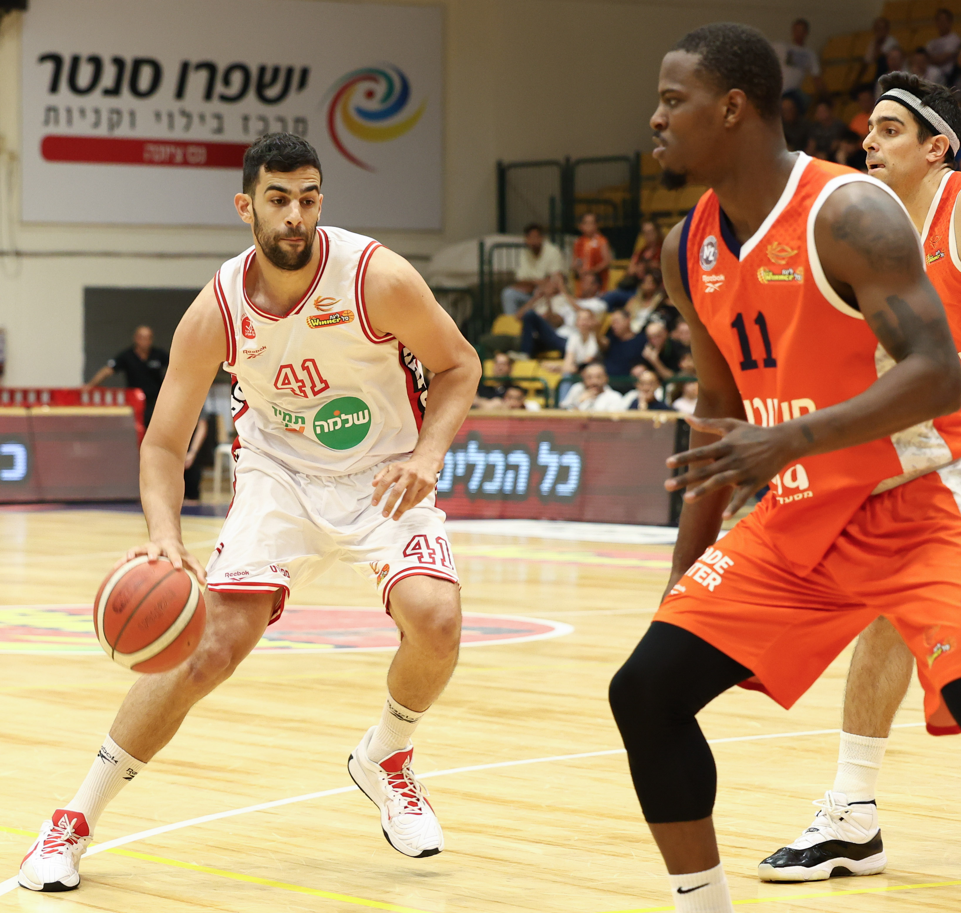 בני מנסה לעבור את היל. קלע עבור האדומים את הנקודה ה־100 (צילום: דני מרון)