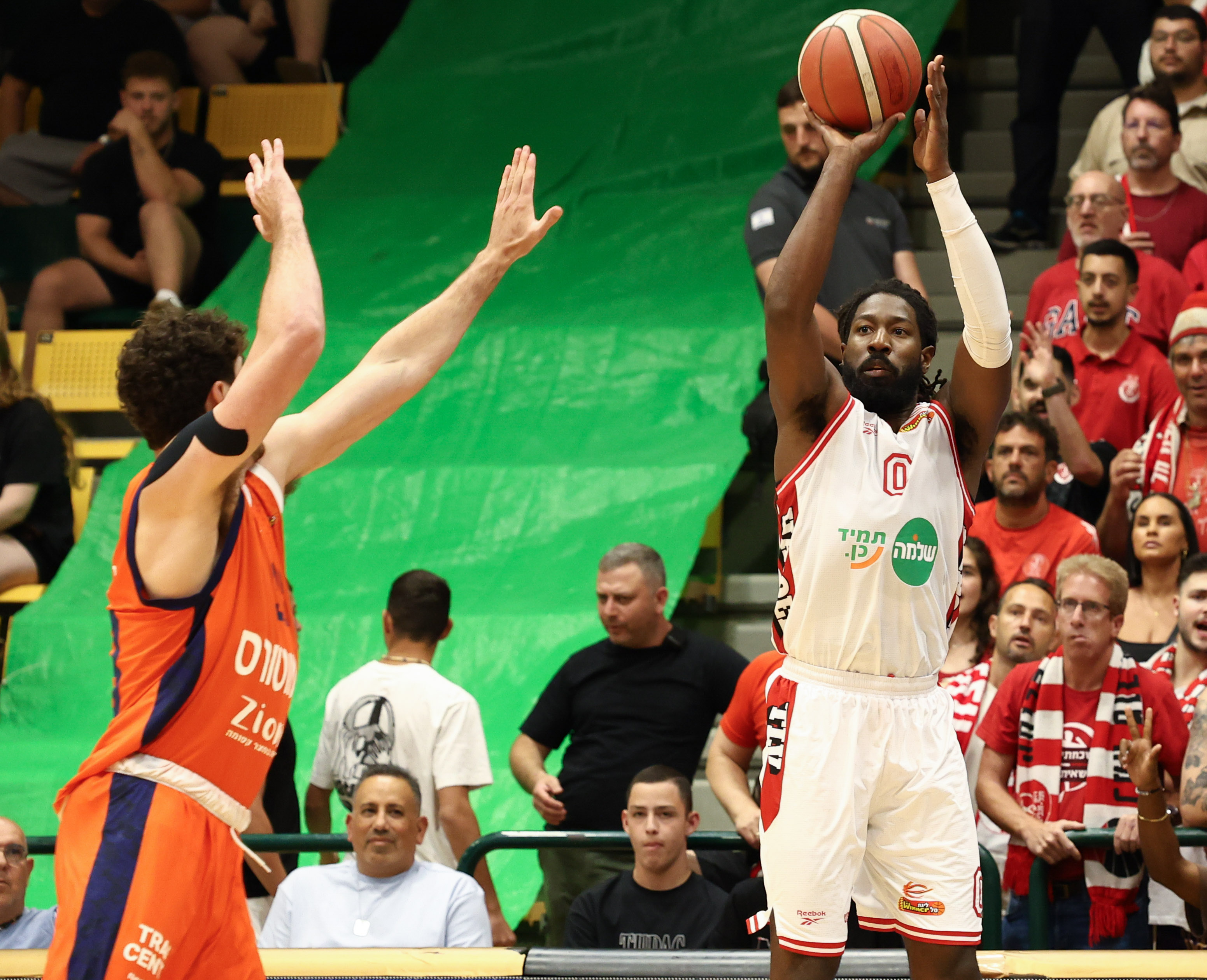 הולנד זורק מעל קרביץ. עשר נקודות עד ההפסקה (צילום: דני מרון)