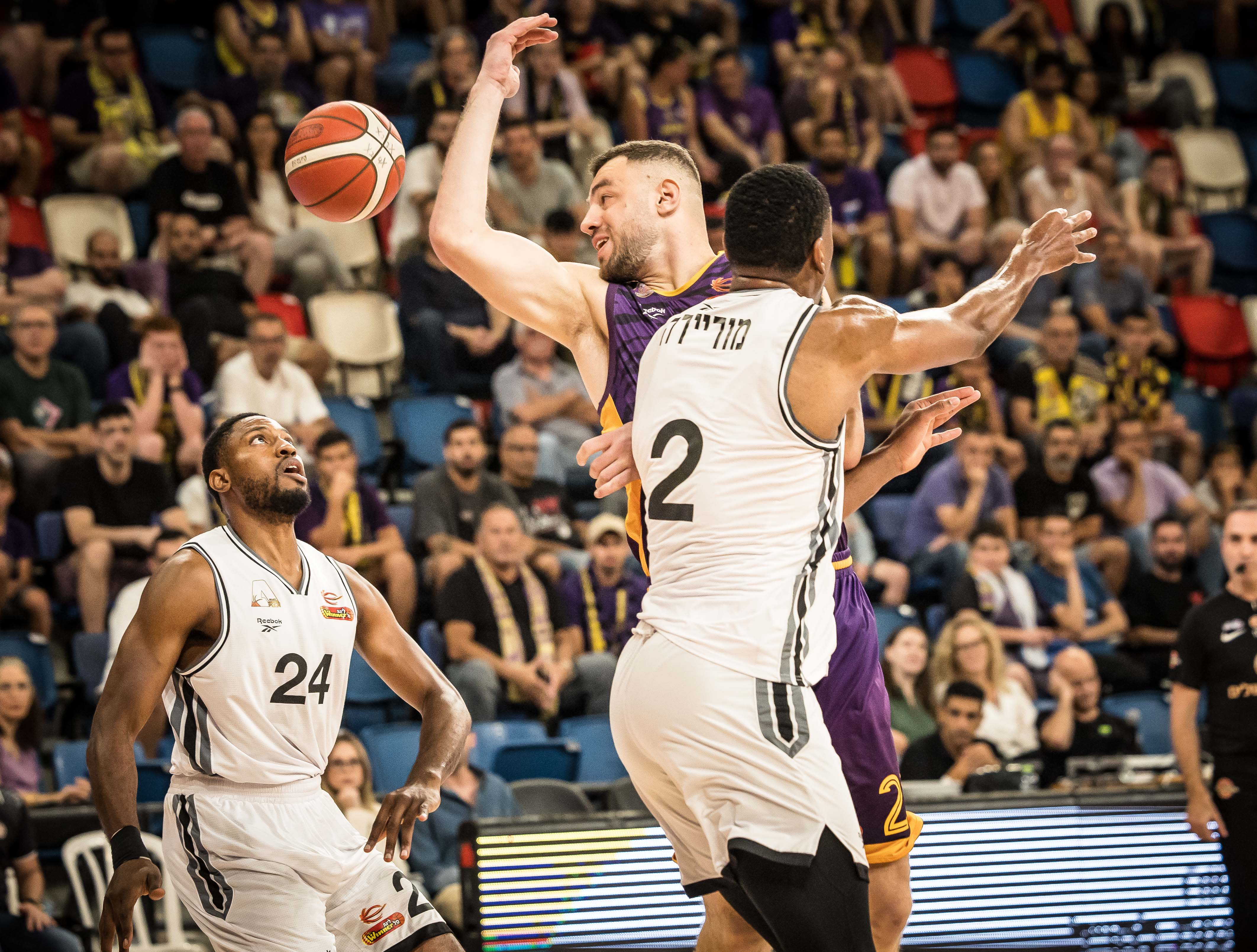 ארצי מנסה לקלוע מול מוריירה (צילום: עודד קרני)
