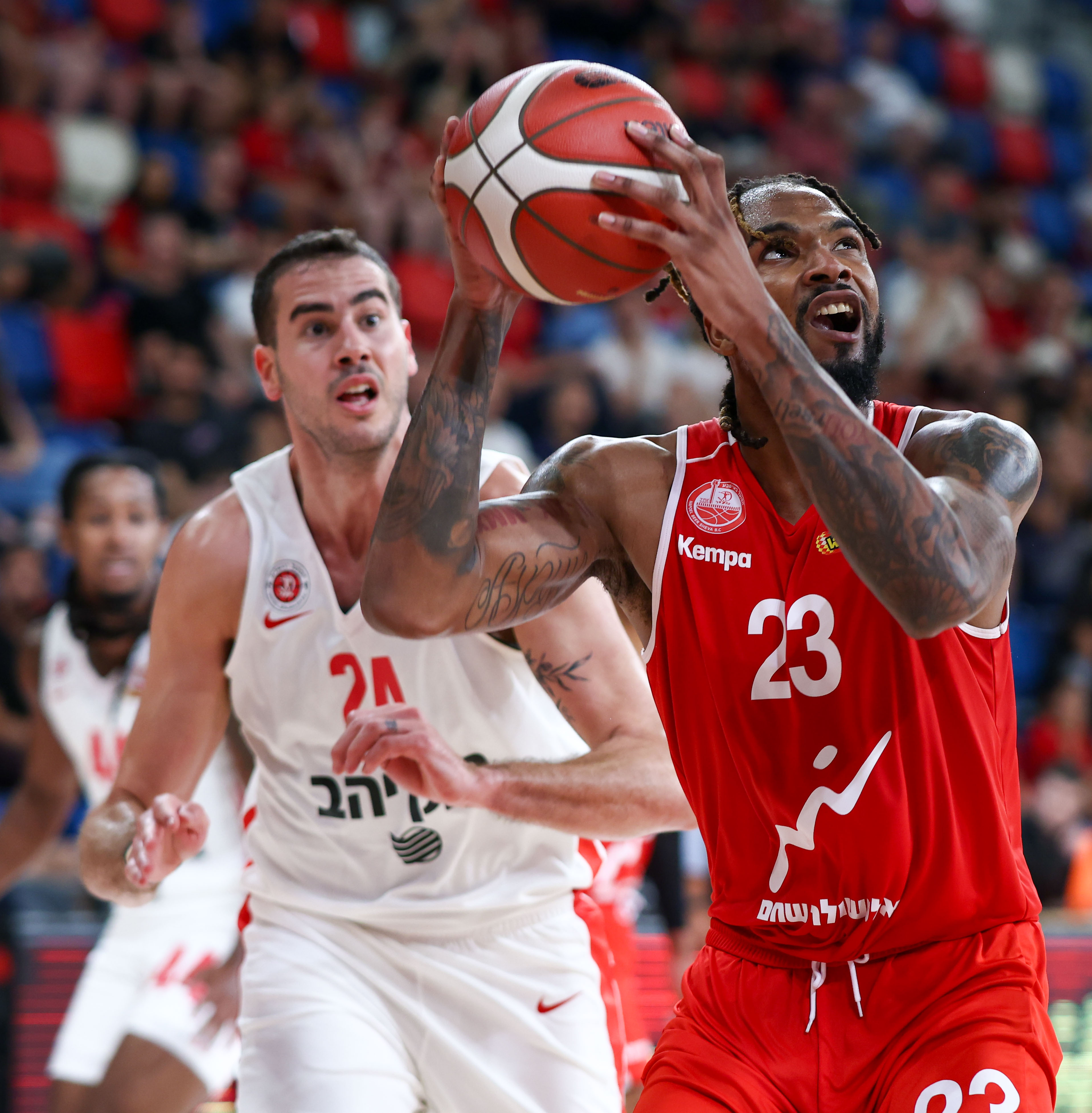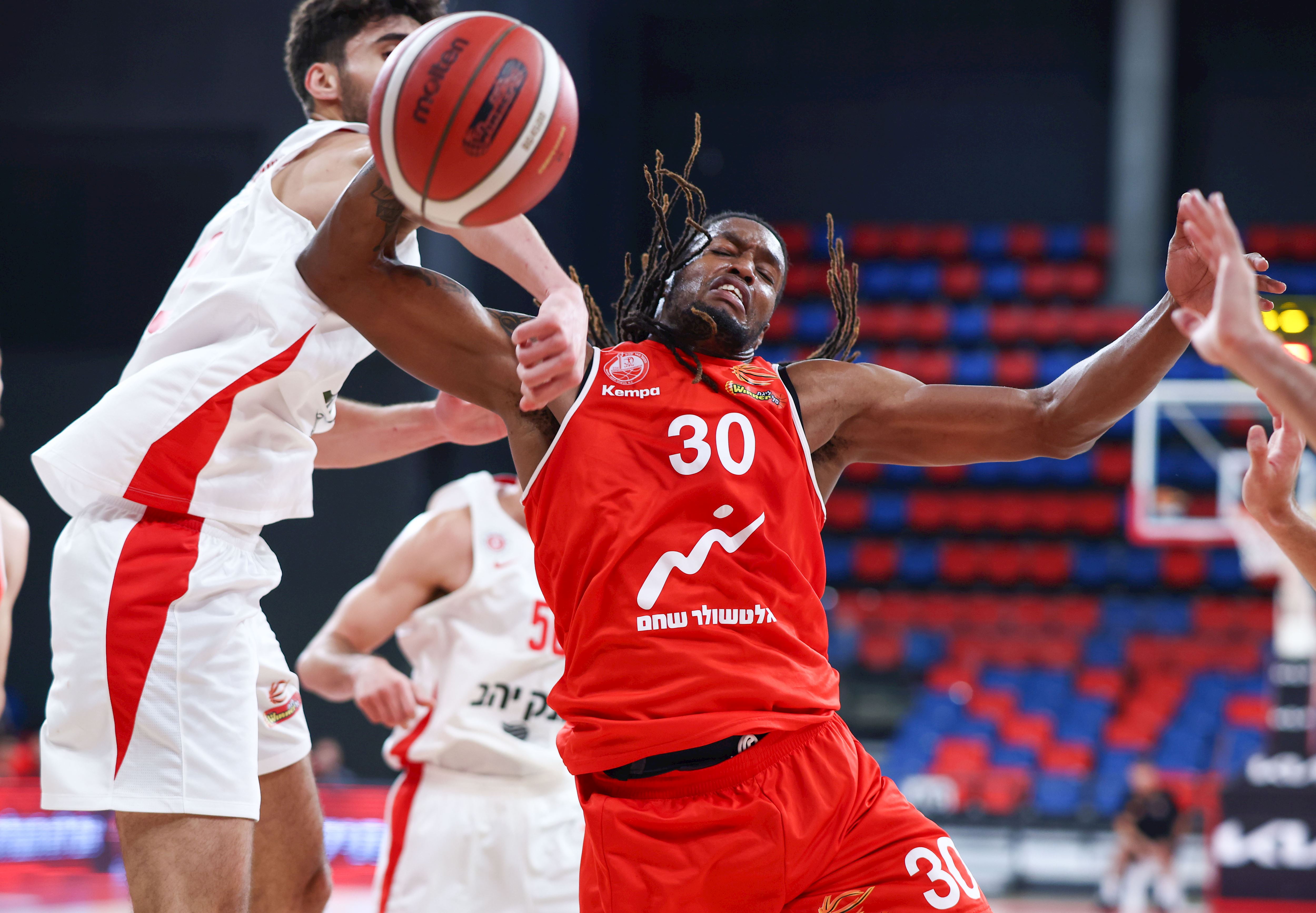 בנקסטון וצאצאשוילי נאבקים על הריבאונד (צילום: דני מרון)