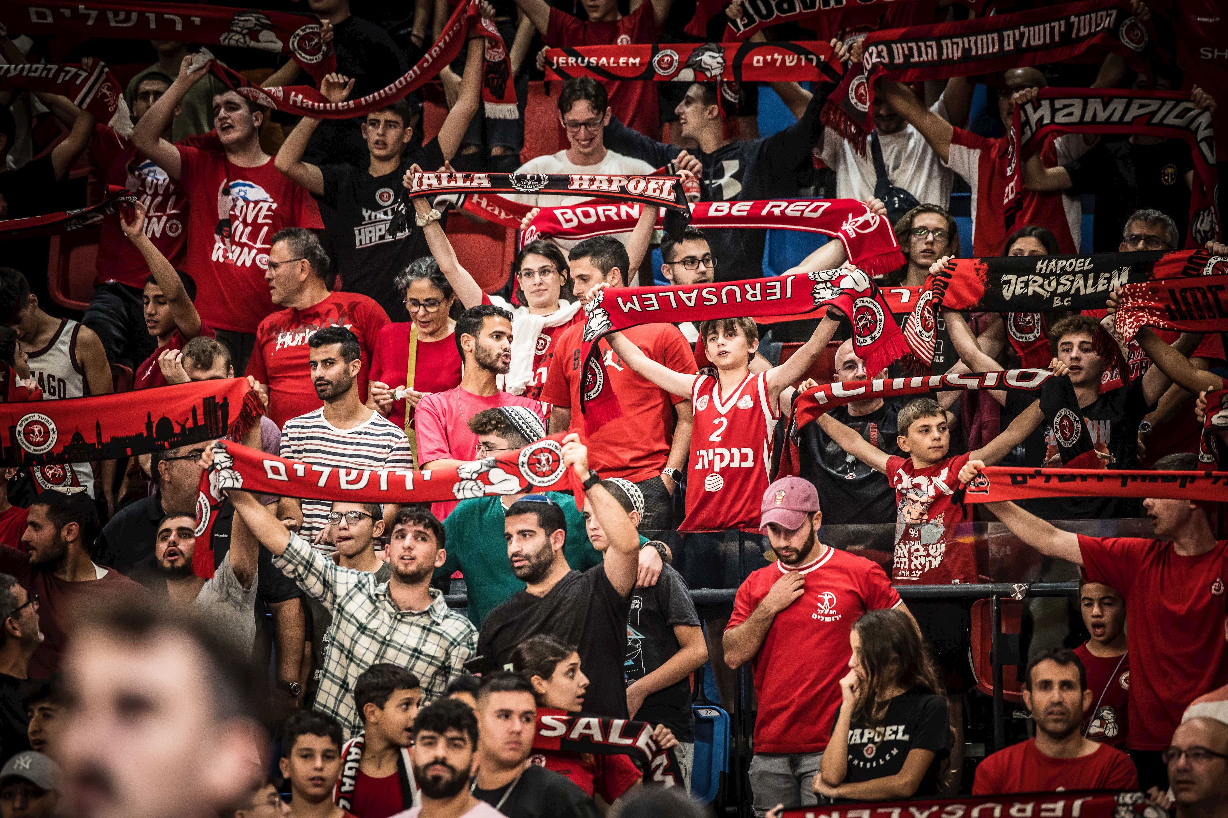 צהוב נגד אדום ביציעי היכל קבוצת שלמה (צילומים: עודד קרני)