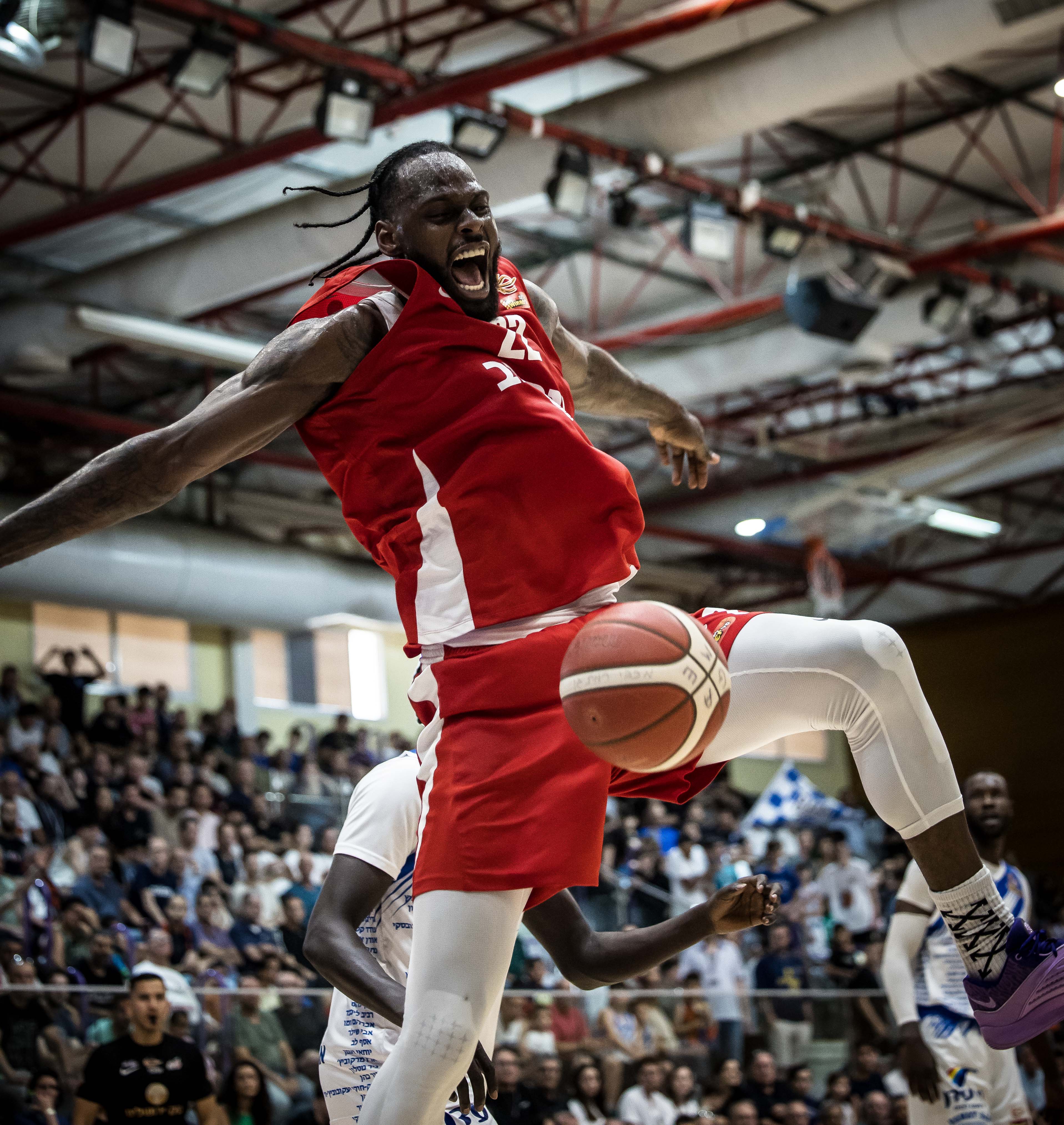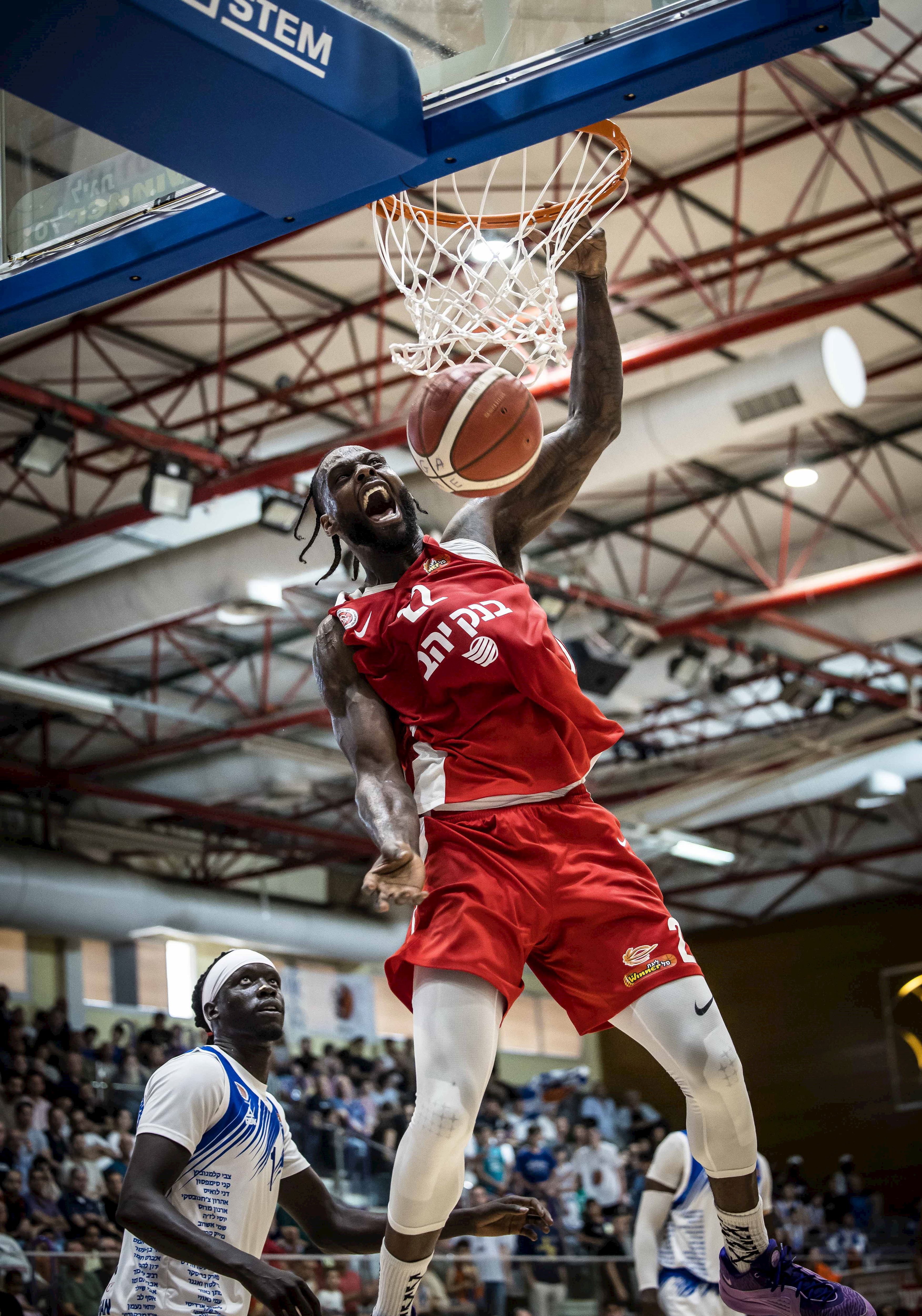 וויליאמס מטביע מעל אומאט. שני דאנקים מפלצתיים (צילום: עודד קרני)