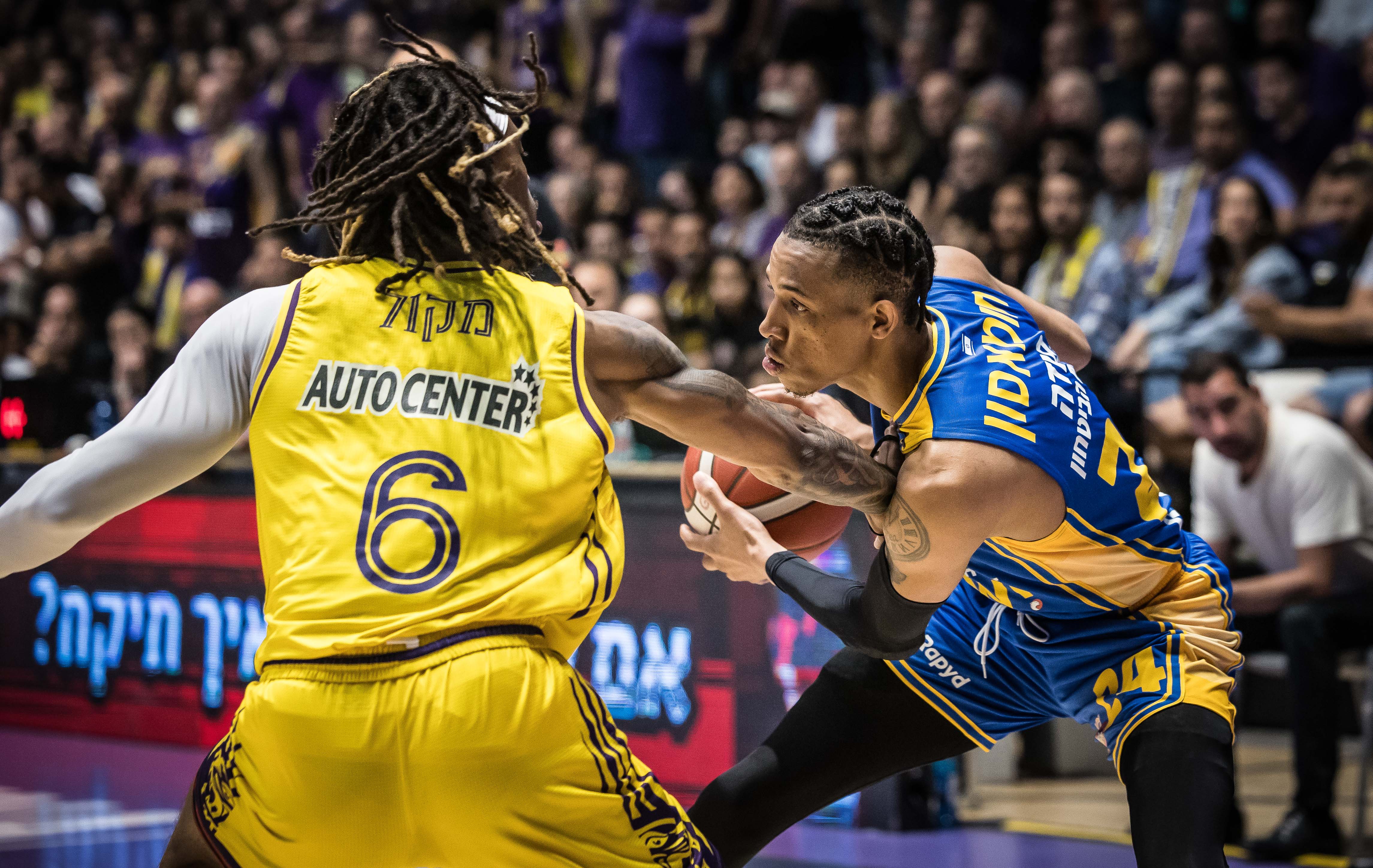 הפועל חולון צימצמה פערים מהמקום הרביעי לאחר 76:82 ביתי חשוב על מכבי "Playtika" ת"א החסרה בפתיחת הבית העליון. טאג'יר מקול בלט (צילום: עודד קרני)