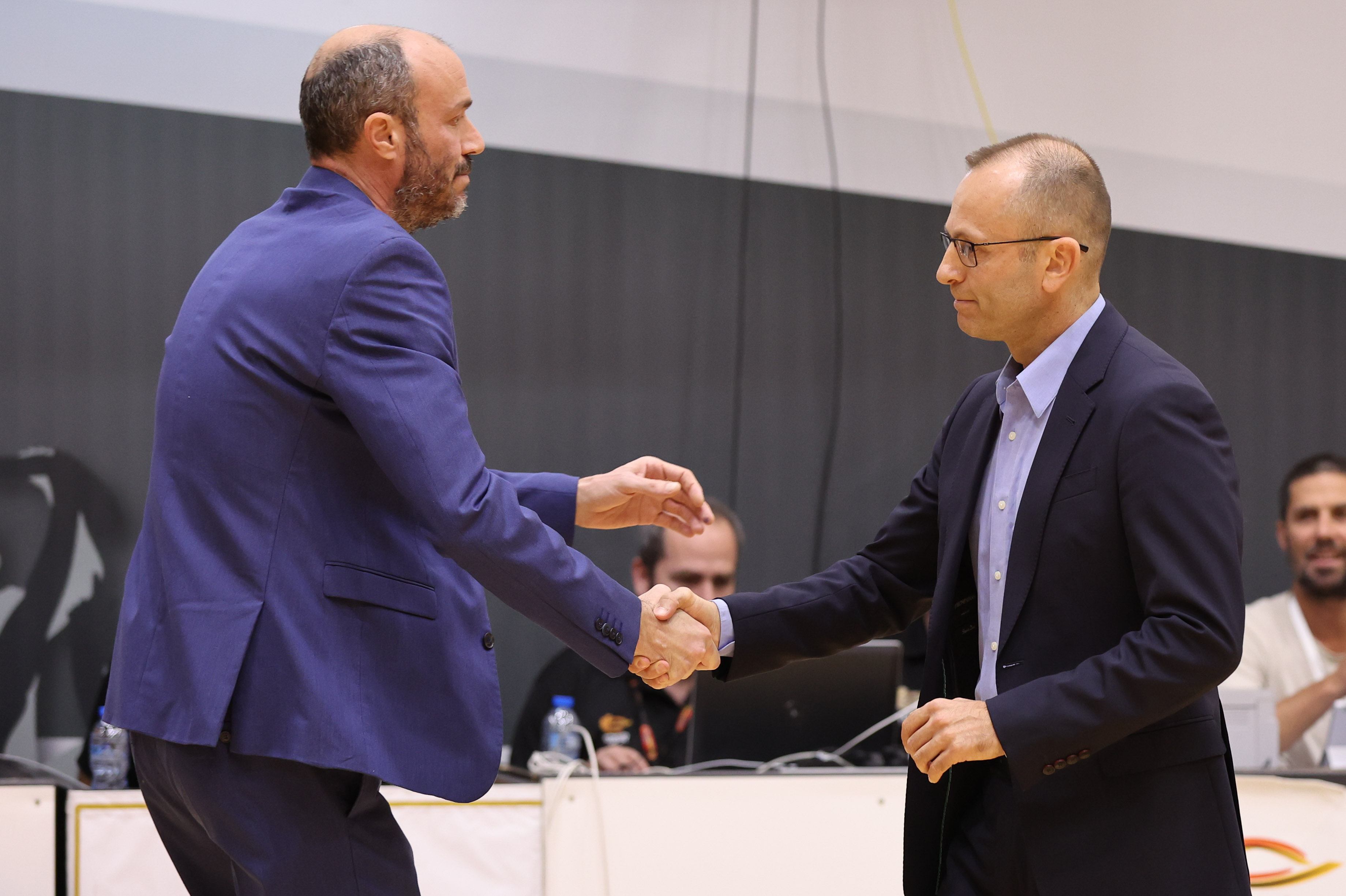שמיר ופרל לוחצים ידיים בפתיחה (צילום: מאור אלקסלסי)