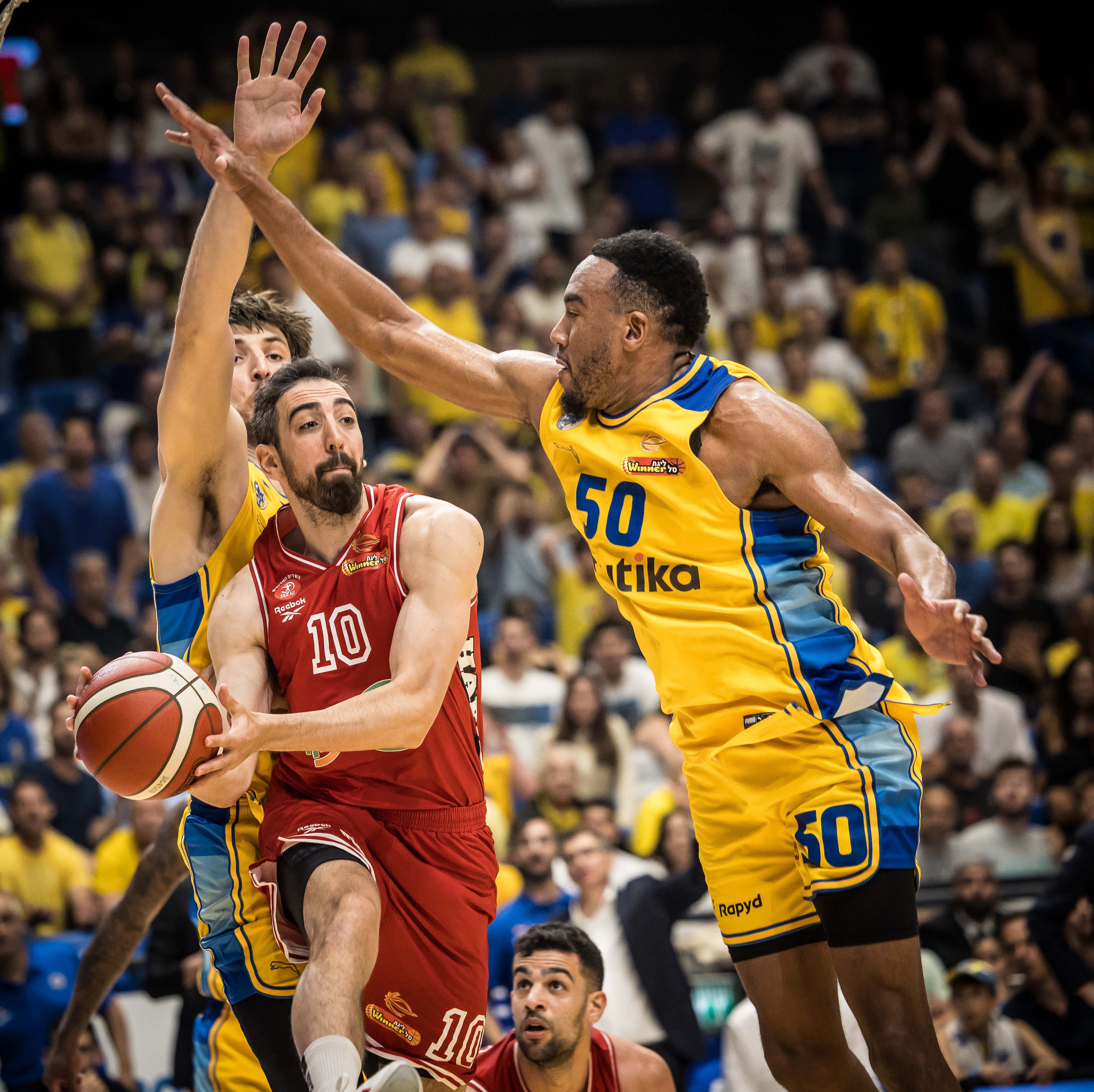 מכבי "Playtika" ת"א חזרה מפיגור דו-ספרתי ברבע השלישי והבטיחה יתרון ביתיות לאורך כל הפלייאוף, בעקבות 82:88 ביתי על הפועל "שלמה" ת"א (צילום: עודד קרני)