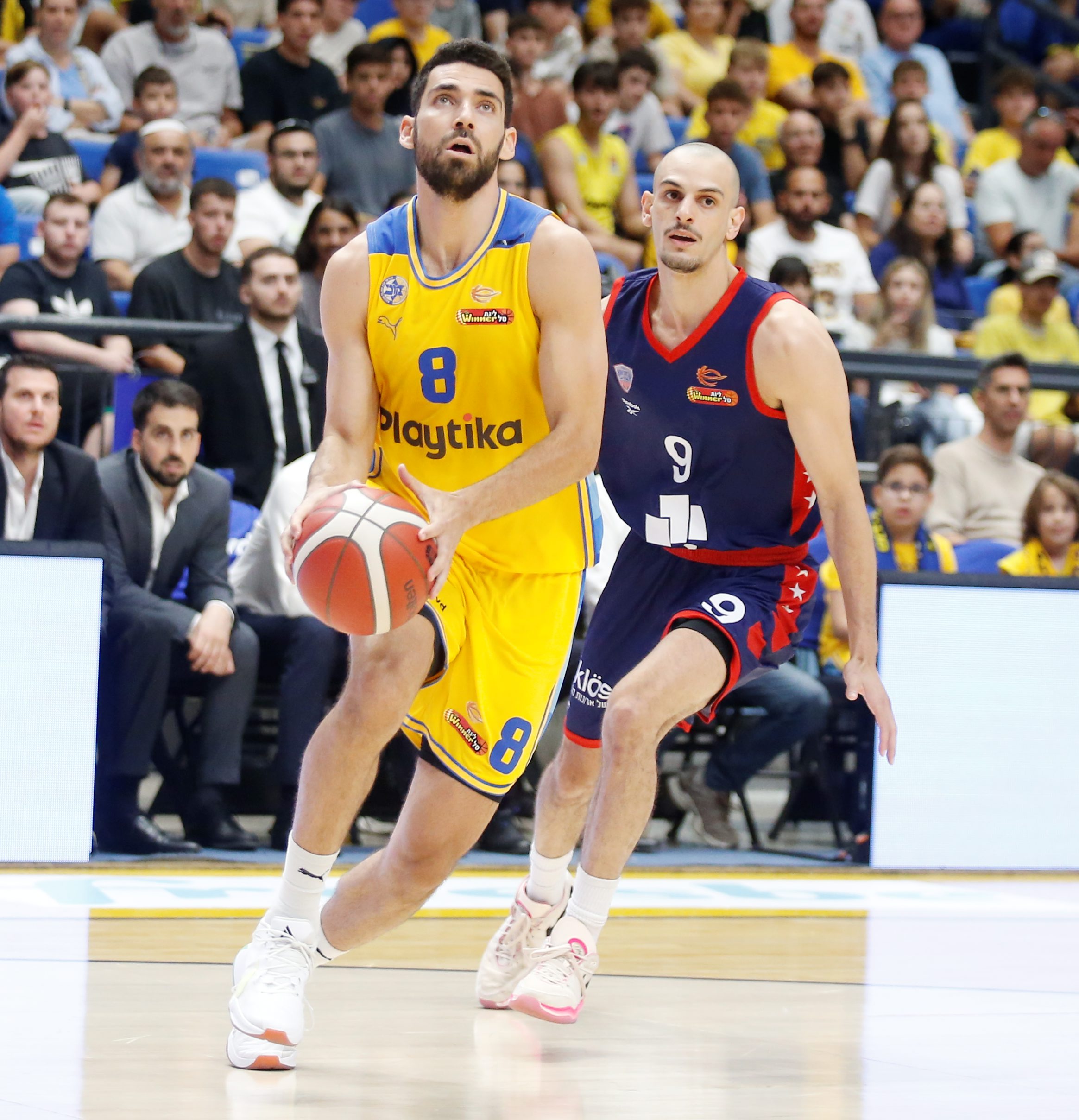 המארחת העניקה הערב מנוחה לתמיר בלאט ולג'ון דיברתולומיאו, המחלים מפציעה, ועודד קטש שוב חילק את הזמנים בקפידה. גם הפעם אף שחקן לא שותף ליותר מ־24 דקות, אך דומה ששום הרכב לא האט הערב את האלופה – כשלחגיגת השלשות המשוגעת היו שותפים שמונה מעשרת הצהובים־כחולים שעלו על הפרקט. רומן סורקין, שעבד בקיץ על זריקותיו לשלוש אחרי שבעונותיו הקודמות בצהוב כמעט לא זרק מהטווח, הוביל את הקלעים עם שש קליעות משבעה ניסיונות מעבר לקשת (85.7%) – והשווה את שיא השלשות האישי שקבע ב־2019/20 במדי חיפה מול הפועל גלבוע/גליל. ג'יימס ווב דייק בחמש משבע זריקותיו מדאון־טאון, בעוד עומר מאייר – שקלע שלוש שלשות ב־50% – שבר שוב את שיא הקריירה וחילק גם שישה אסיסטים. אפילו ירון גולדמן הצעיר הפנים היטב את הלך הרוח, עם שתי שלשות ב־50% ותשע נקודות סך הכול.