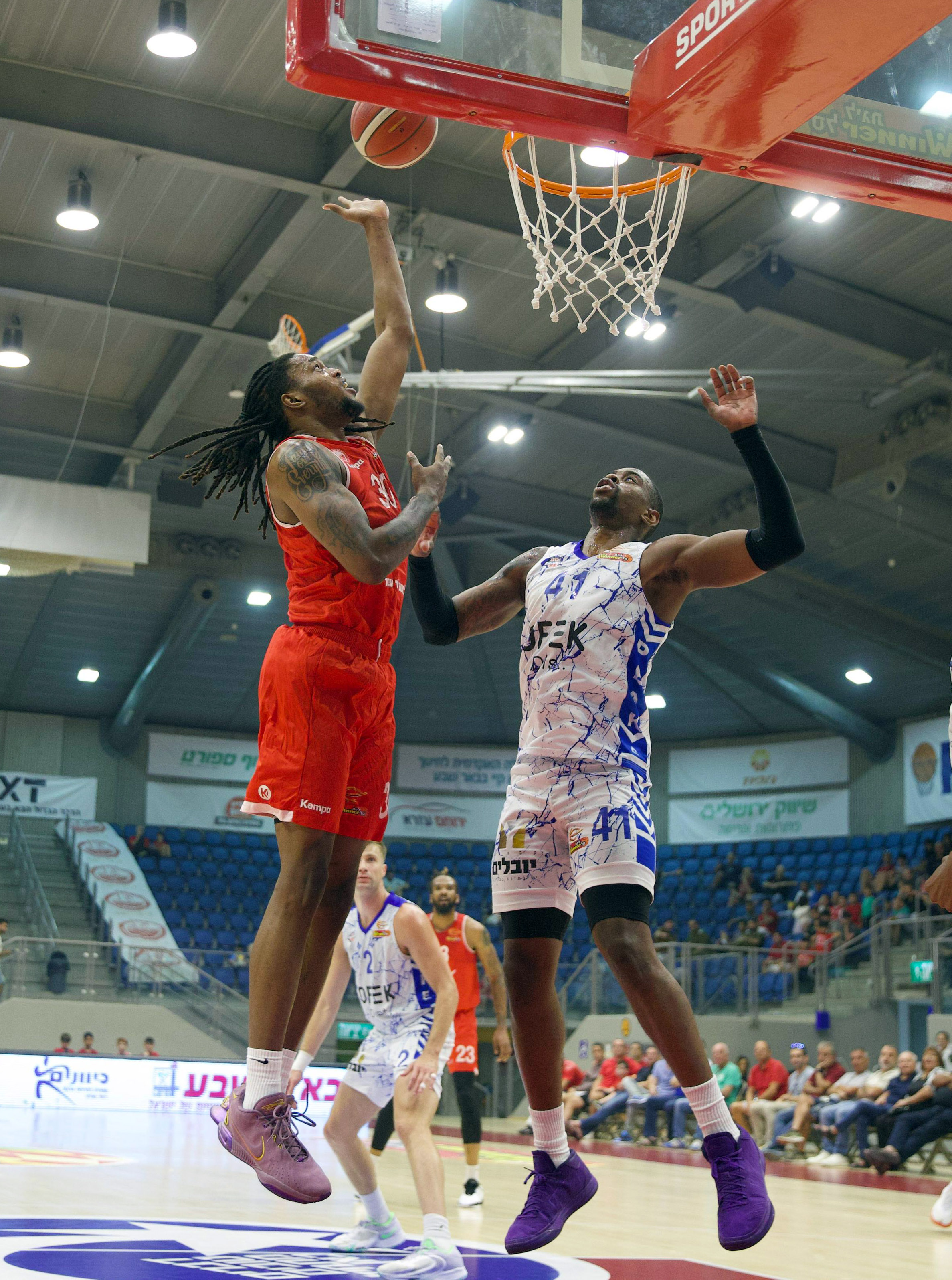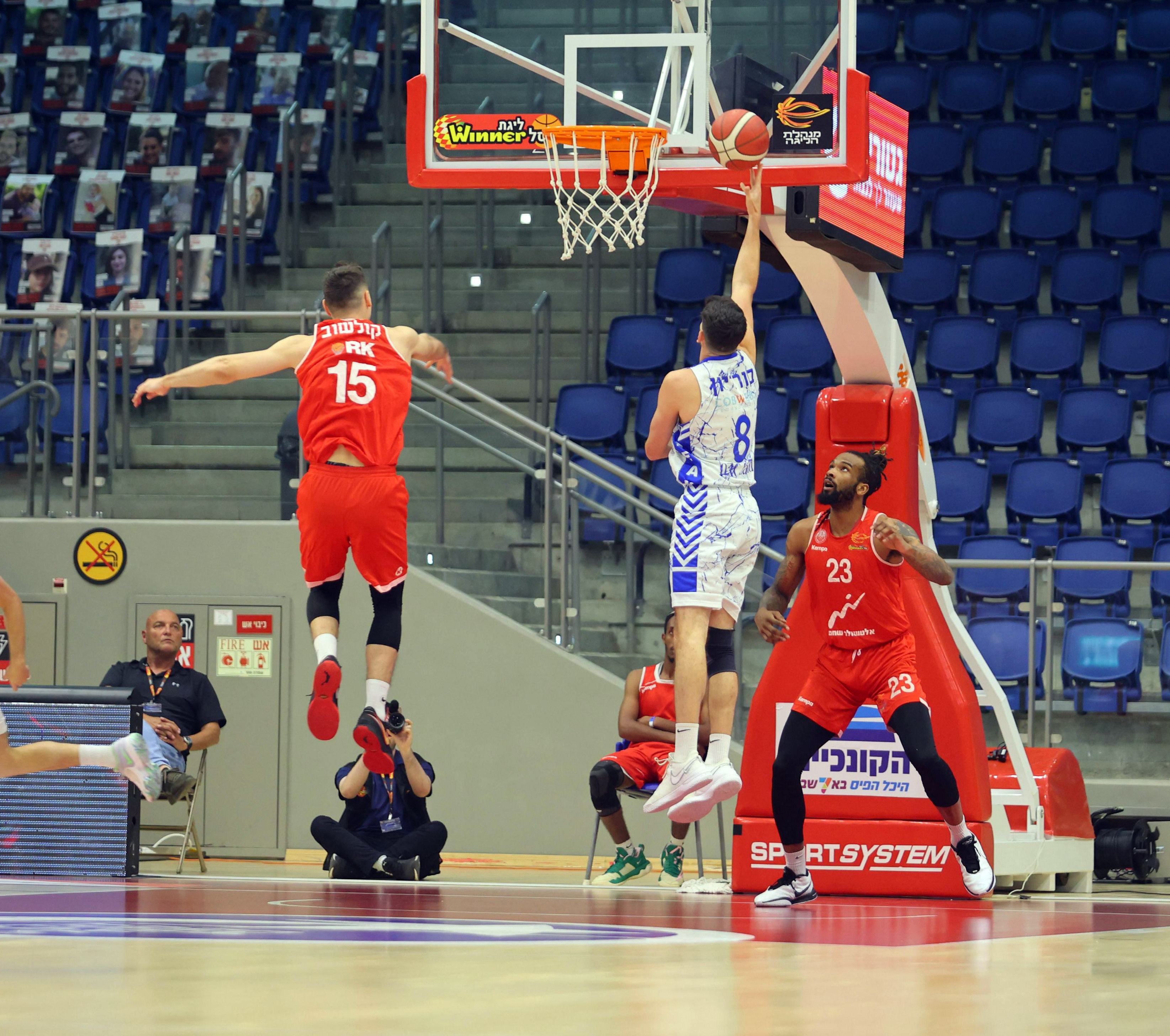סל בכורה של נטע סגל ודאנקים של בנקסטון נתנו לאדומים יתרון קטן, רג'י לינץ' חבר אל וויליאמס מתחת לסלים ולצד בנקס הפך ל-33:38 באמצע הרבע השני. גאנט קלע שתיים ארוך אבל נפצע בקרסול וירד לטיפול, חואקין שוכמן וקולשוב עלו על הלוח – אבל אביתר מור יוסף הראה יד רכה מבחוץ וקבע 39:42 לאורחים. קולשוב, שהיה שקט עד אז, נכנס לקצב והוביל מהפך עם שלשה שקבעה 45:47 בהפסקה.