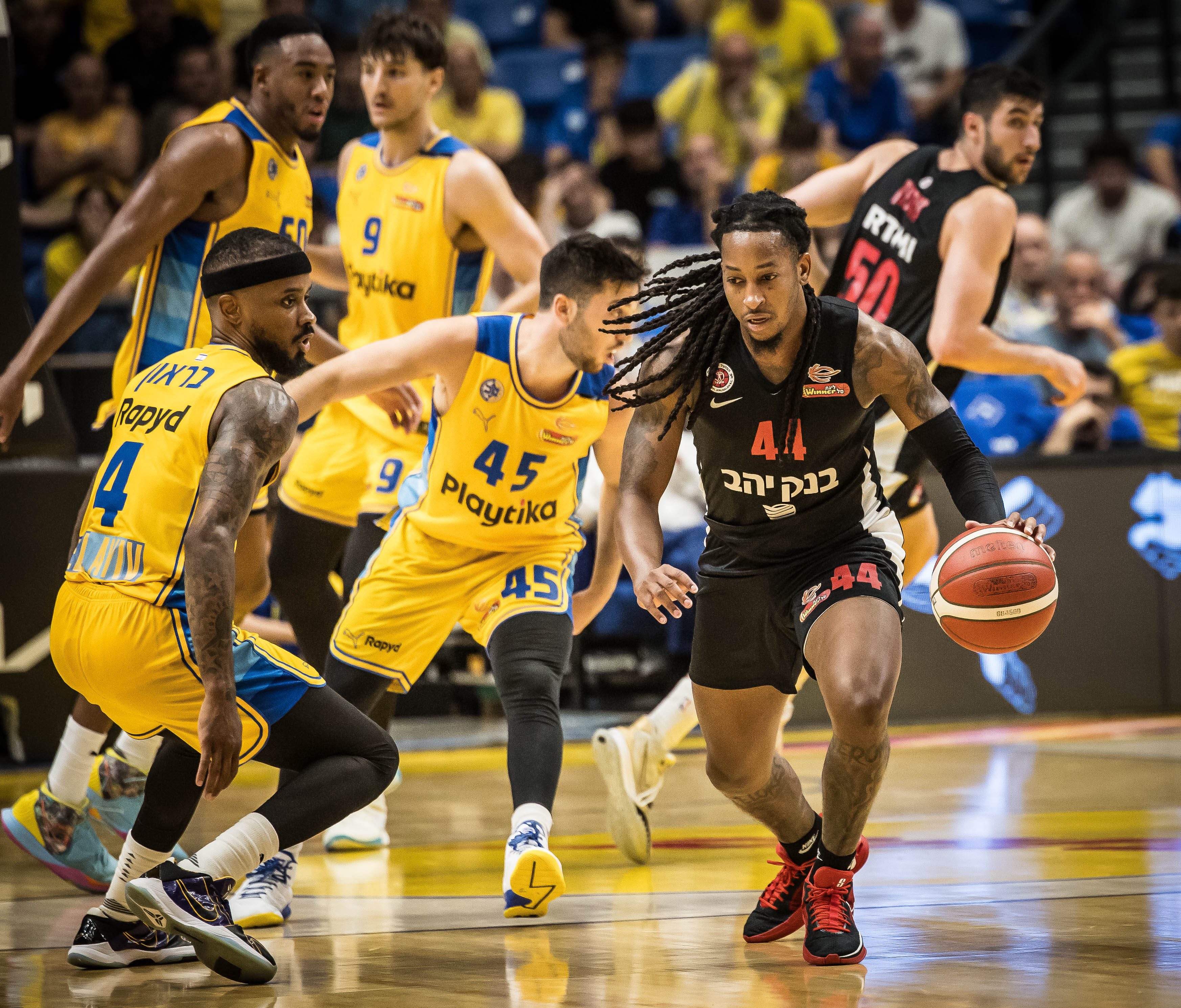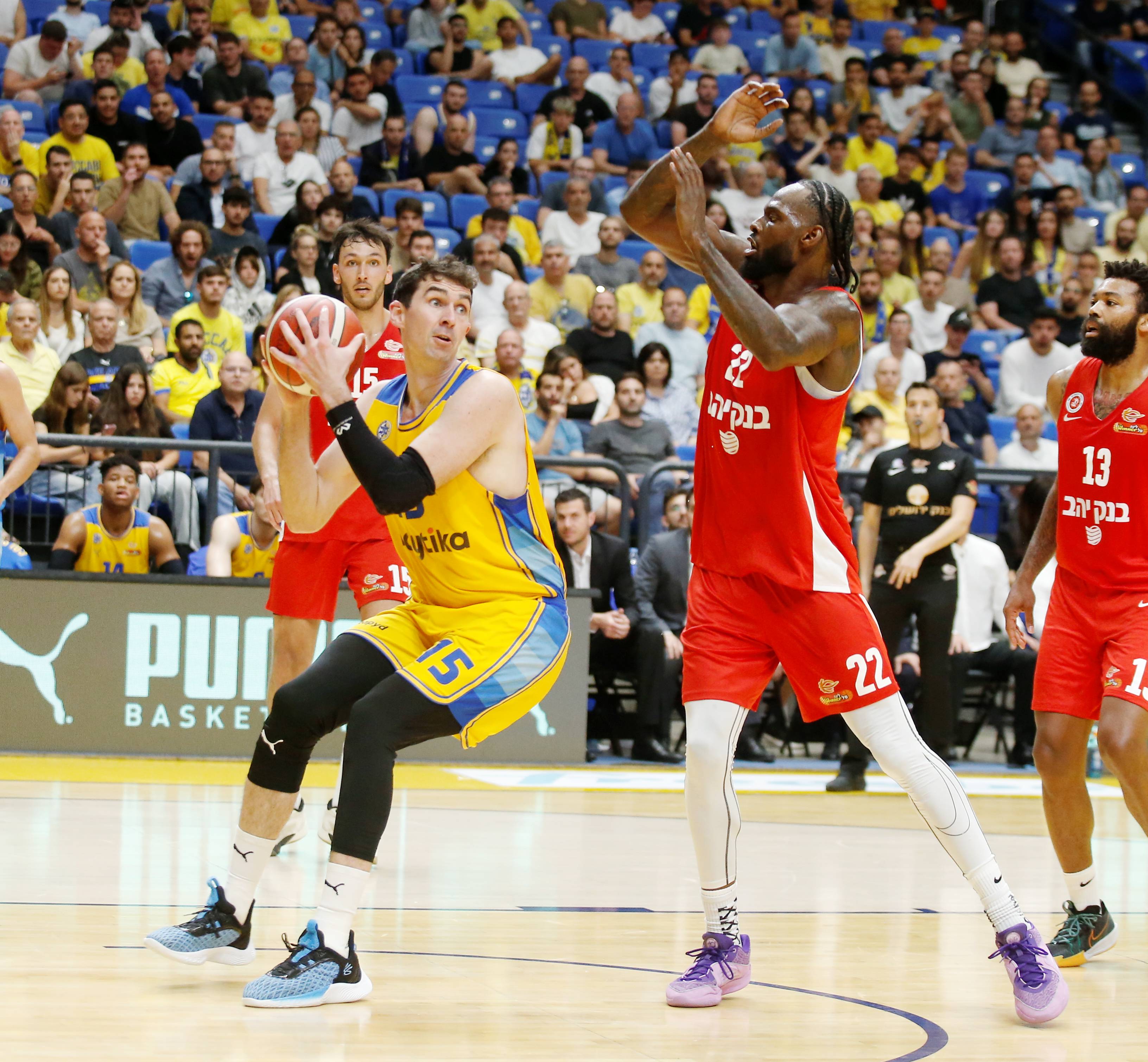 מכבי "Playtika" ת"א פיגרה במשך דקות ארוכות, אך ידעה להעביר הילוך בזמן וגברה על הפועל "בנק יהב" ירושלים 82:89 בפתיחת סדרת חצי הגמר (צילום: עודד קרני)