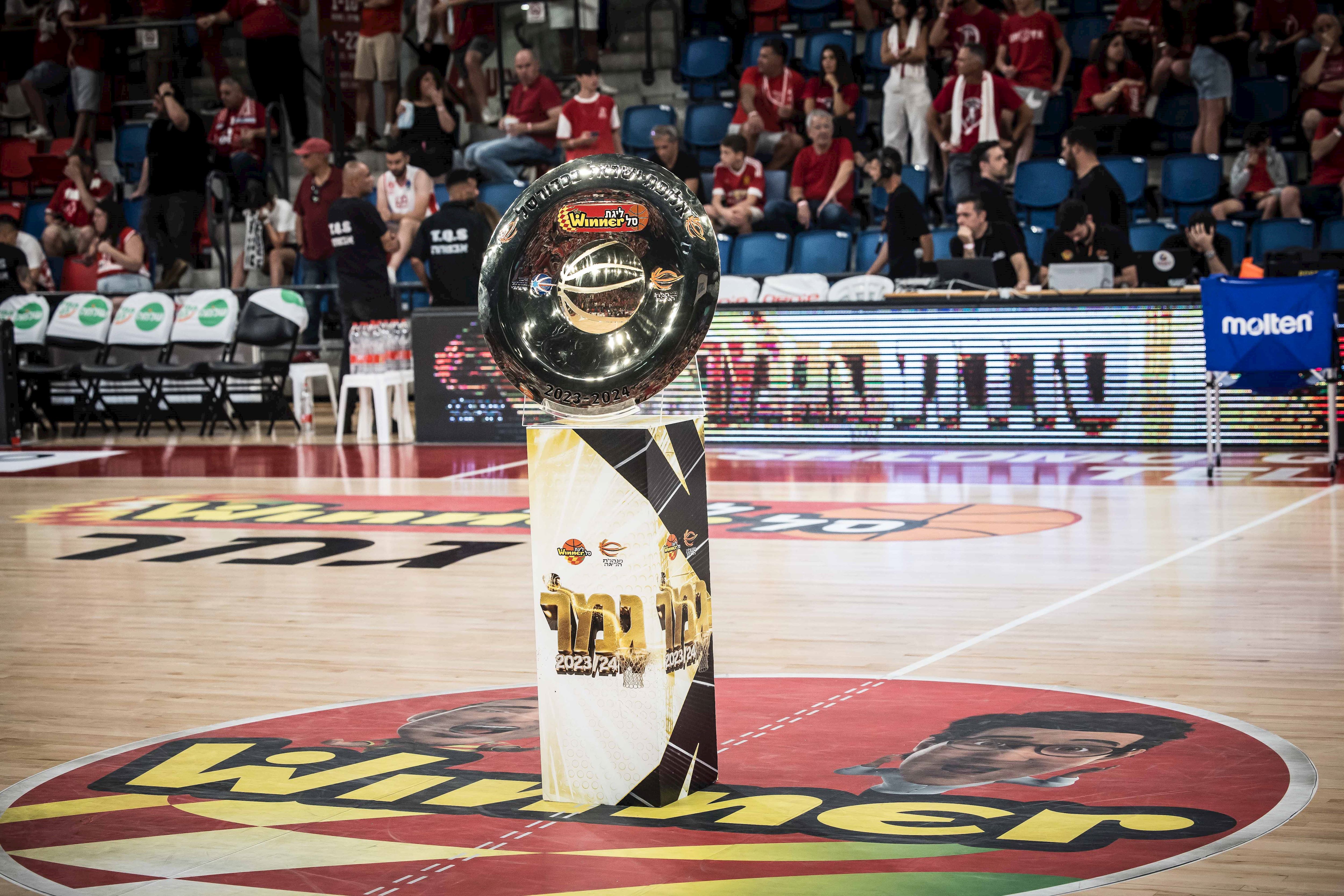 צלחת האליפות במרכז הפרקט (צילום: עודד קרני)