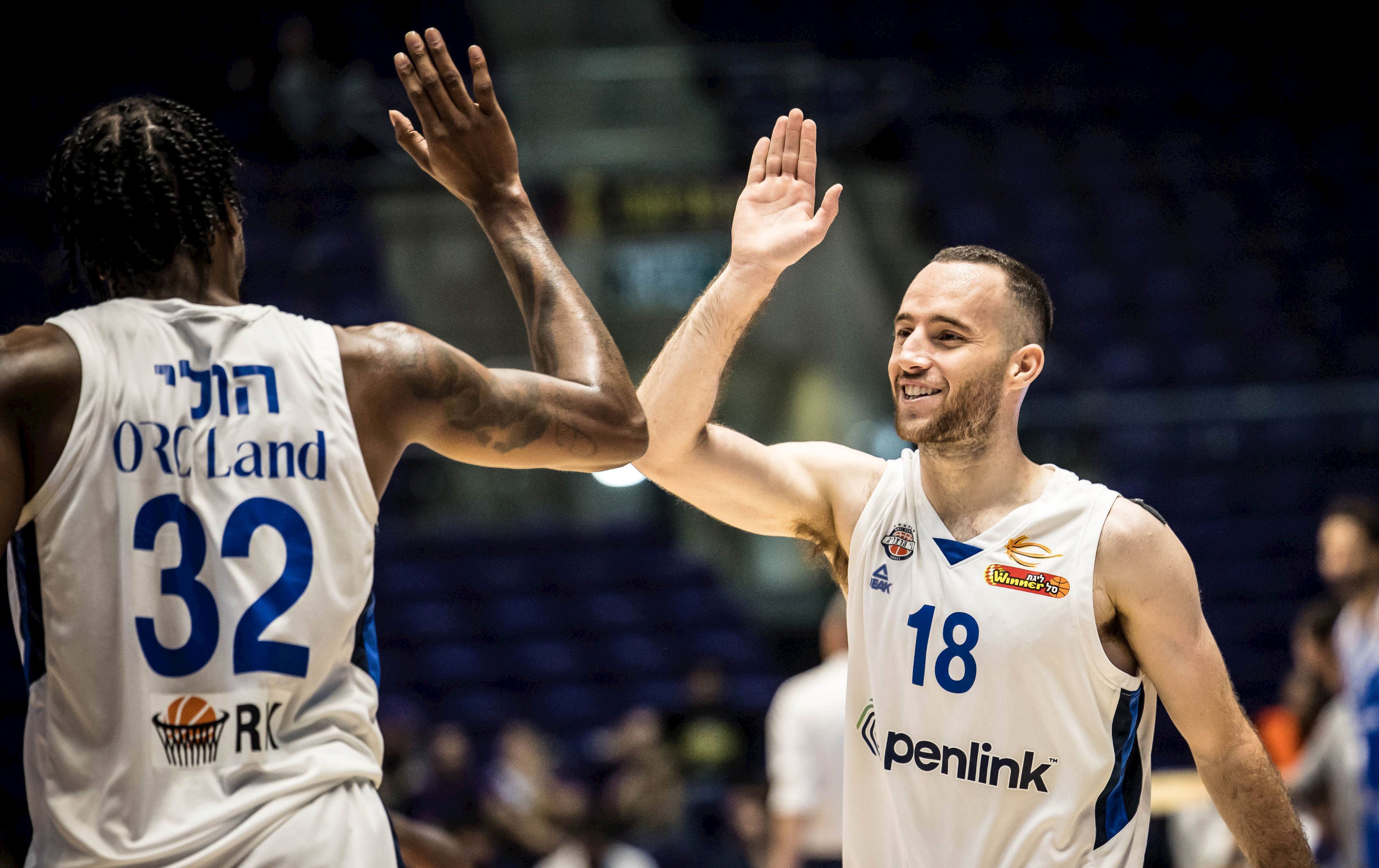 בן דוד והולי חוגגים. הרצליה פתחה את הליגה ברגל ימין