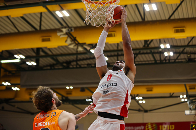 לינדו מנסה להטביע על צ'אצ'אשווילי (צילום: עודד קרני)