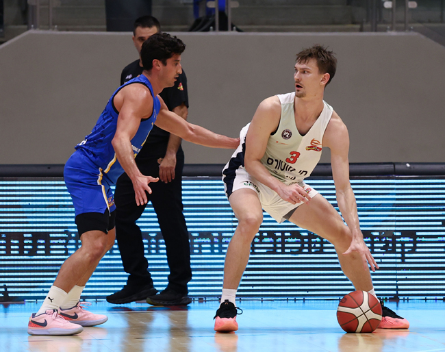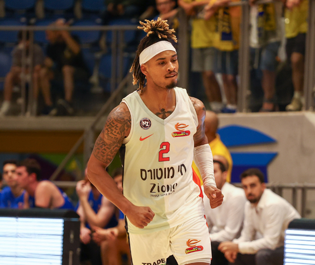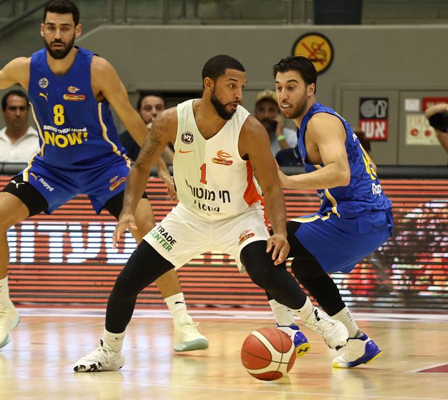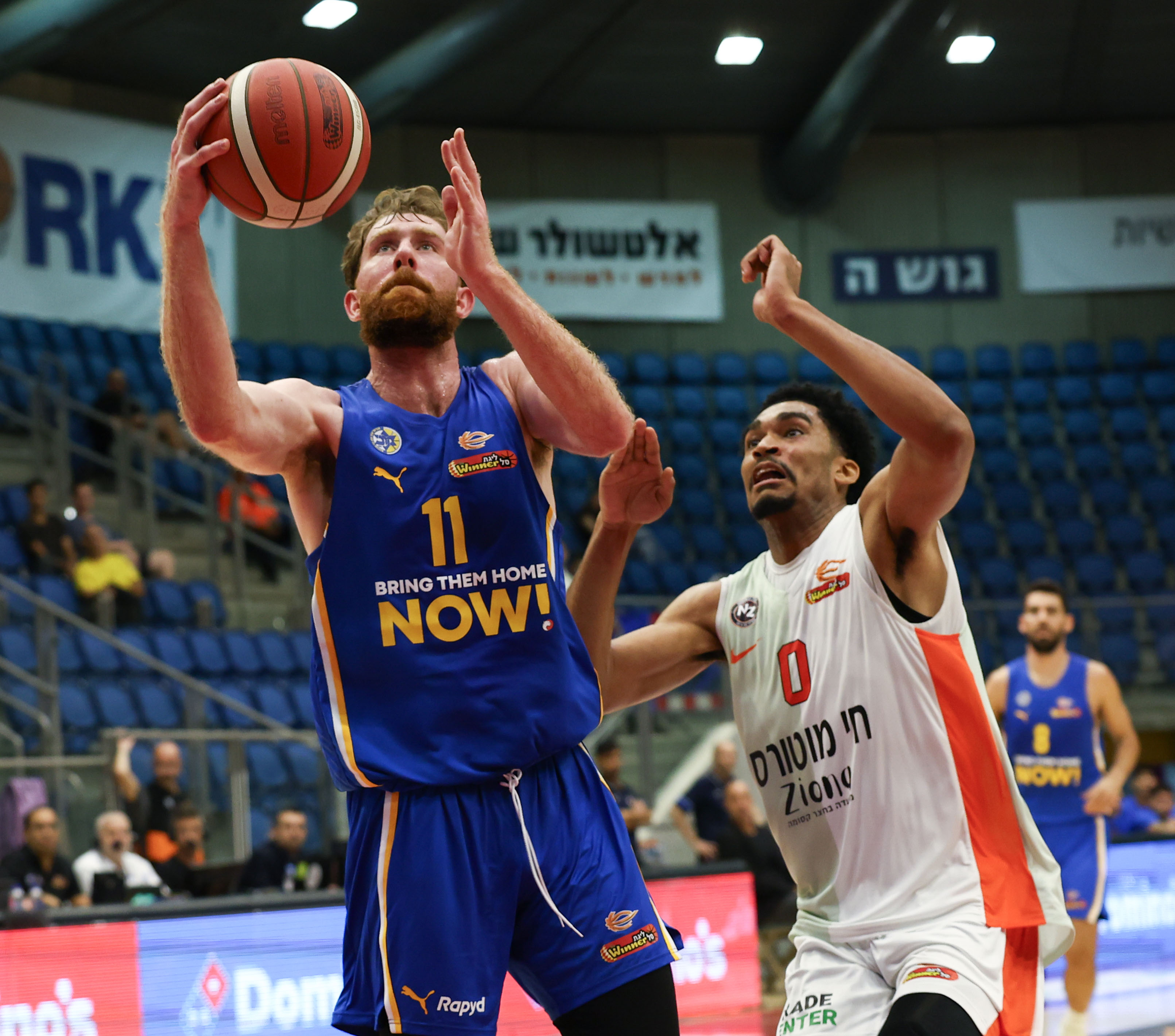 עם שני זרים בלבד, מכבי "Playtika" תל אביב שרדה קאמבק של עירוני "חי מוטורס" נס ציונה בדרך ל-81:85 במשחק רדיוס בקונכייה. בלאט שוב הצטיין (צילום: דני מרון)