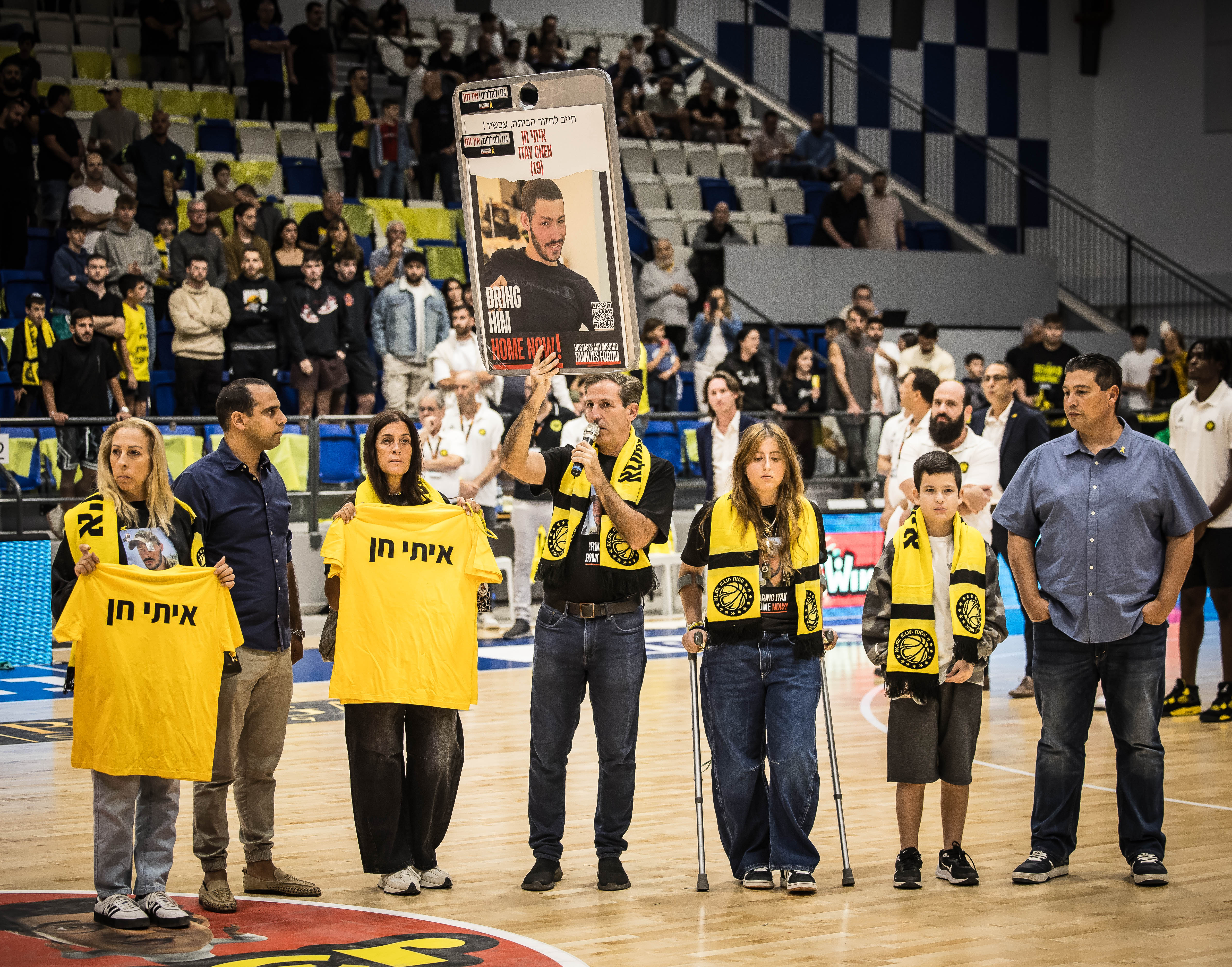 לפני המשחק נערך טקס לאיתי חן, בוגר מחלקות הנוער של נתניה החטוף בעזה (צילום: עודד קרני)