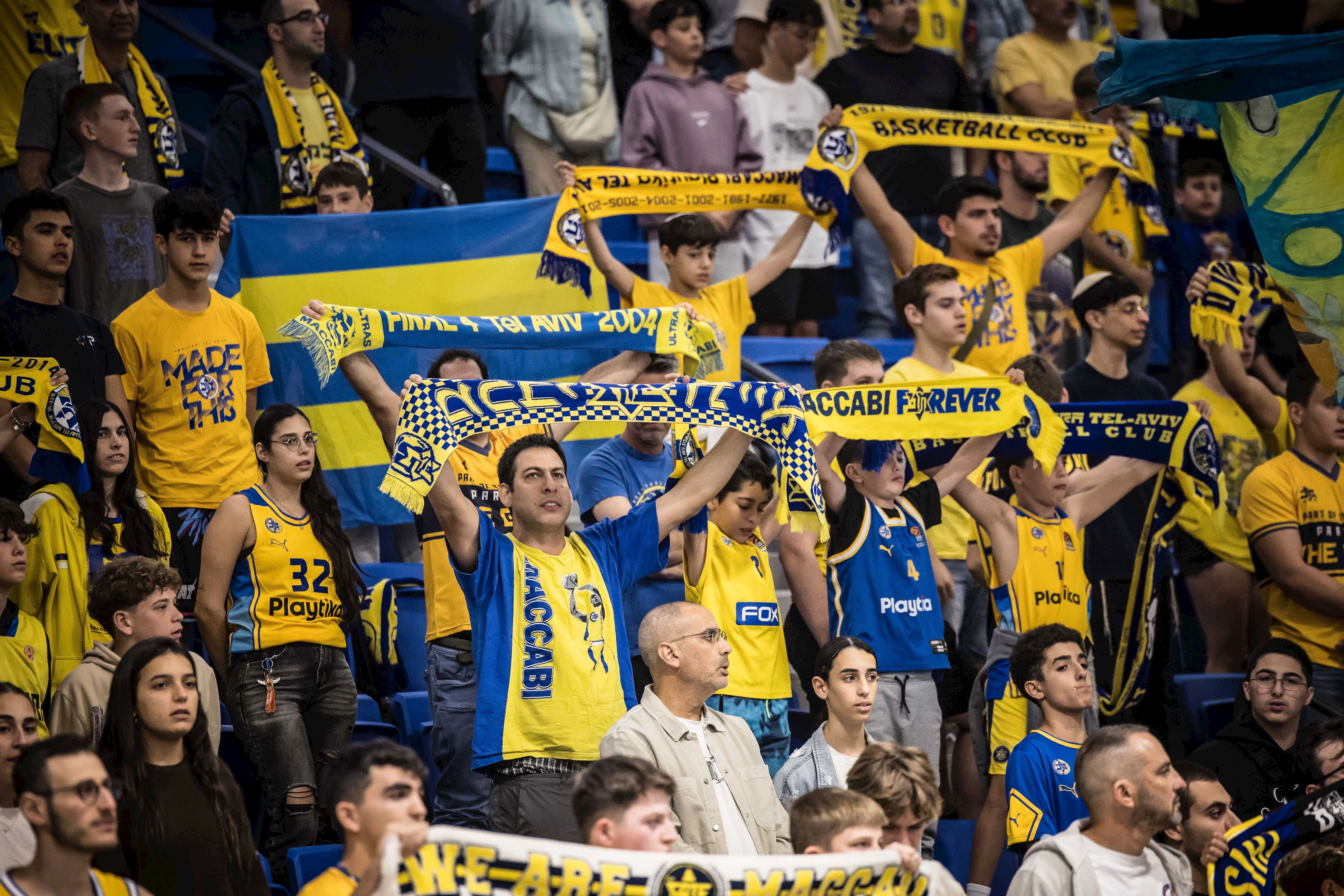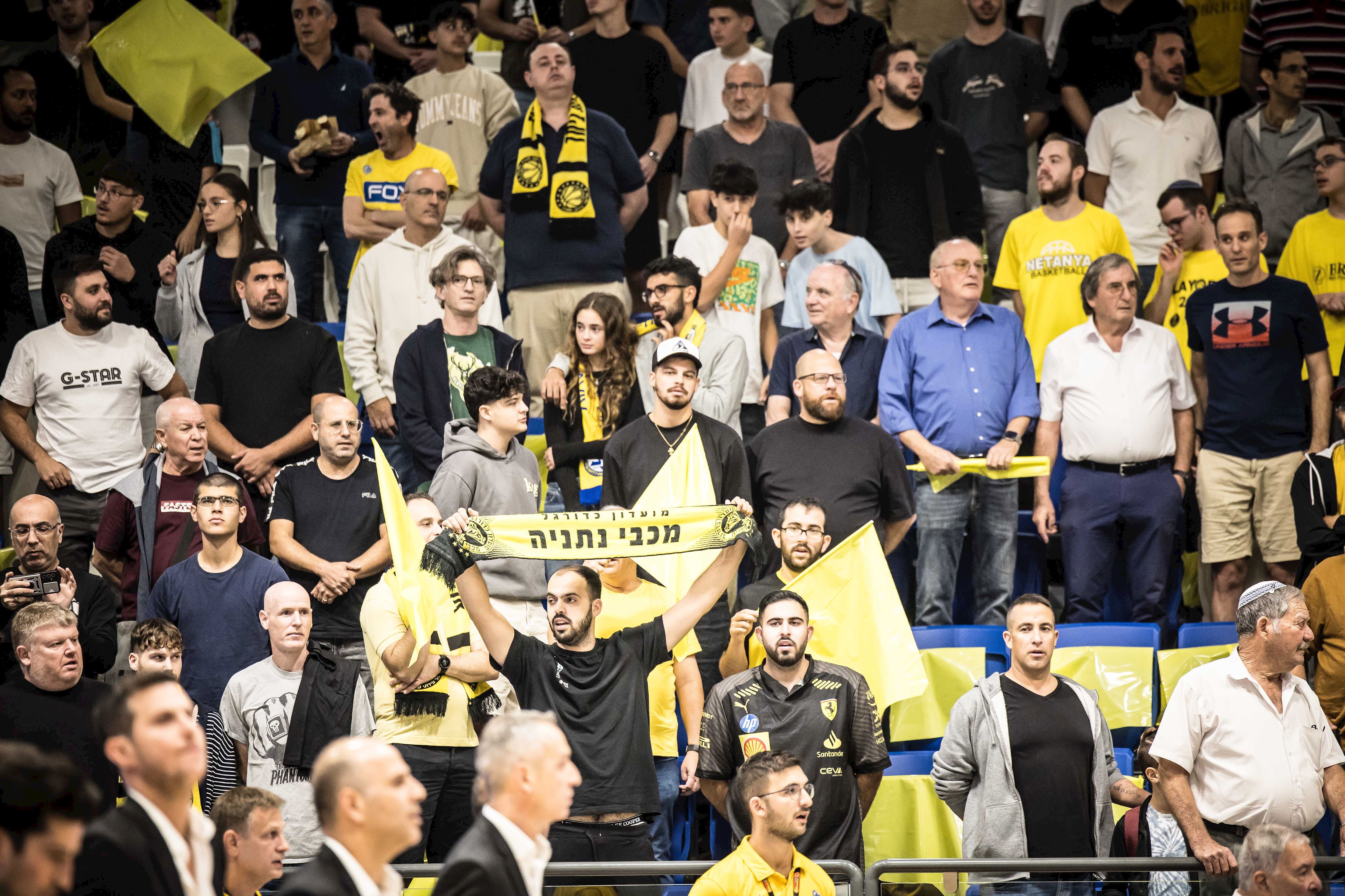 גם אוהדי האורחת הגיעו בפעם הראשונה לארנה החדשה בנתניה (צילום: עודד קרני)