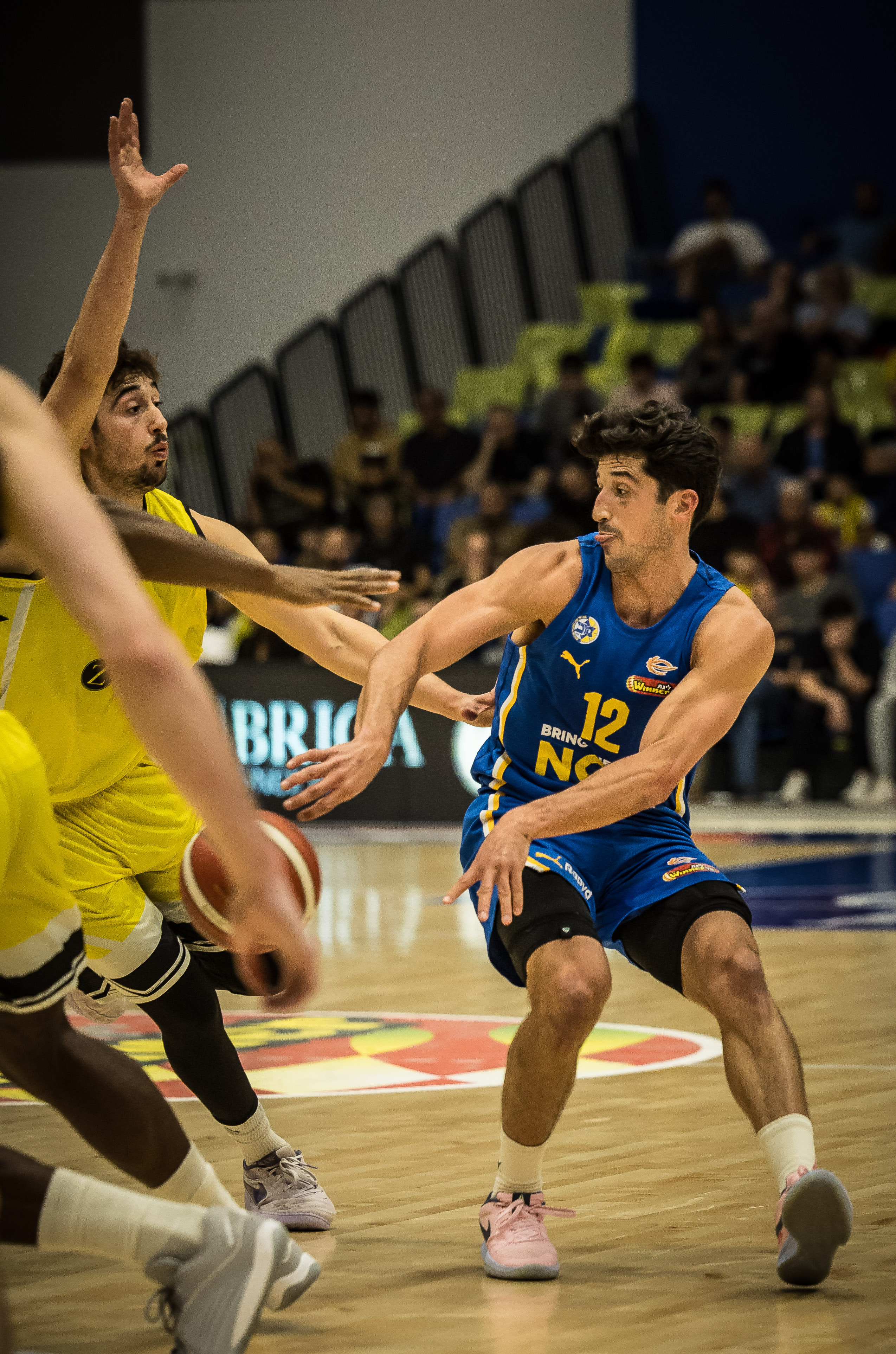 לאחר עיכוב של כמה דקות בגלל תקלה בשעון החל המשחק בשלשה מהירה של דיברתולומיאו, דולינסקי קלע נקודות ראשונות העונה עם סל ועבירה ומרשל עם סל מחצי מרחק העלה את נתניה ל־3:5 בפתיחה. יוקובאיטיס השווה עם סל ראשון בליגת ווינר סל ולאחר ליי־אפ של רומרו הוסיף גם שלשת בכורה, דולינסקי ענה בג'אמפ מוצלח ורומרו בשלשה הגדיל את היתרון של המארחת ל־8:12. סורקין קלע רק אחת מן הקו אבל במהלך הבא קיבל מדיברתולומיאו אסיסט לסל קל, הורד העלה את הכחולים־צהובים ליתרון אבל דולינסקי בקליעת עונשין אחת וריילי בליי־אפ הפכו שוב את התוצאה – 13:15. שלשה של סורקין וארבע נקודות רצופות של דיברתולומיאו המשיכו את הנדנדה בדרך ליתרון חמש, חסיאל ריברו מתחת לסל העמיד את הריצה על 0:9 אבל קודי ריילי בג'אמפ הקטין ל־22:17. עומר מאייר עלה על הלוח בג'אמפ, מרשל ודמפס ענו בחדירות מוצלחות בצד השני – והרבע הראשון הסתיים ביתרון
